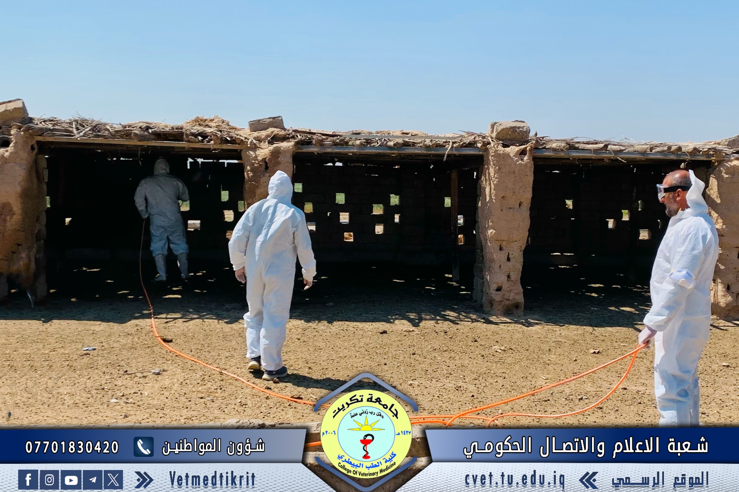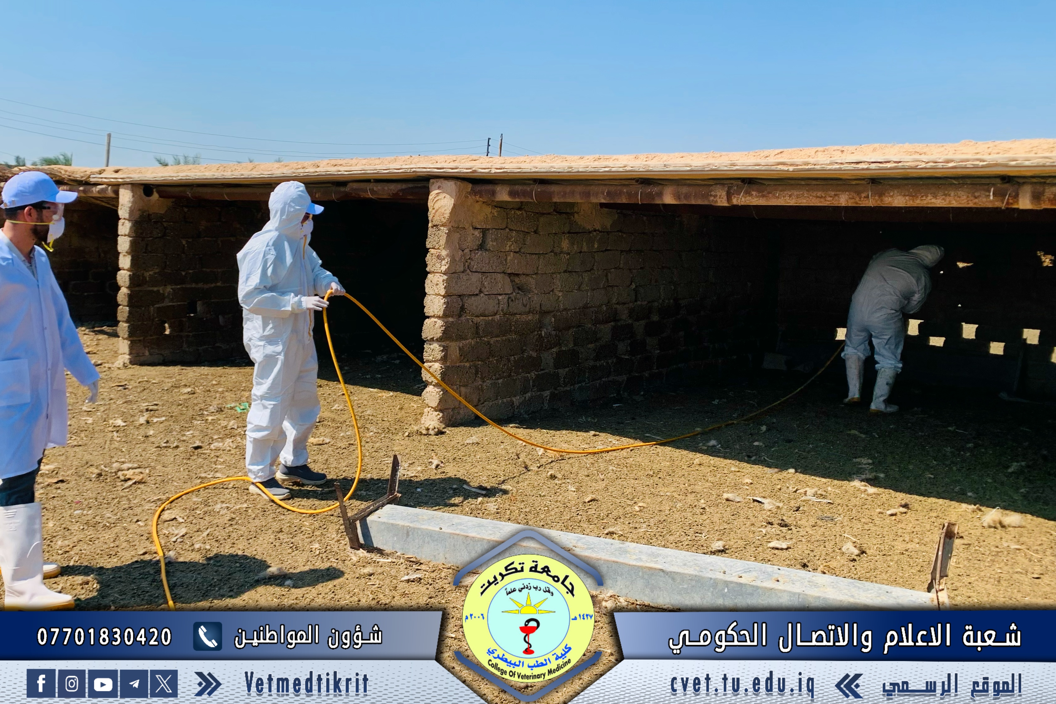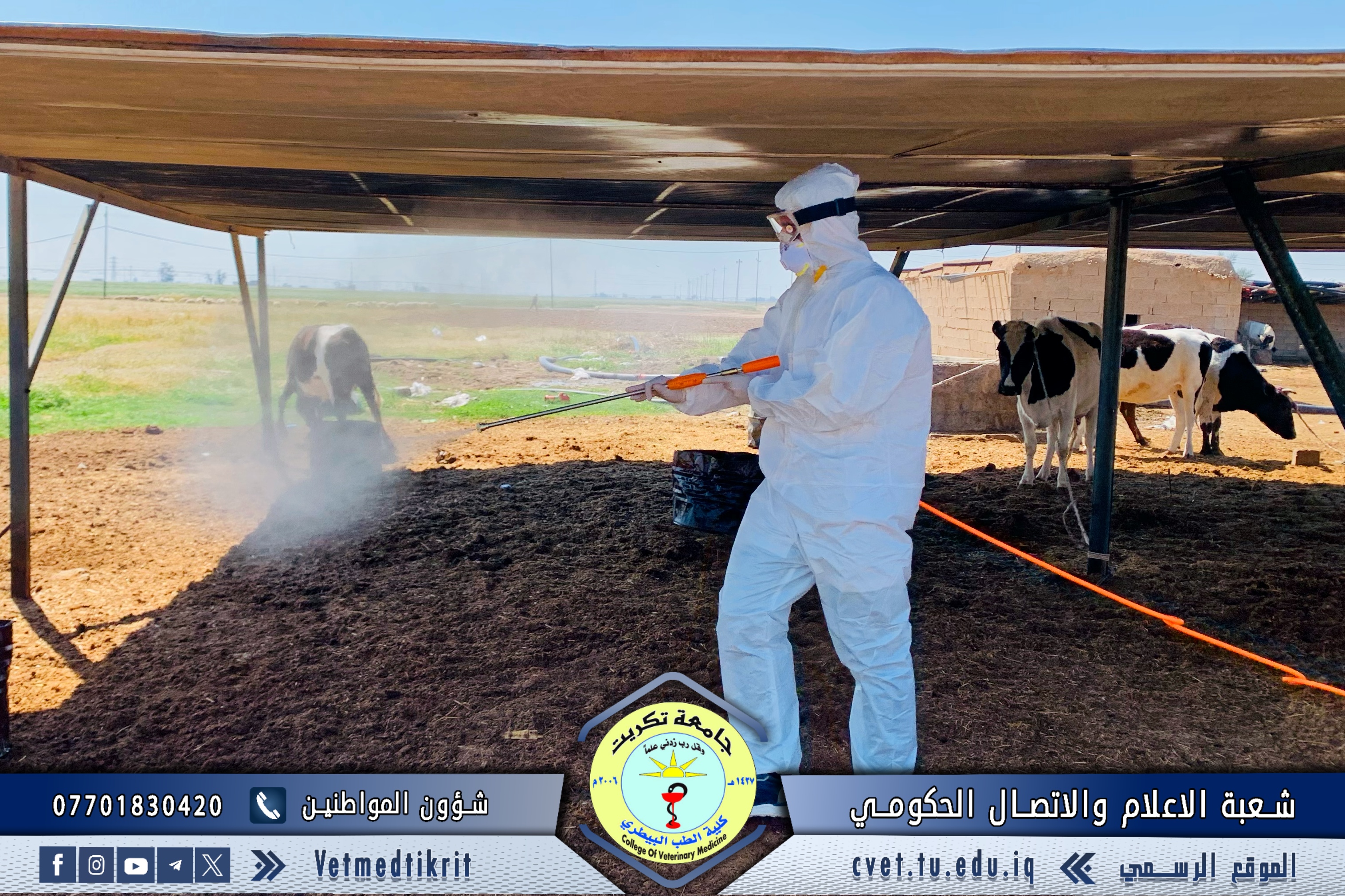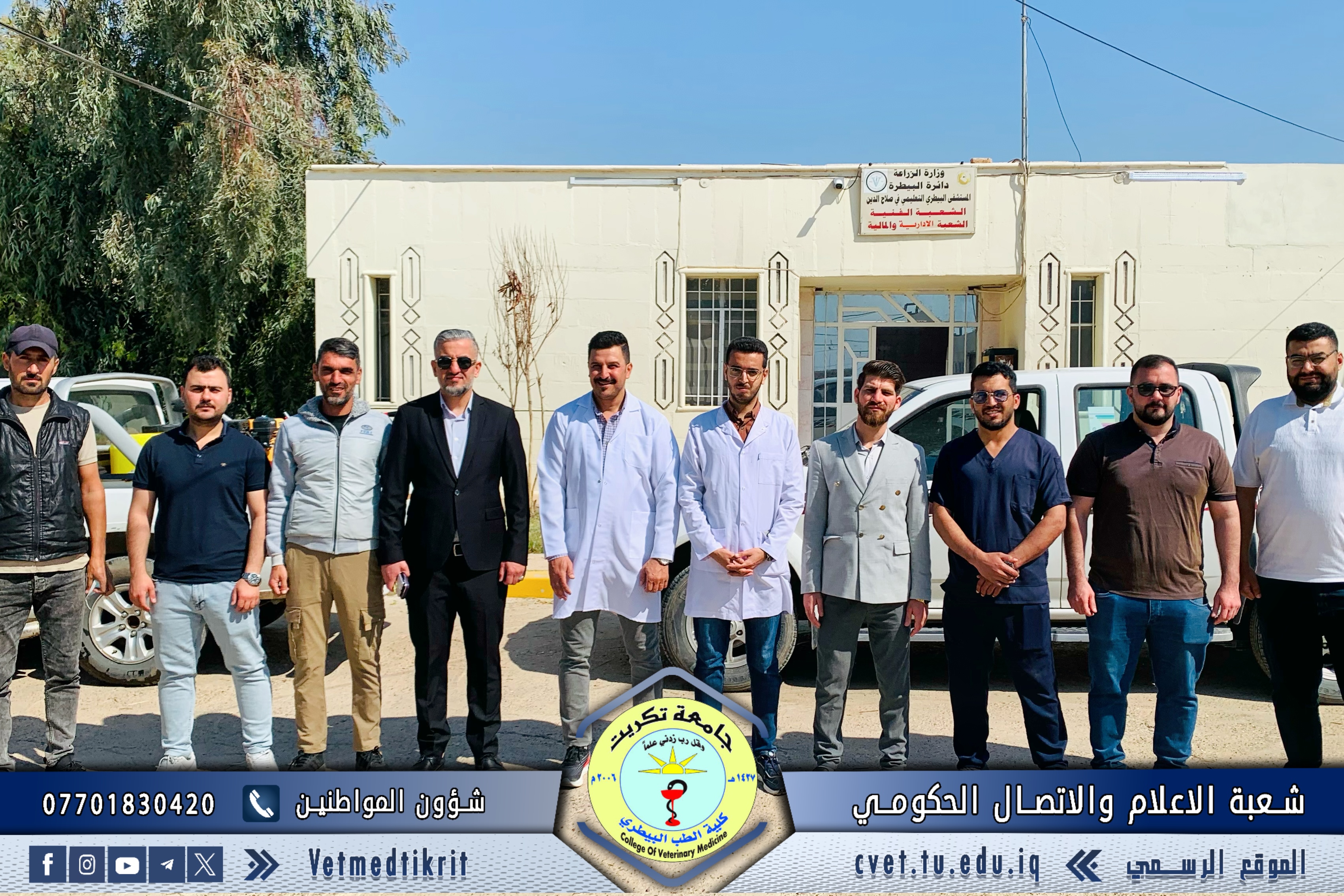 As part of its vision to support all state institutions, and in cooperation with the Educational Veterinary Hospital in Salah al-Din, the College of Veterinary Medicine at the University of Tikrit took part in the National Spraying and Dipping Campaign organized by the Ministry of Agriculture, represented by the Veterinary Directorate, and supervised by the Educational Veterinary Hospital in Salah al-Din.