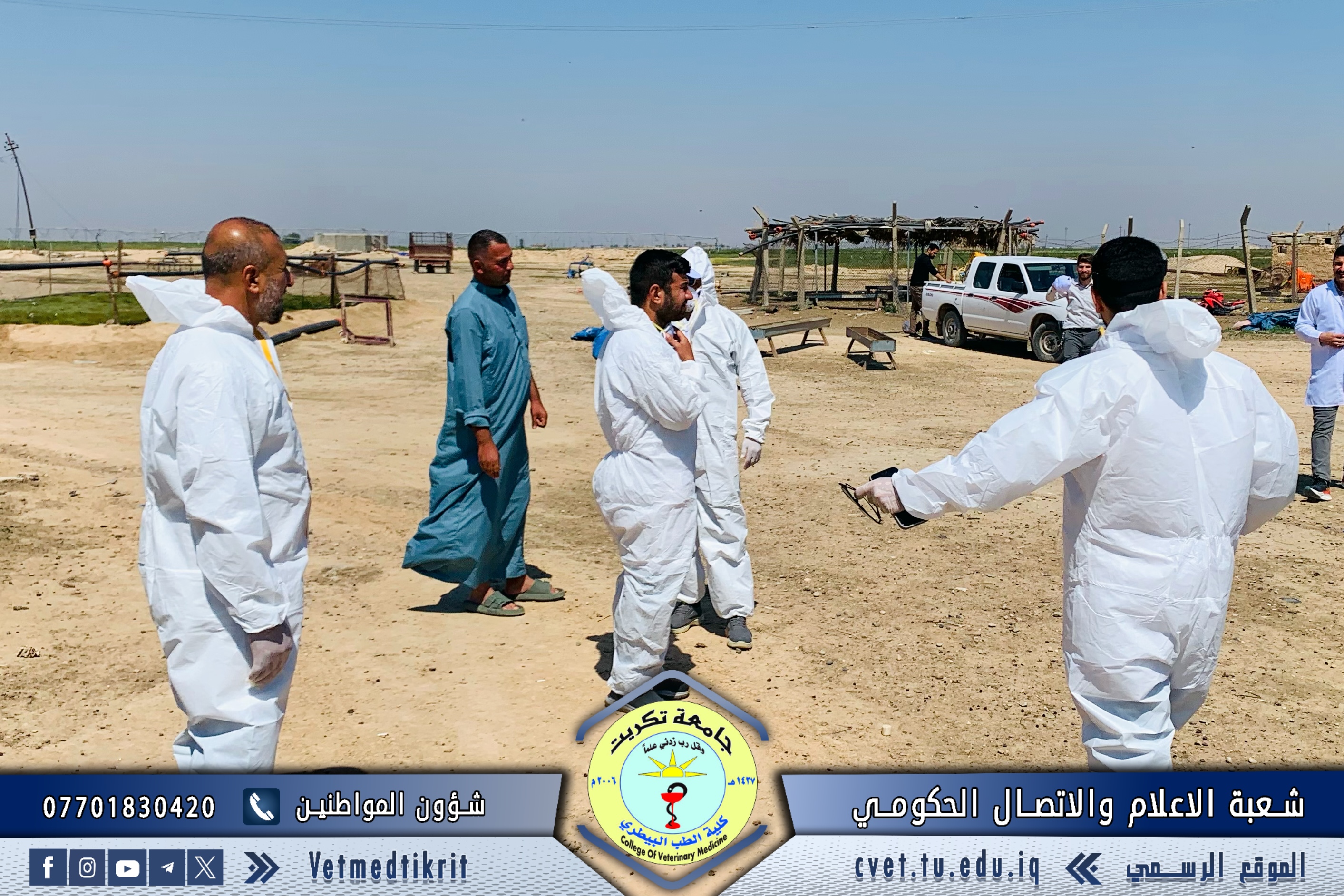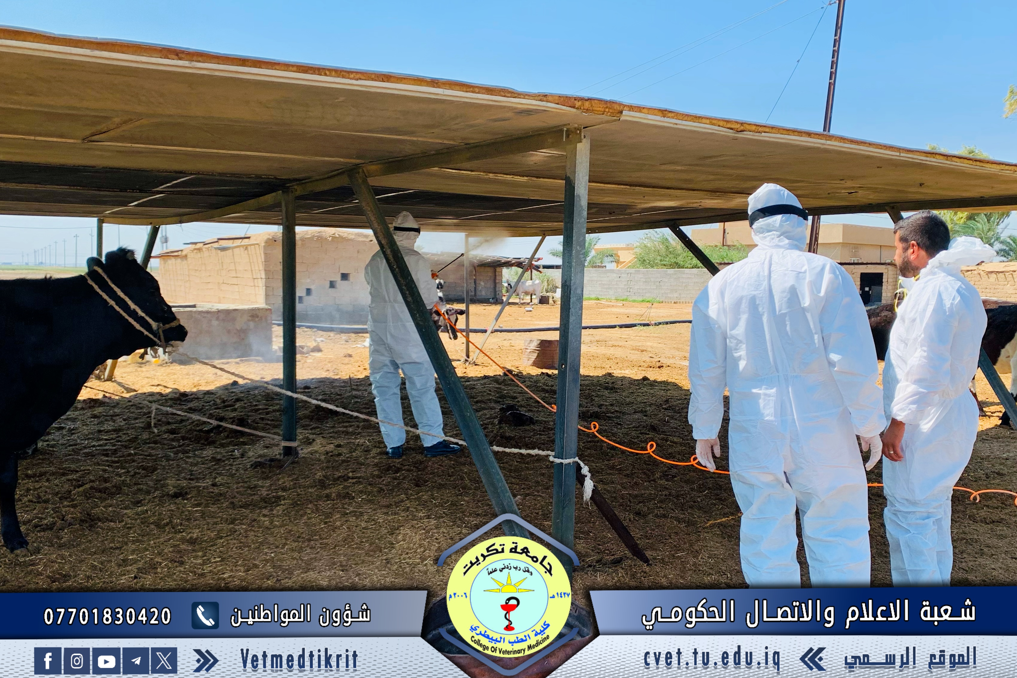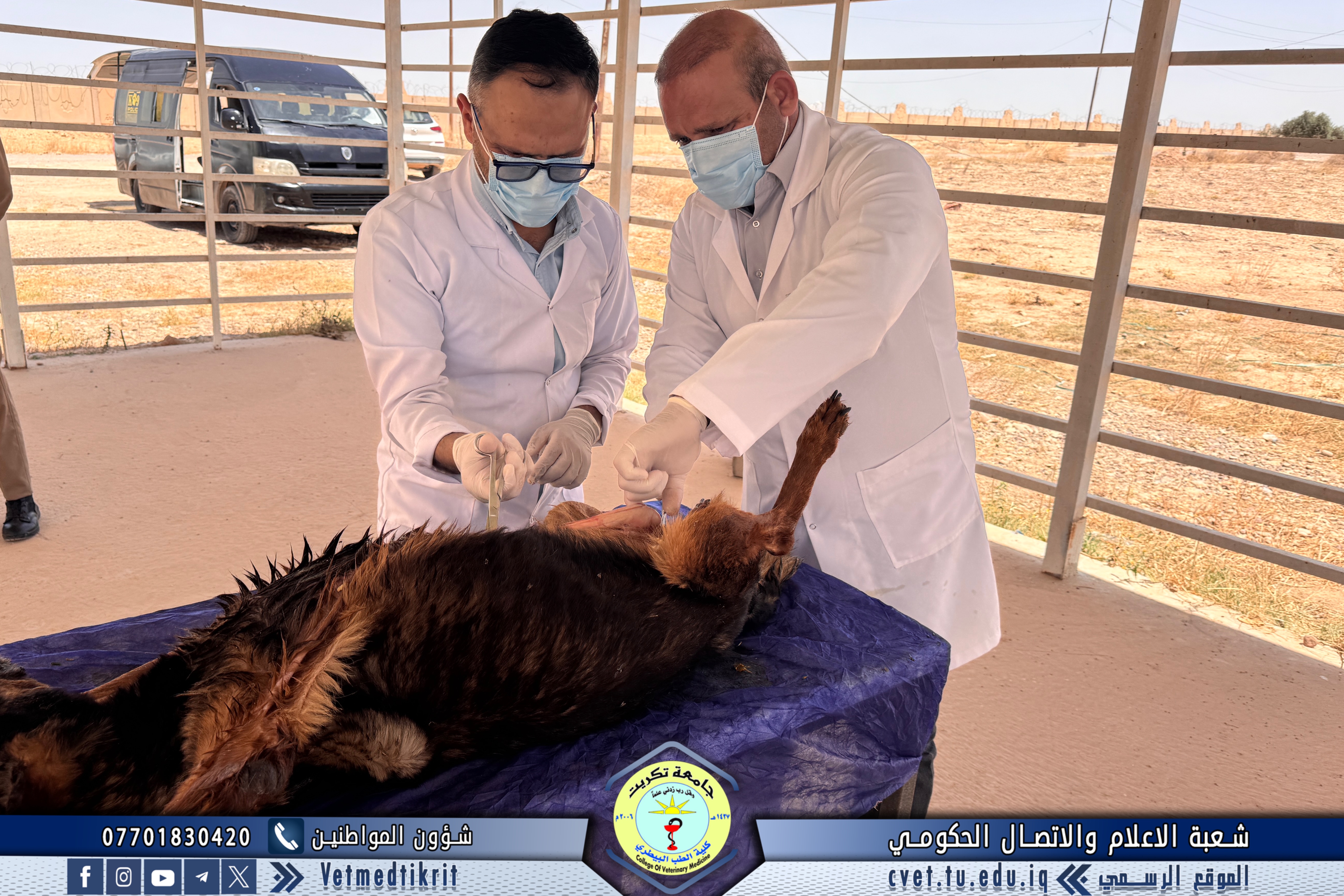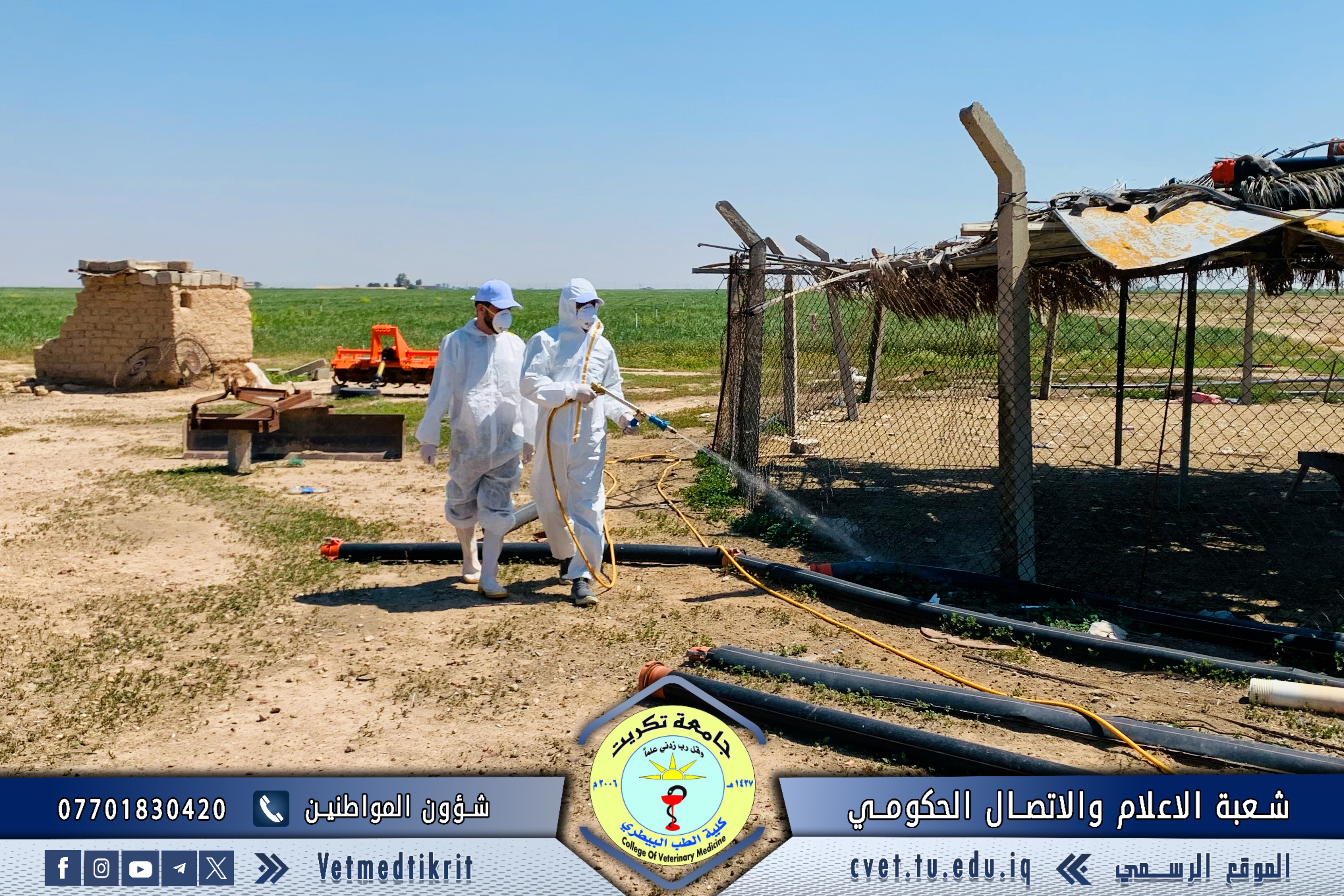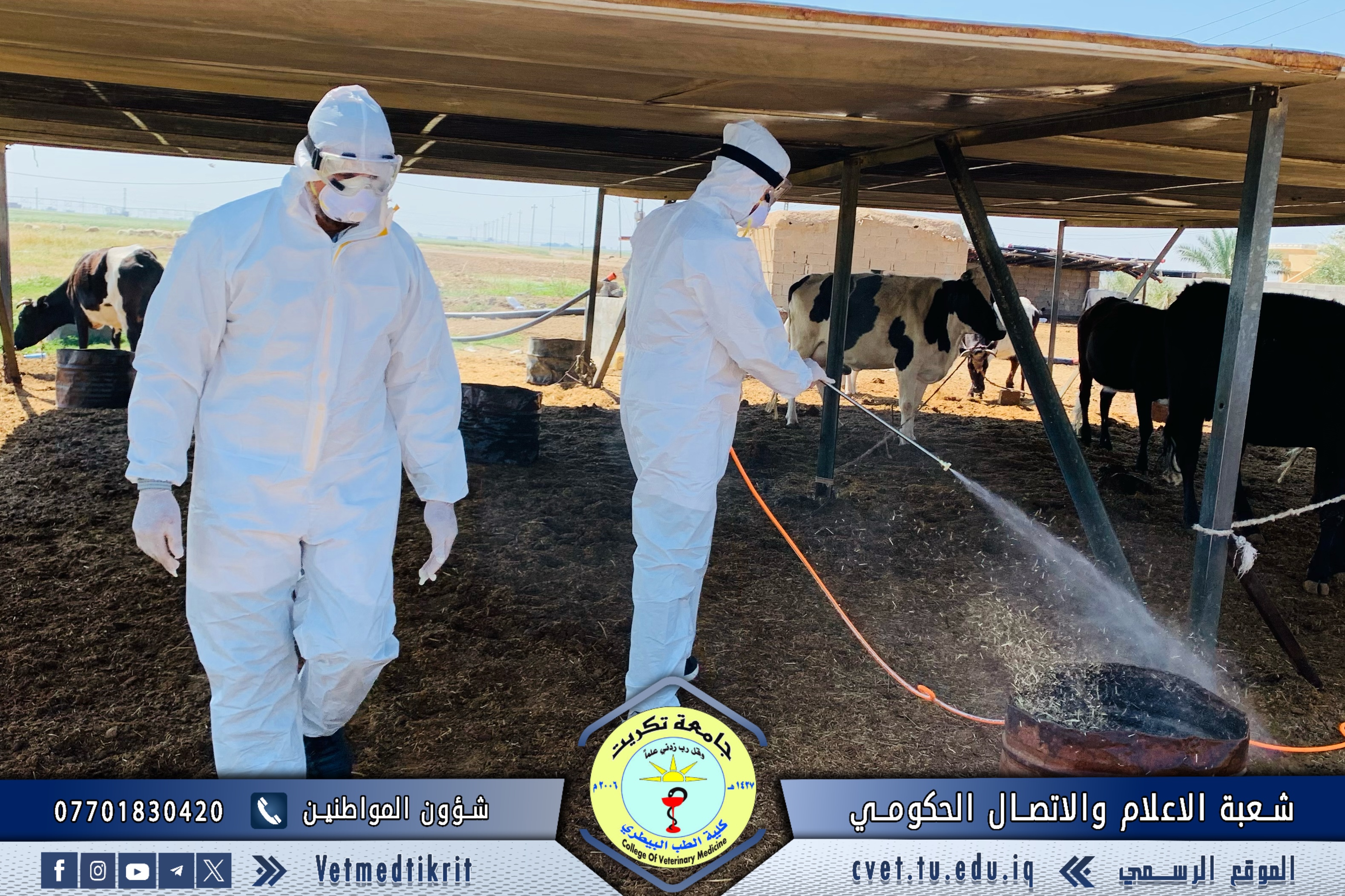 As part of its vision to support all state institutions, and in cooperation with the Educational Veterinary Hospital in Salah al-Din, the College of Veterinary Medicine at the University of Tikrit took part in the National Spraying and Dipping Campaign organized by the Ministry of Agriculture, represented by the Veterinary Directorate, and supervised by the Educational Veterinary Hospital in Salah al-Din.