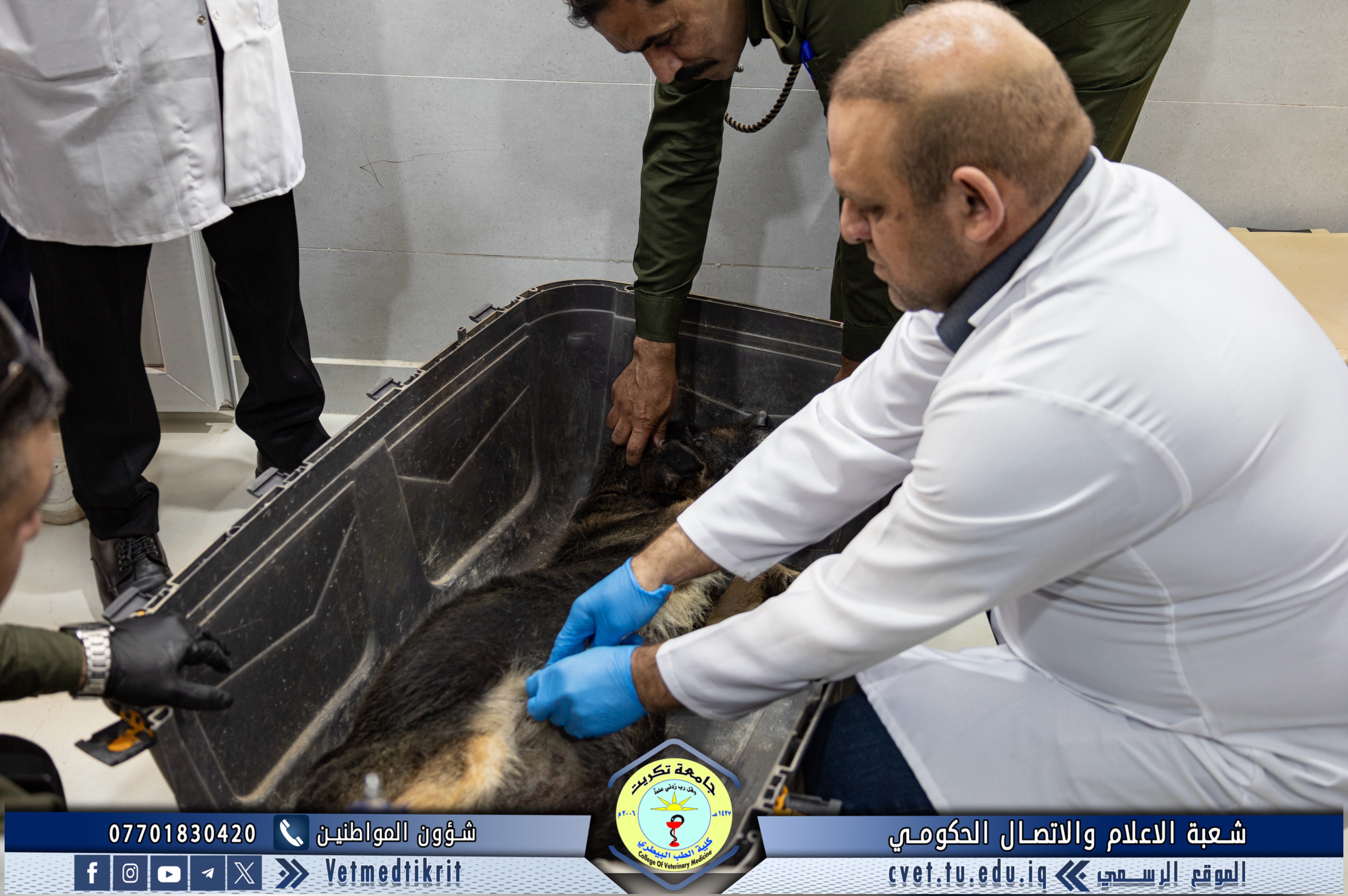 The External Clinic Unit at the College of Veterinary Medicine, University of Tikrit received two German Shepherd (K-9) cases belonging to the Salahuddin Police Command, as part of the ongoing cooperation between the college and state institutions in providing veterinary and medical services.