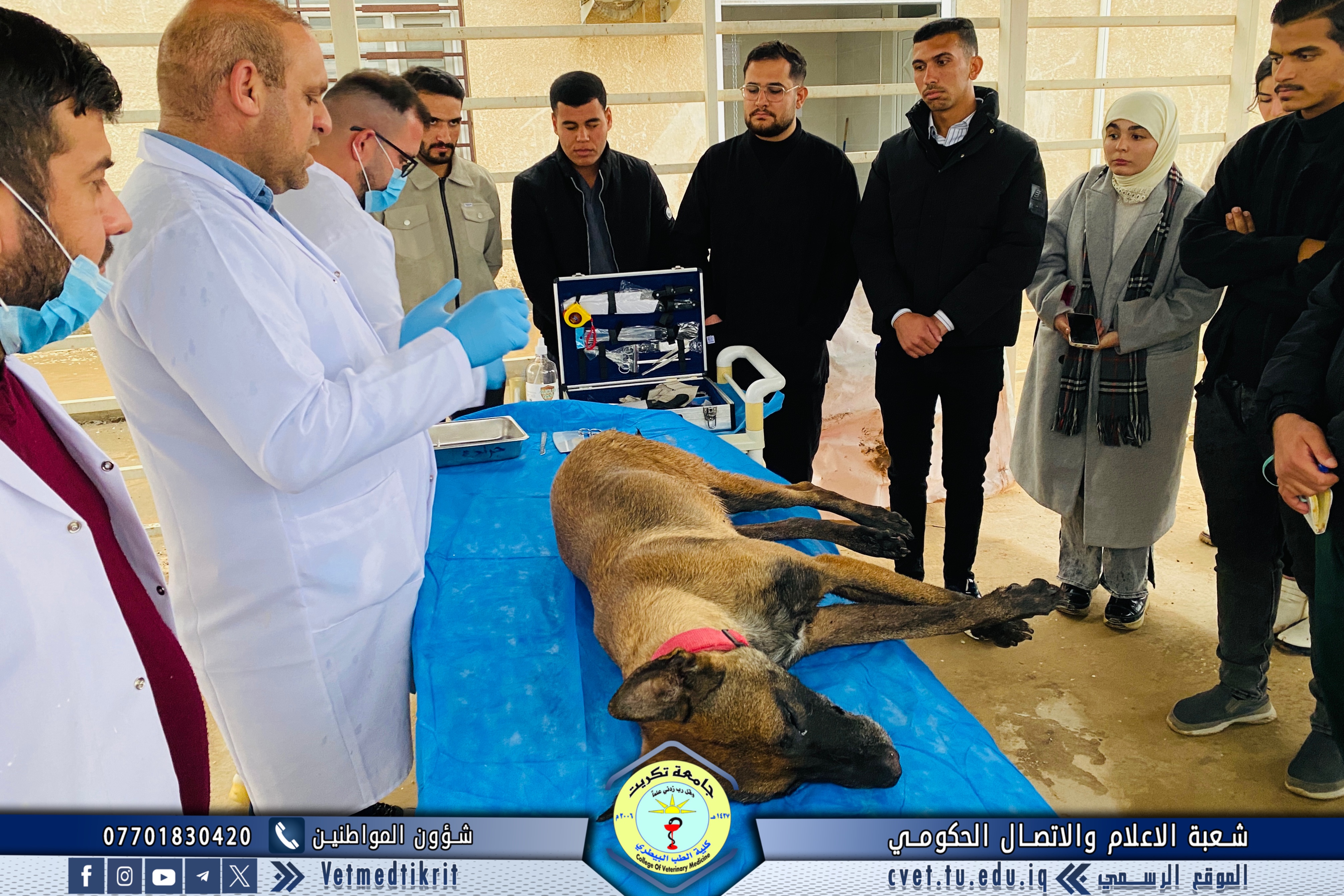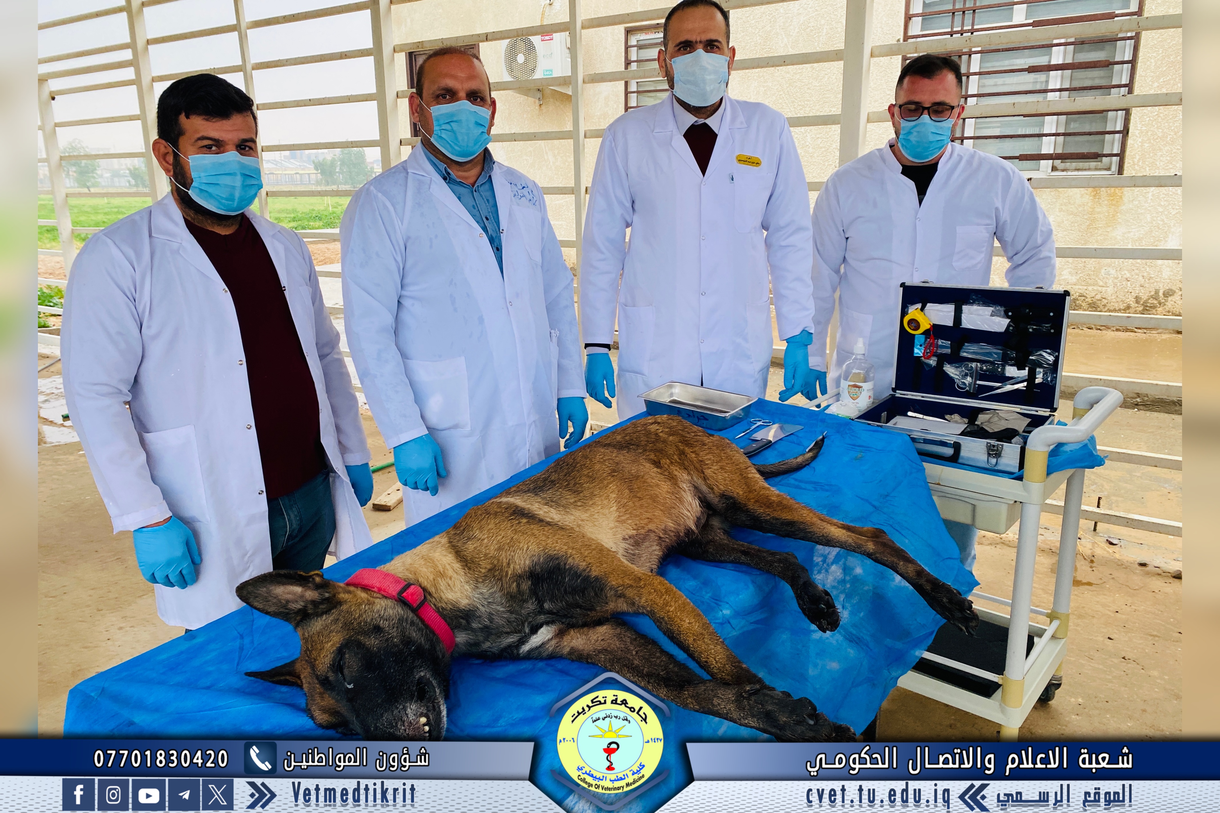 The External Clinic Unit at the College of Veterinary Medicine, University of Tikrit, received a veterinary case from the Salahuddin Governorate Police Command involving a deceased dog from the K-9 Police Dog Management and Training Unit.