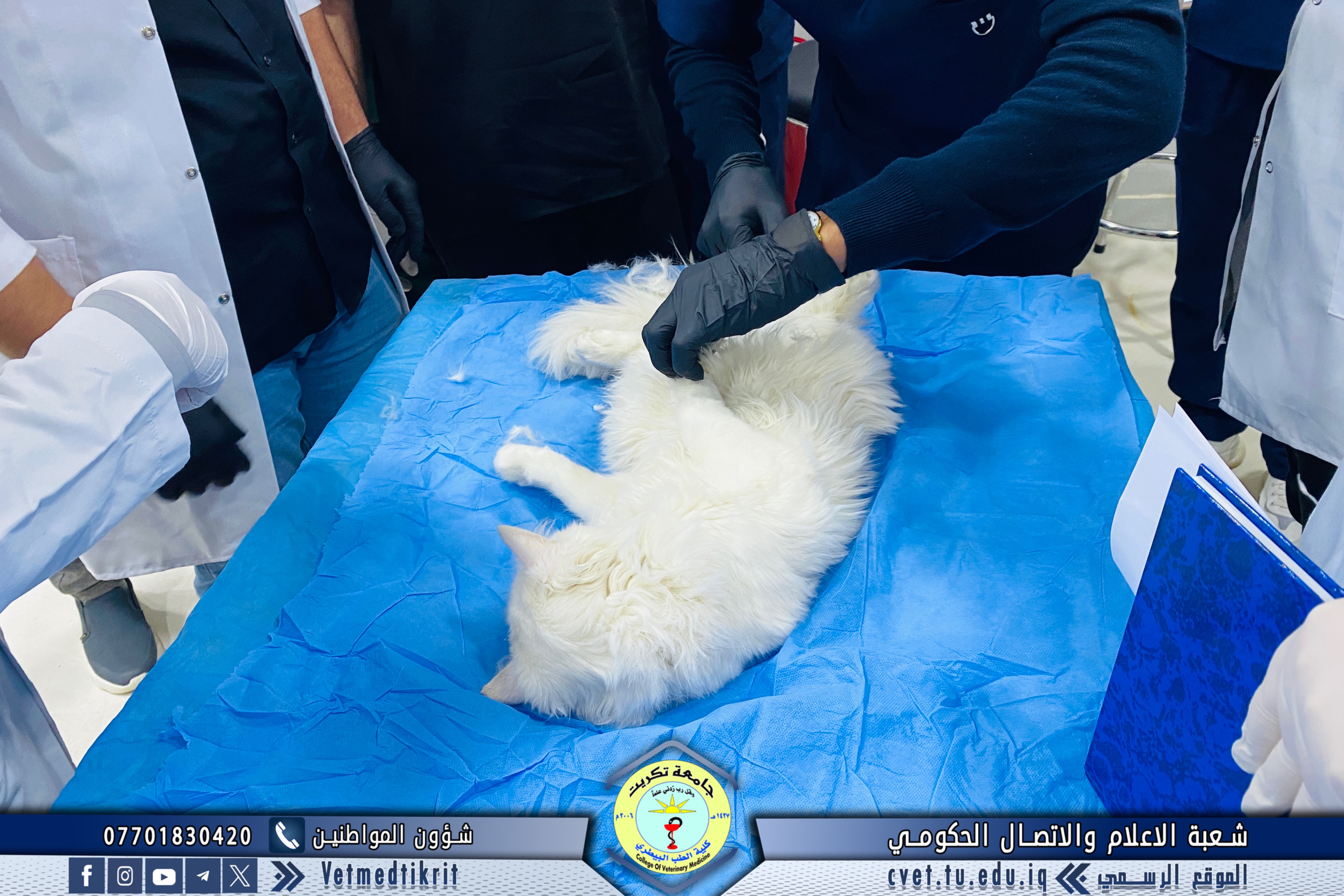 In this context, the clinic received two separate feline cases brought by breeders. Two successful sterilization procedures were performed by the College’s specialized veterinary staff, with the active participation of final-year students under direct supervision to ensure the highest standards of safety and quality.