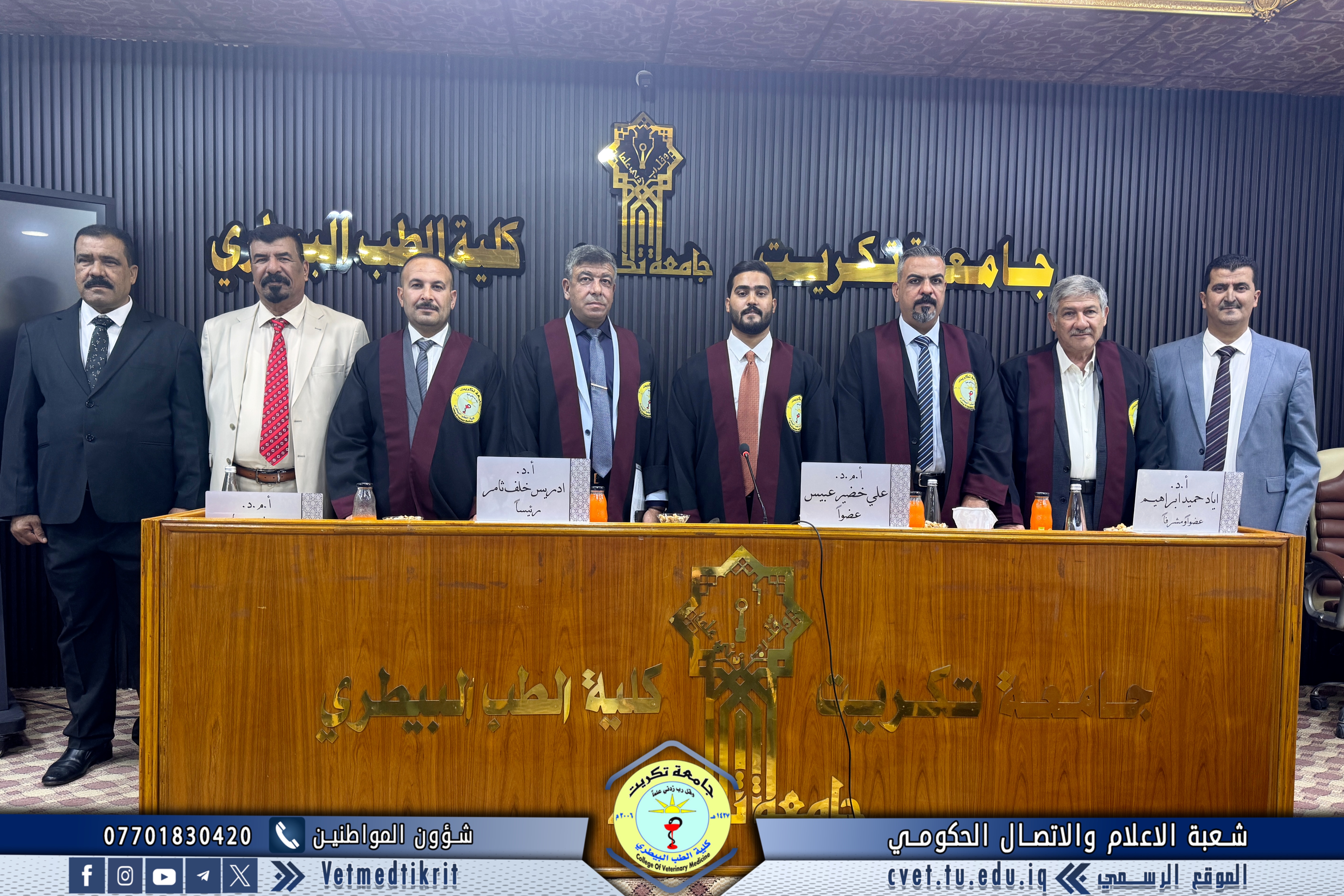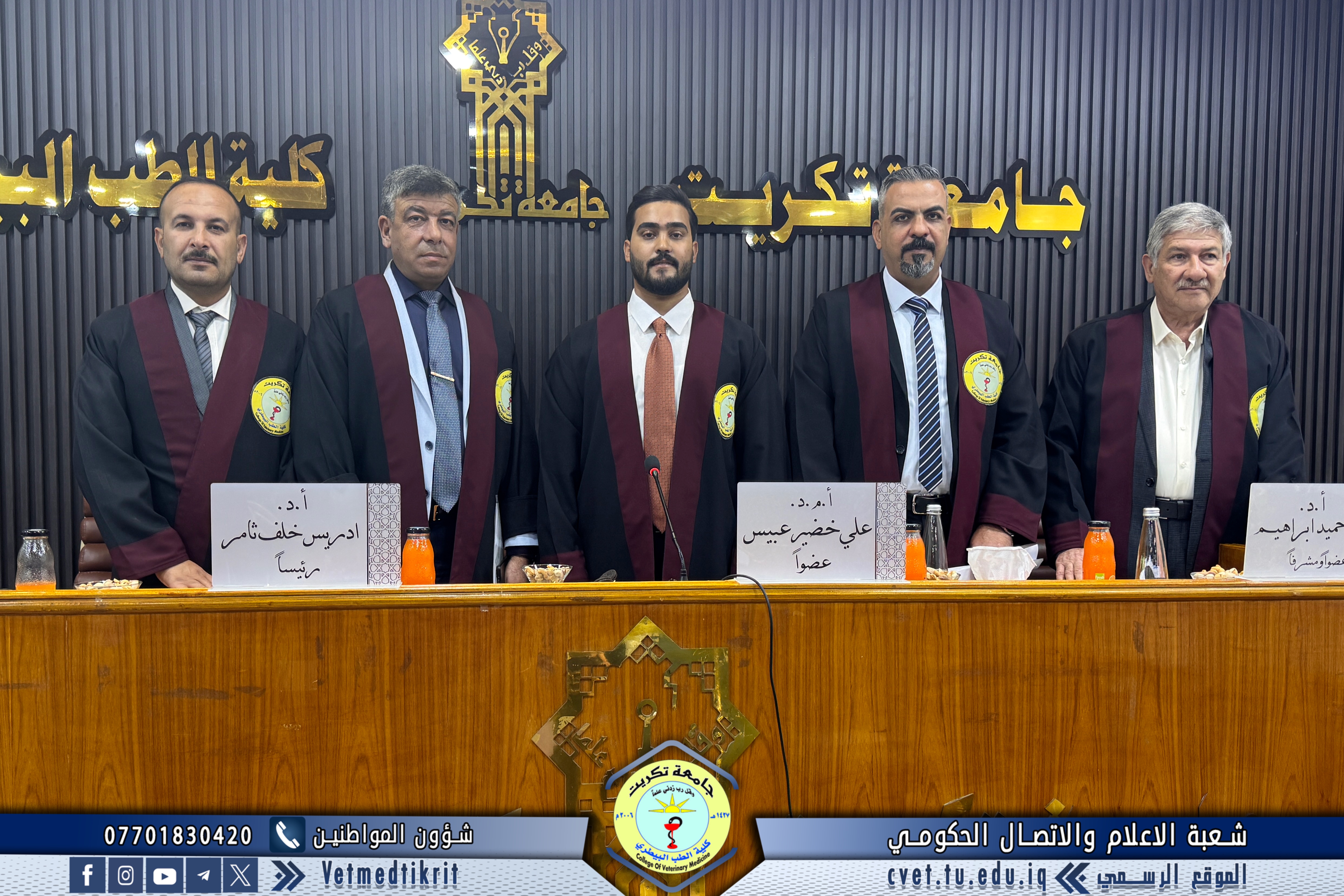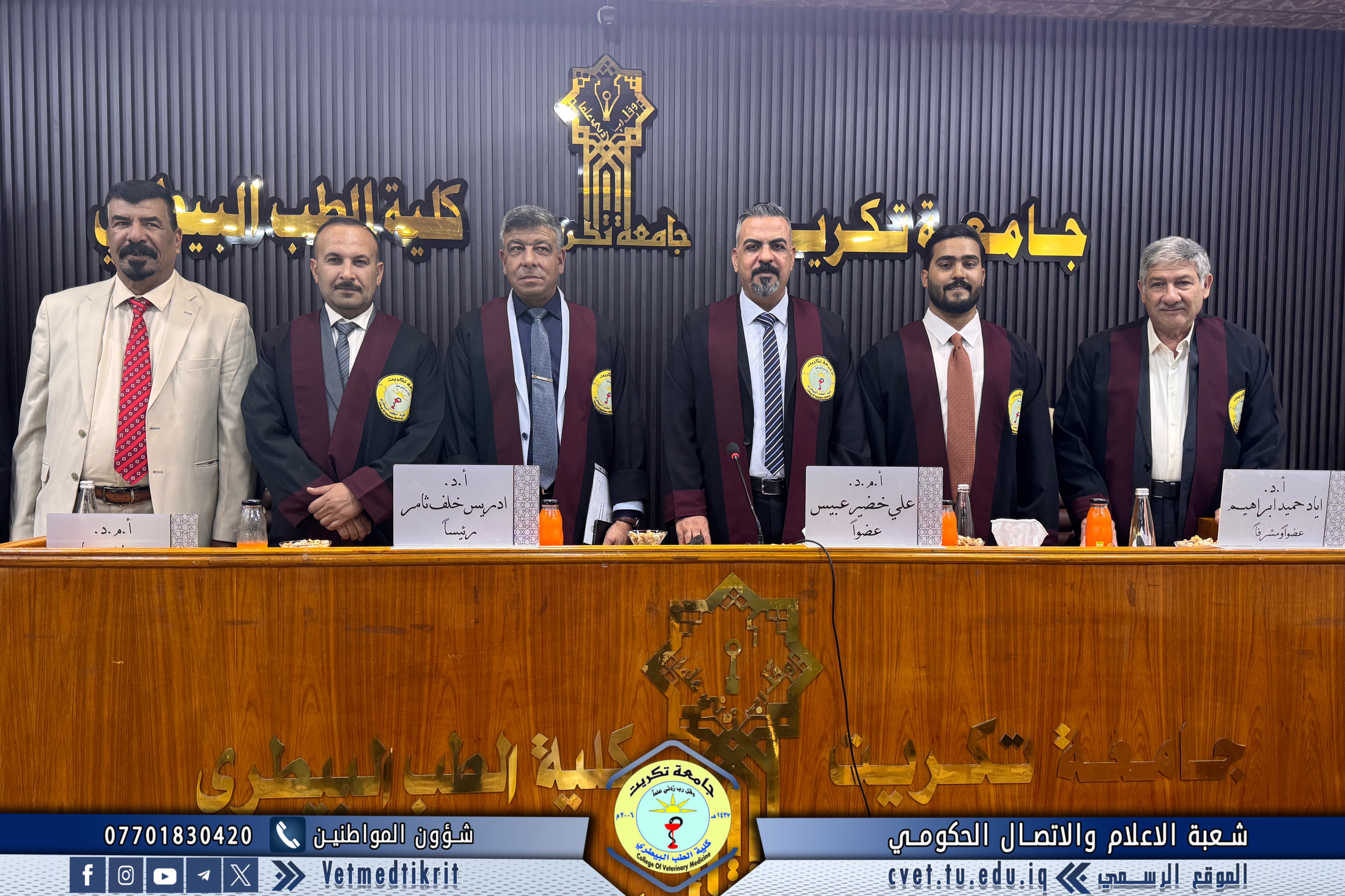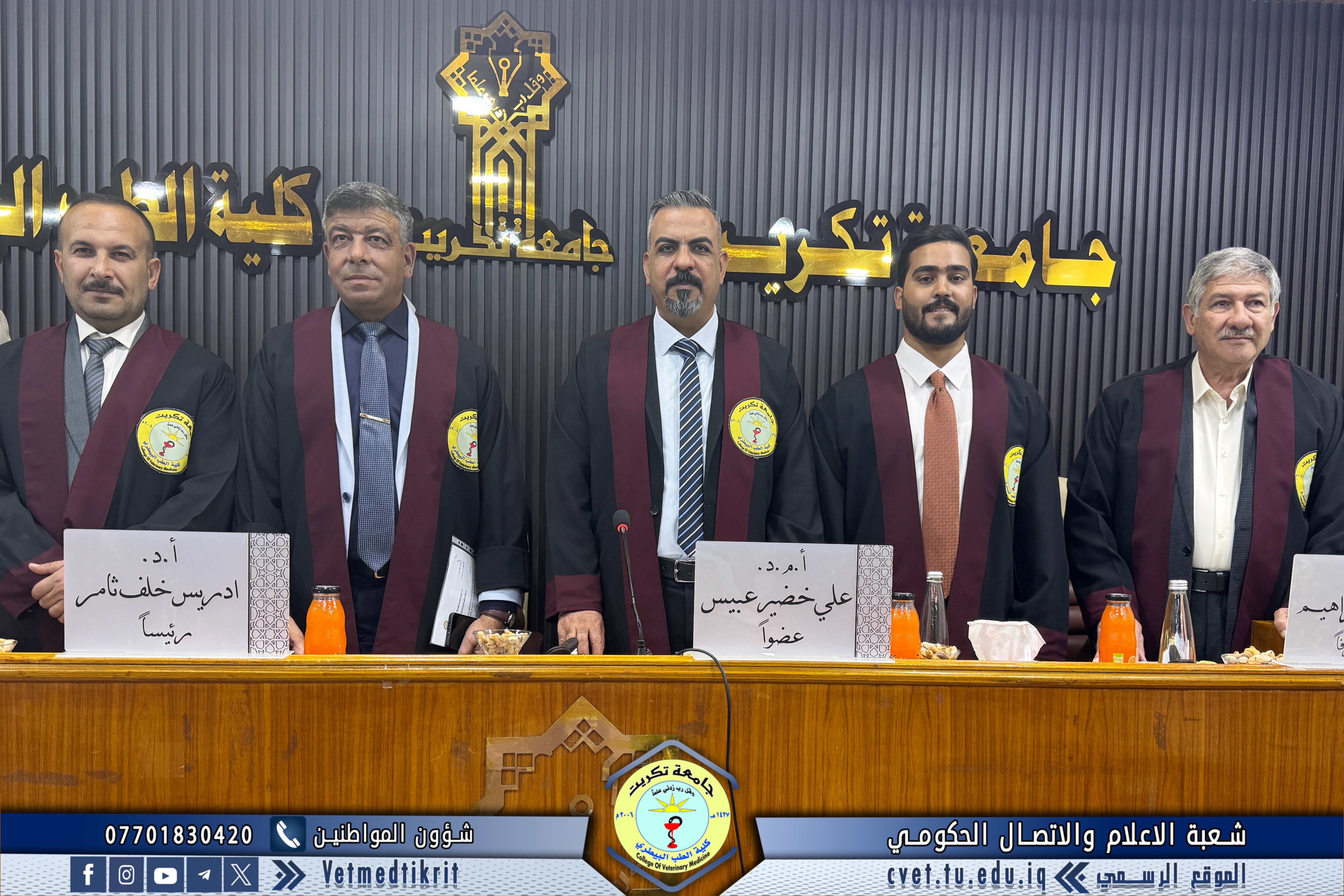 By the grace of Almighty God, a master’s thesis defense was held at the College of Veterinary Medicine, University of Tikrit, for the thesis titled: