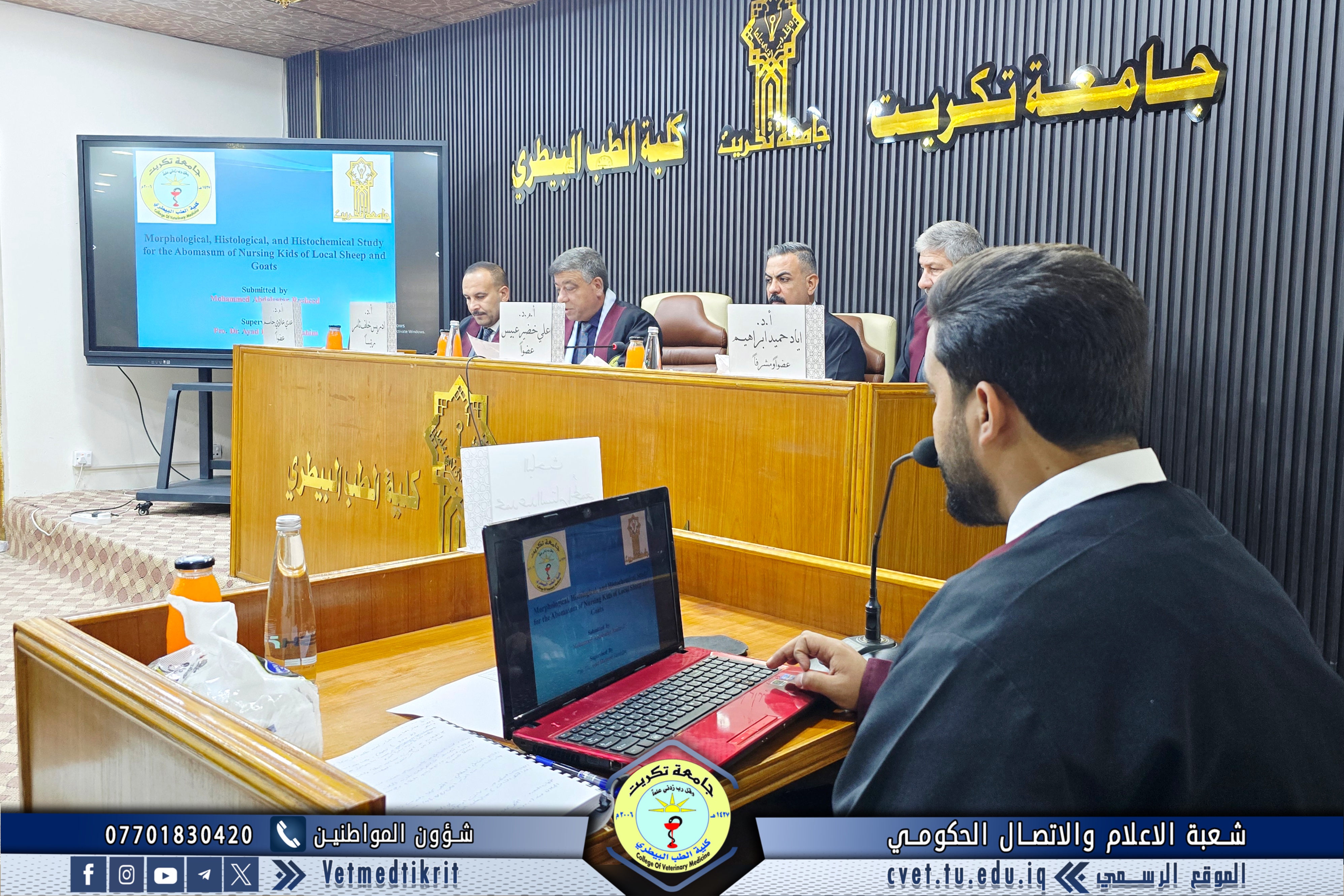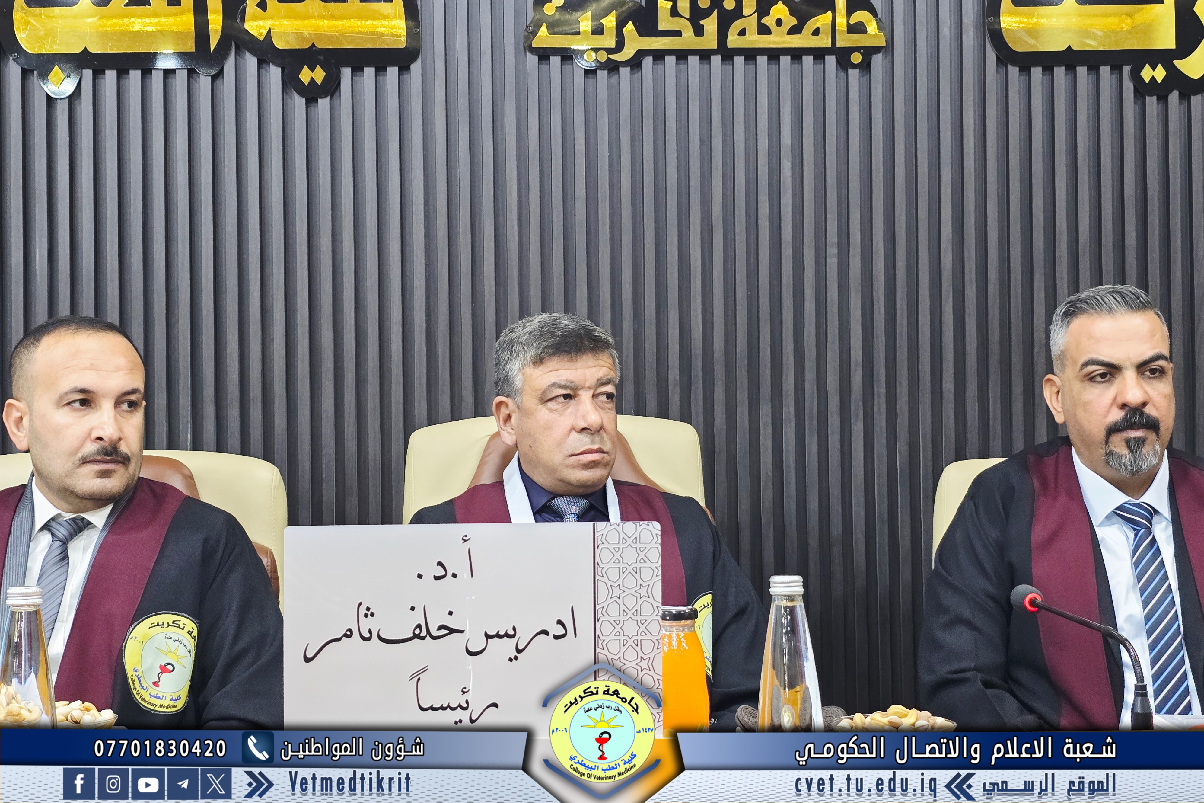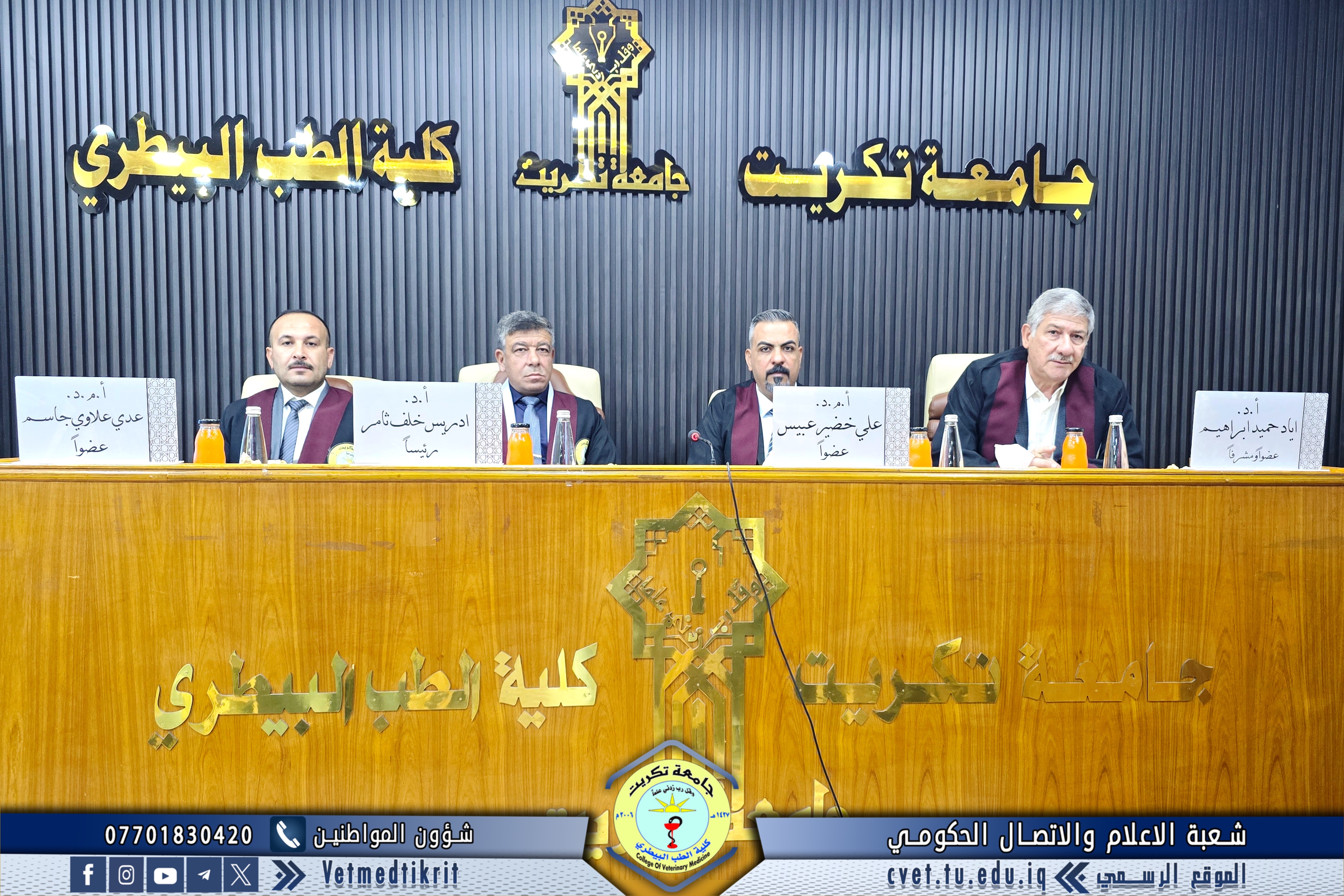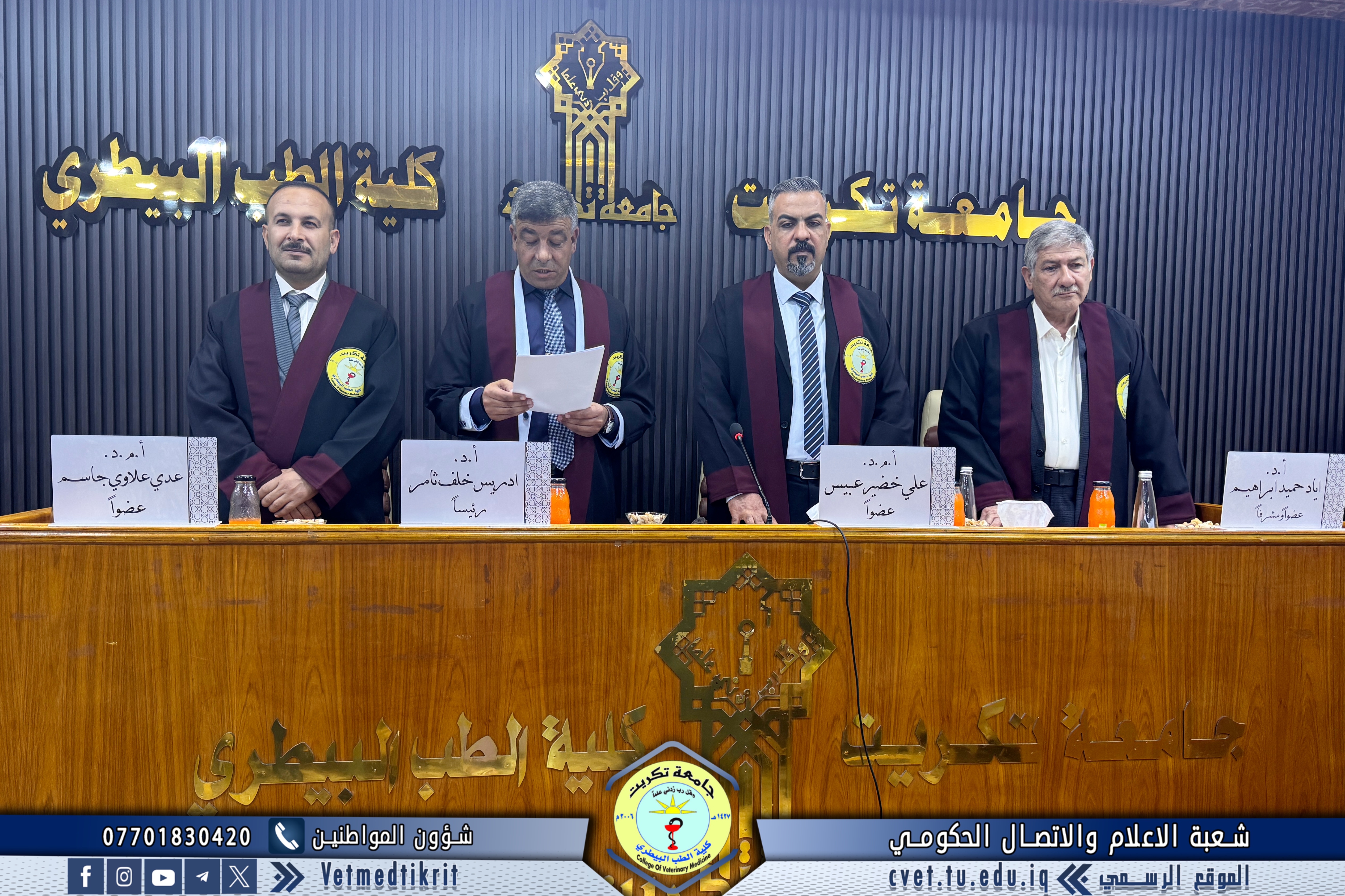 By the grace of Almighty God, a master’s thesis defense was held at the College of Veterinary Medicine, University of Tikrit, for the thesis titled: