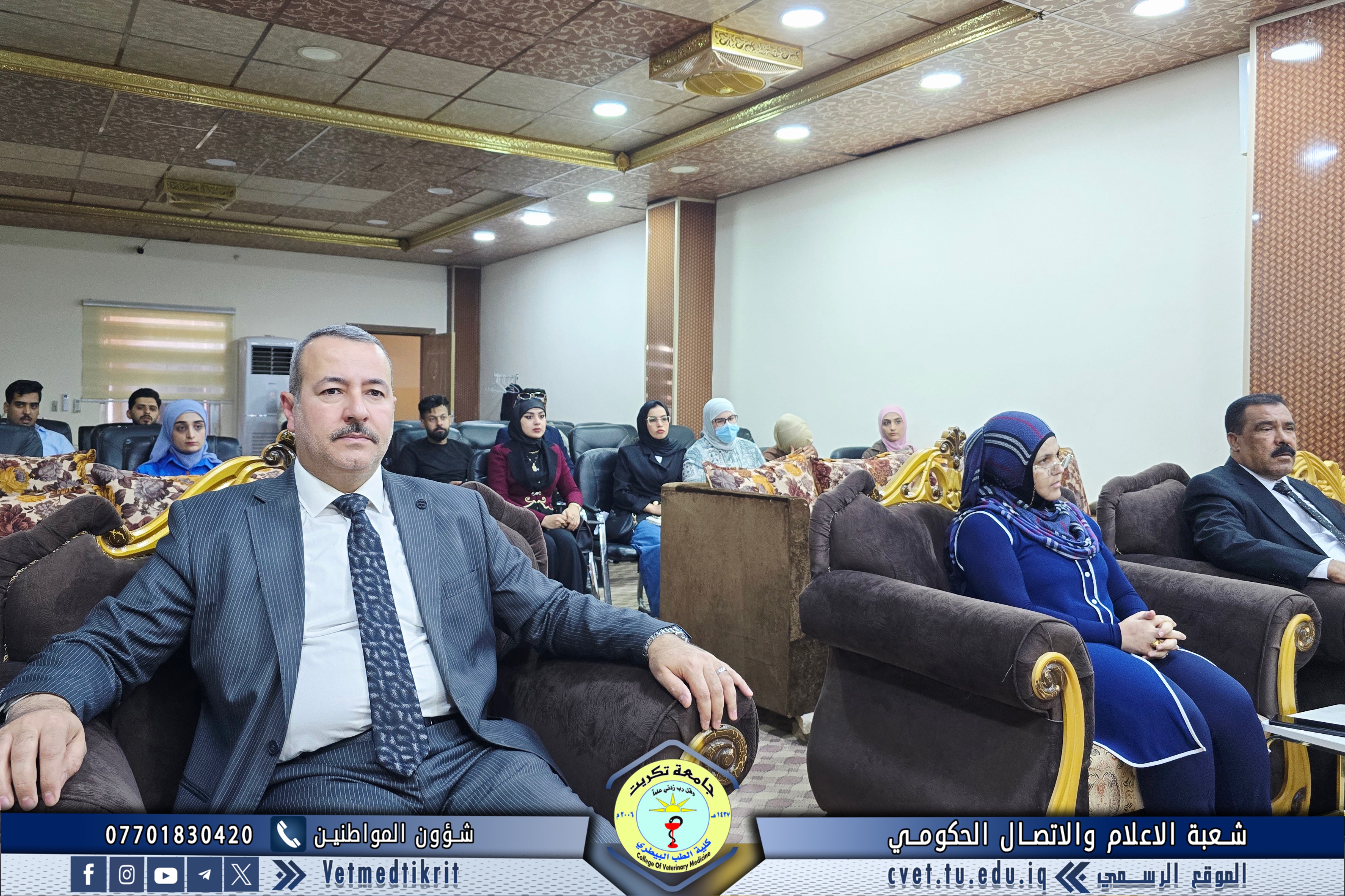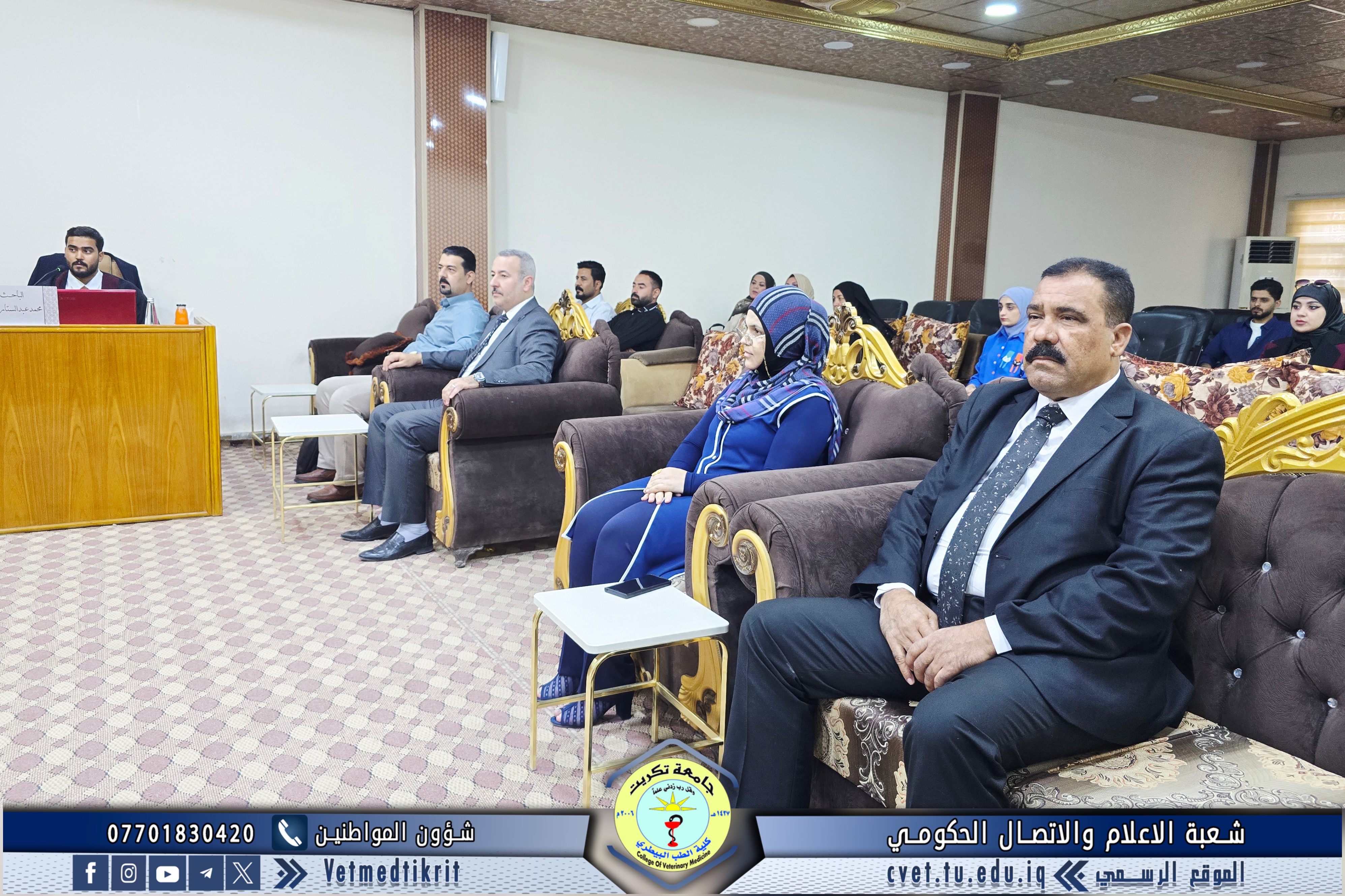 by Mohammed Abdul Sattar Rasheed Mohammed, specializing in Veterinary Histology. The session was attended by Prof. Dr. Bashar Sadiq Noami, Dean of the College, along with several faculty members and students.