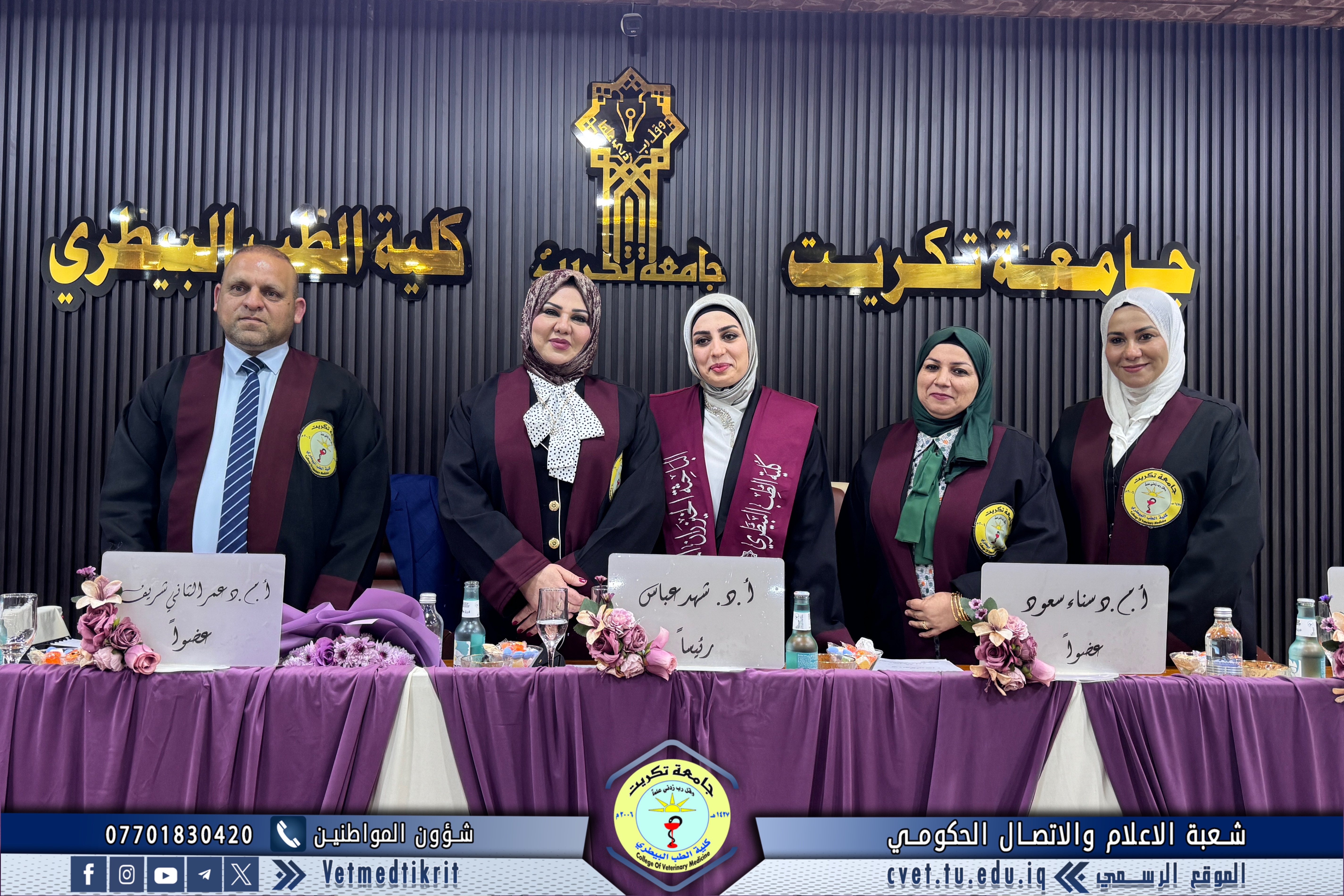 With the grace of Allah, the College of Veterinary Medicine at Tikrit University held the defense of the Master’s thesis entitled: