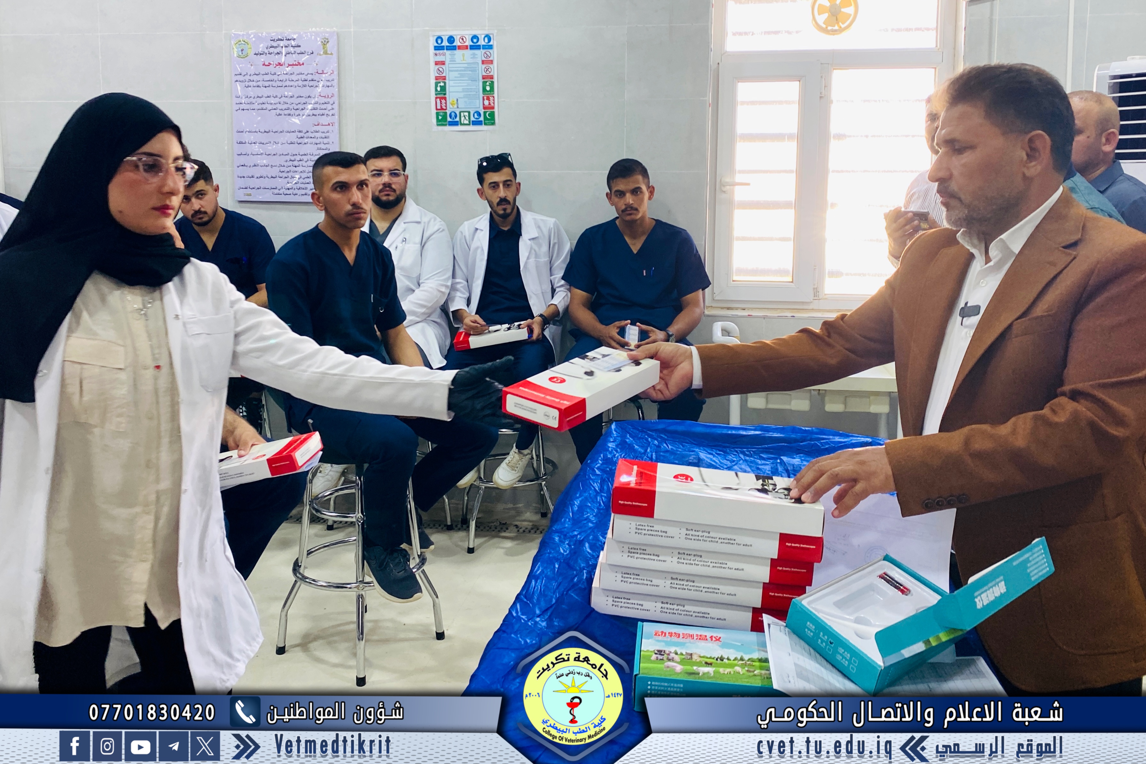 s part of its efforts to provide an integrated practical learning environment, the College of Veterinary Medicine at Tikrit University has distributed a set of educational medical devices to senior students, aiming to support the practical aspect of their studies and enhance their skills in veterinary examination and diagnosis.