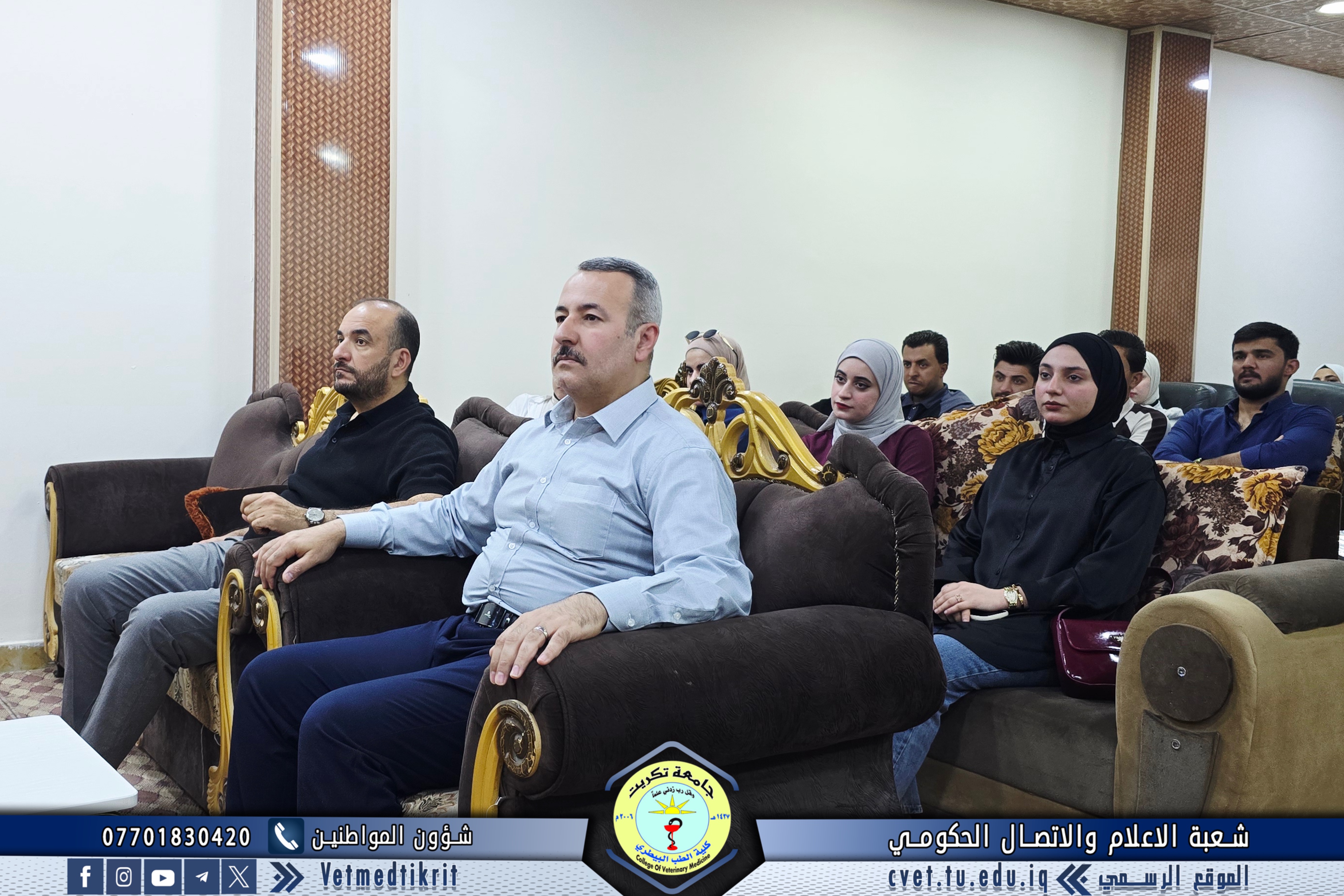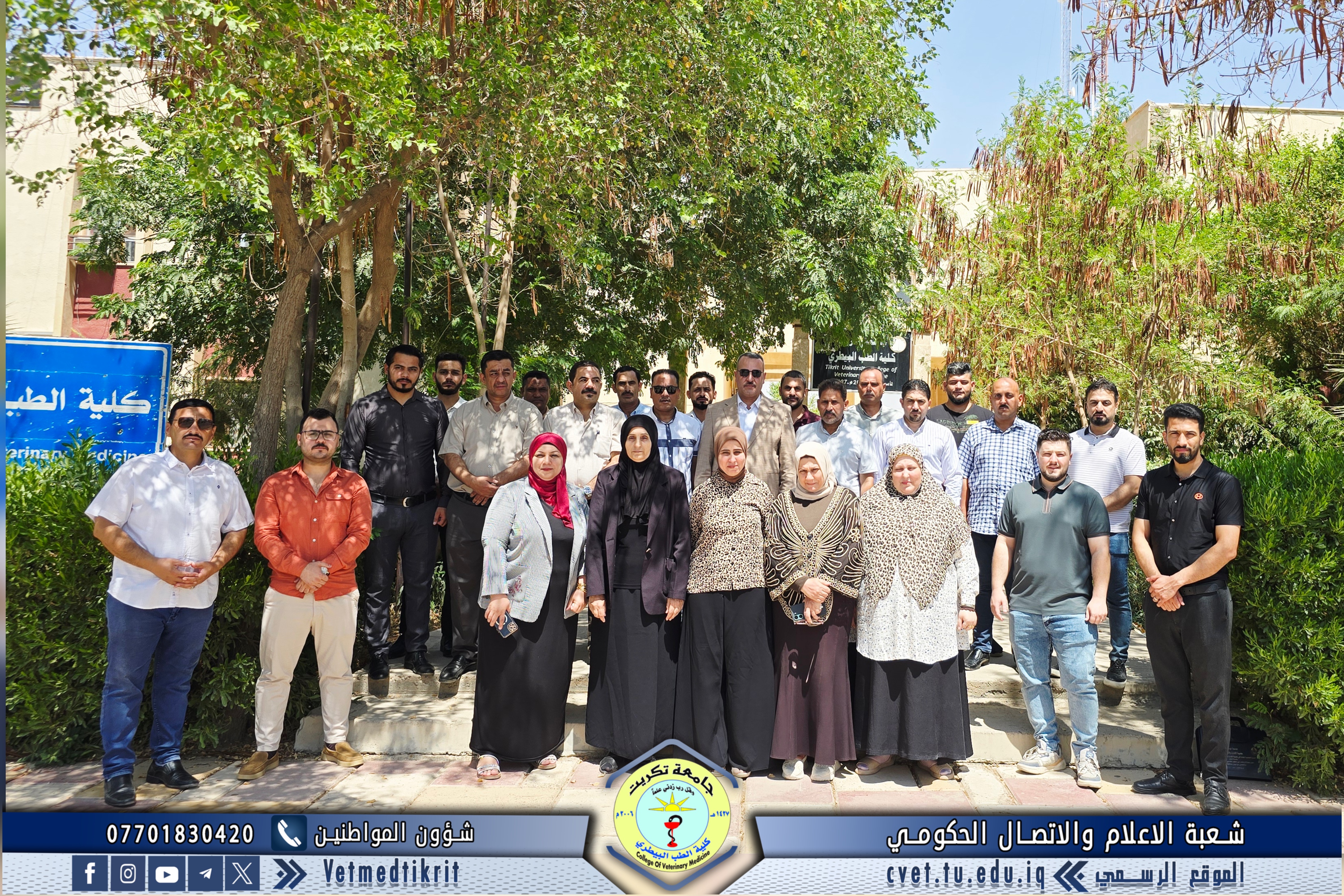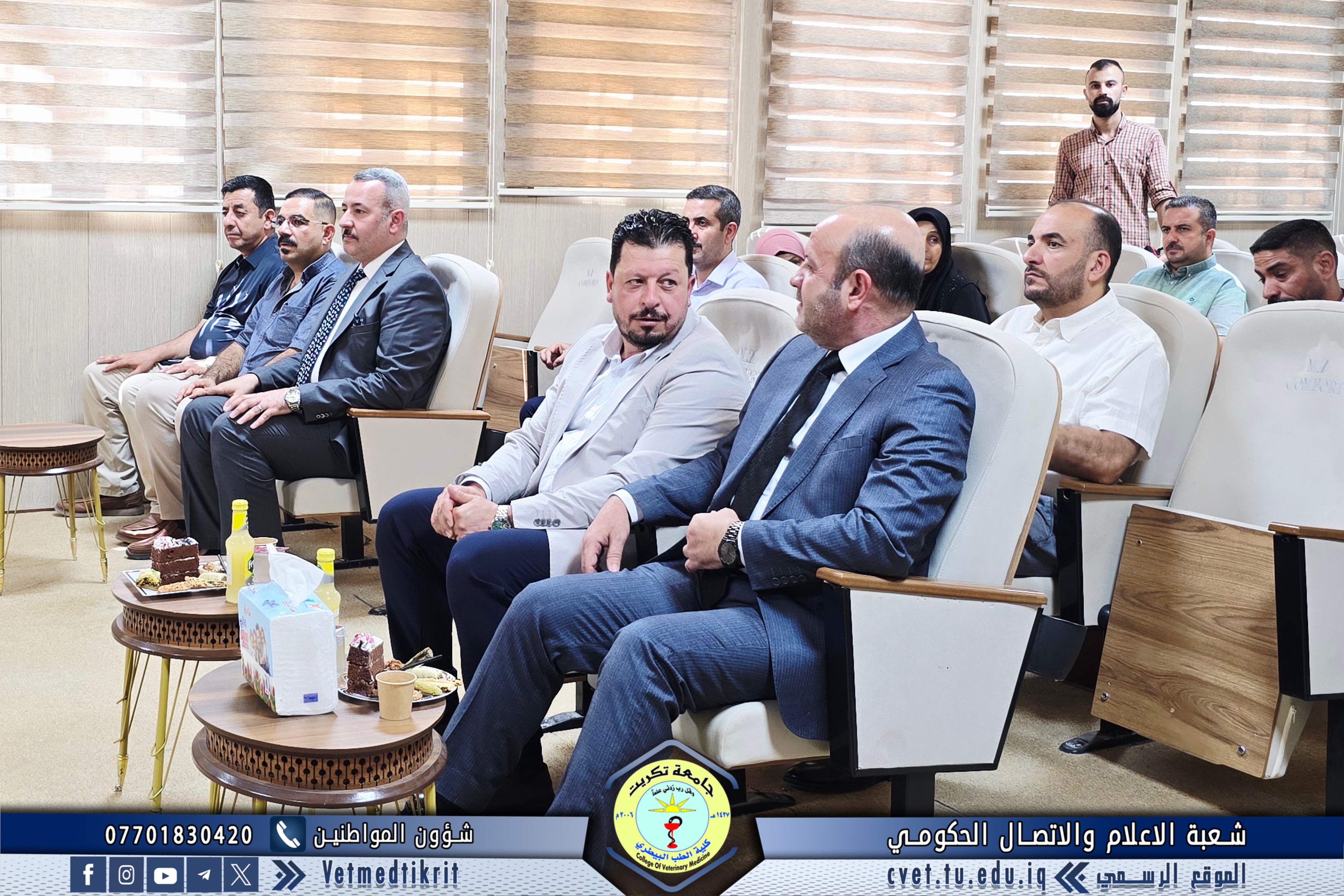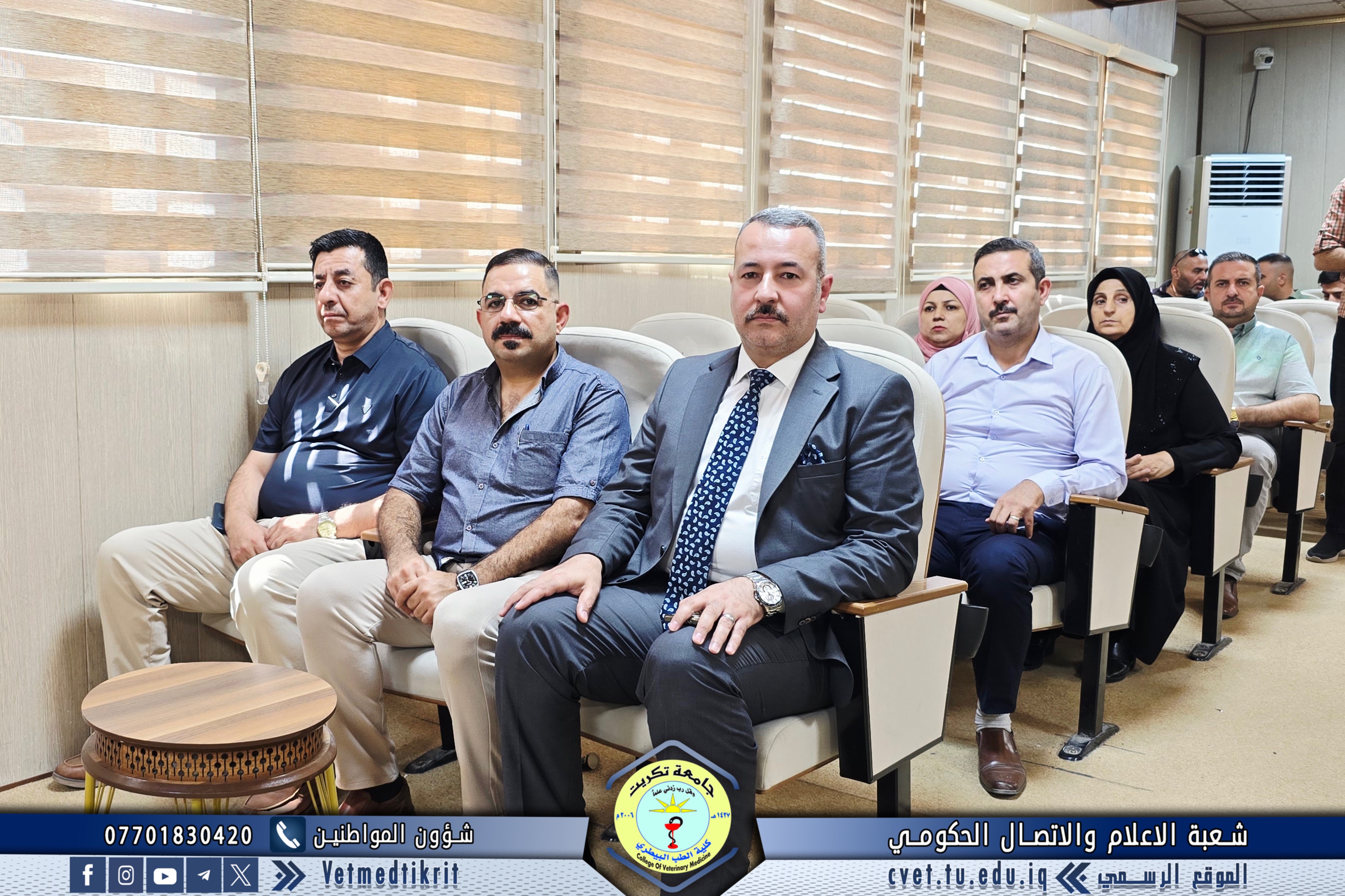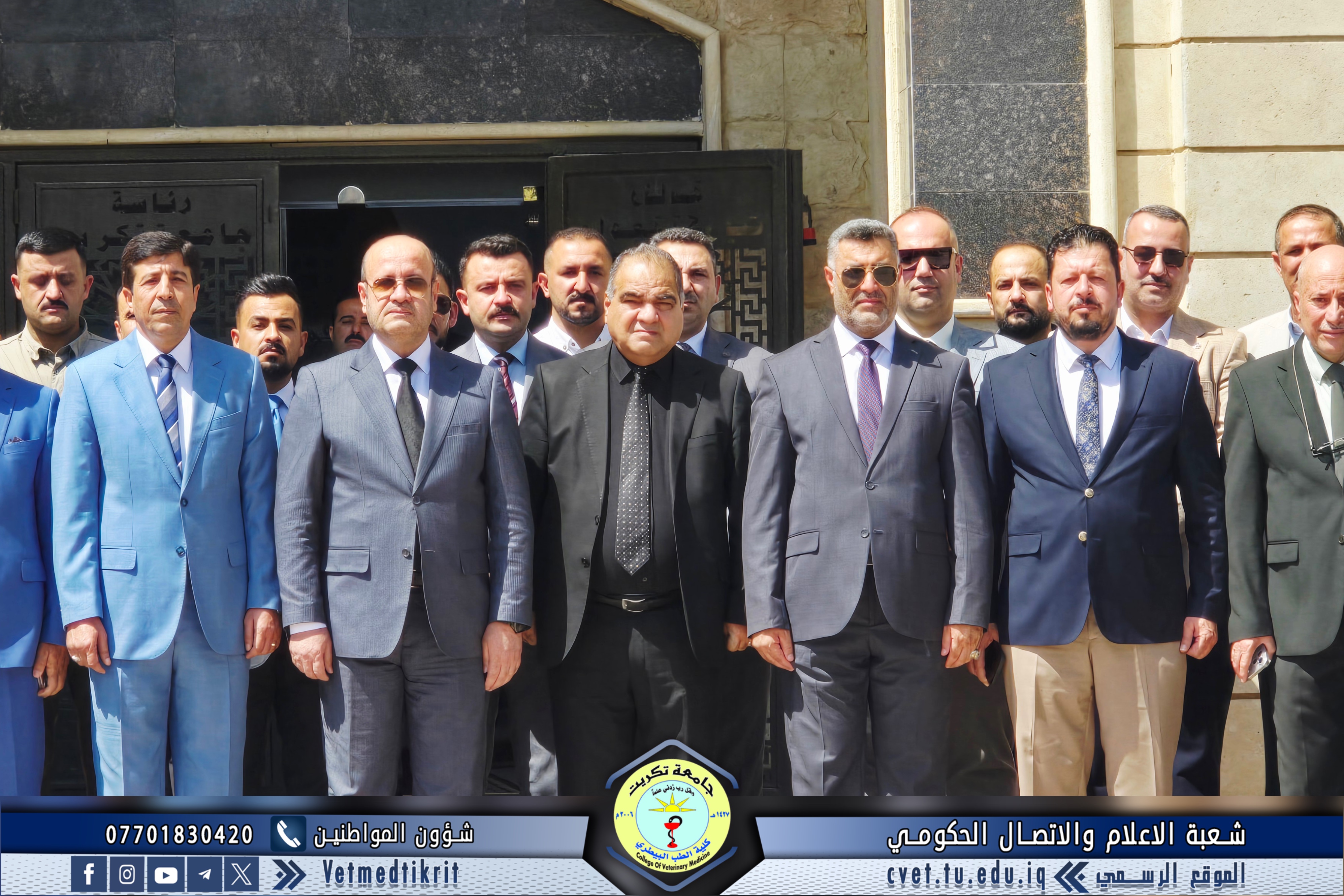 The College of Veterinary Medicine at the University of Tikrit welcomed the Ministerial Committee for Evaluating the Academic and Scientific Reality of the college. The committee was received by Prof. Dr. Bashar Sadiq Noami, Dean of the College; Asst. Prof. Dr. Montaser Mohammed Hilal, Associate Dean for Scientific Affairs; Asst. Prof. Dr. Osama Hamid Shihab, Associate Dean for Administrative Affairs; and Asst. Prof. Dr. Ahmed Abdullah Sultan, Director of the Quality Assurance and University Performance Division.