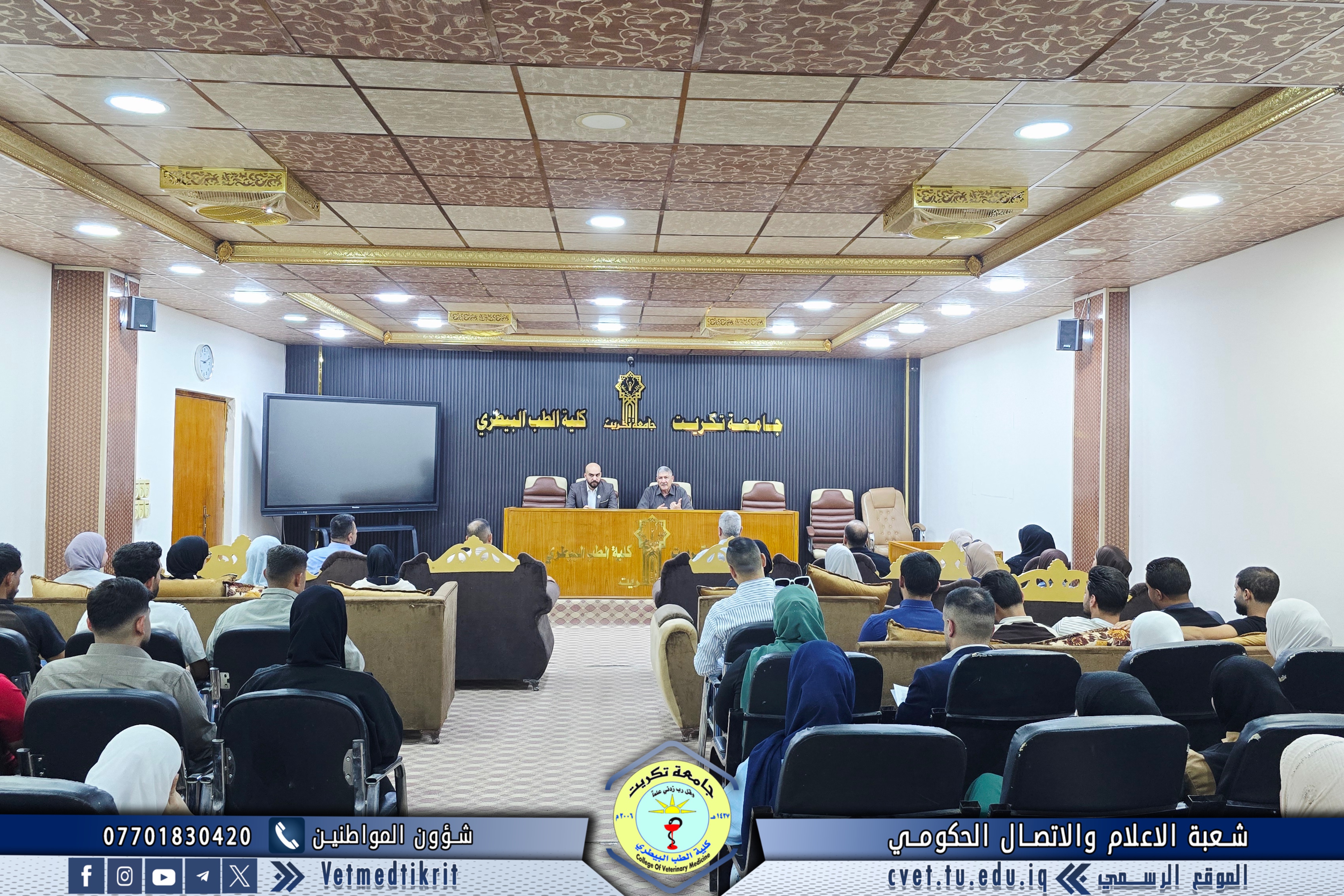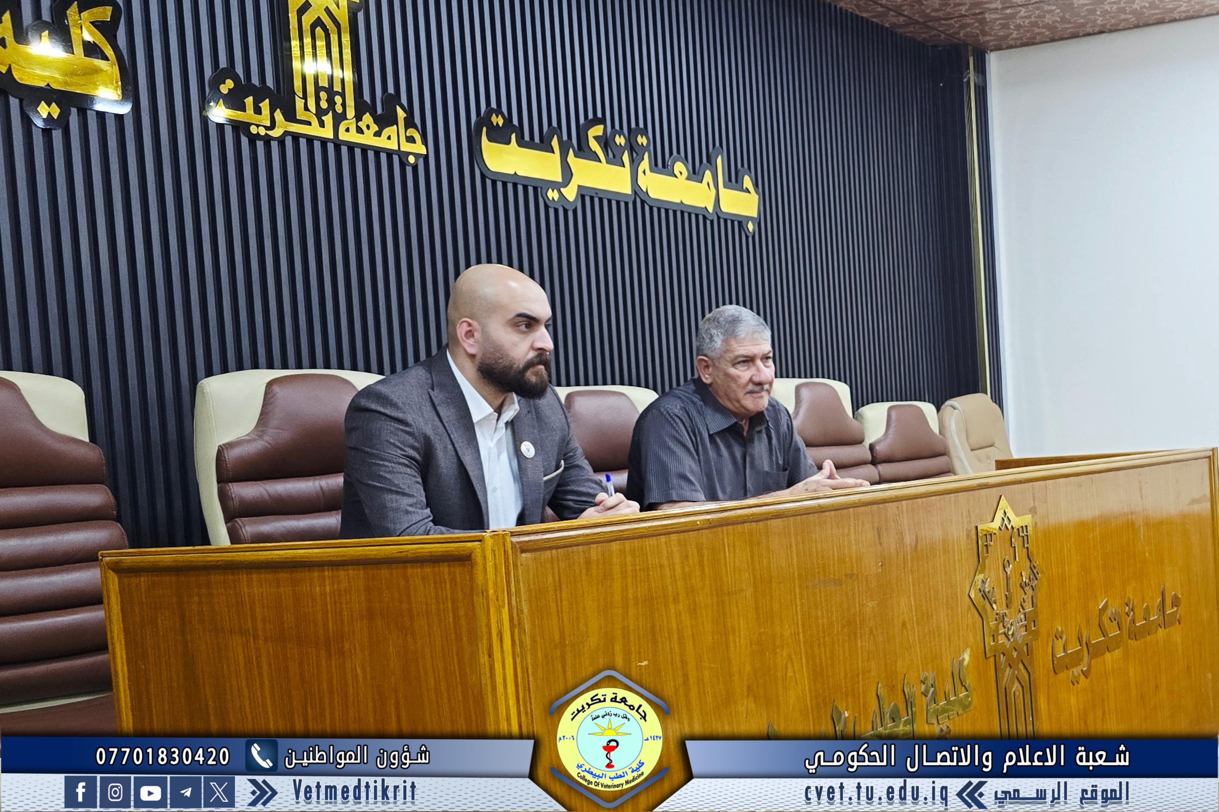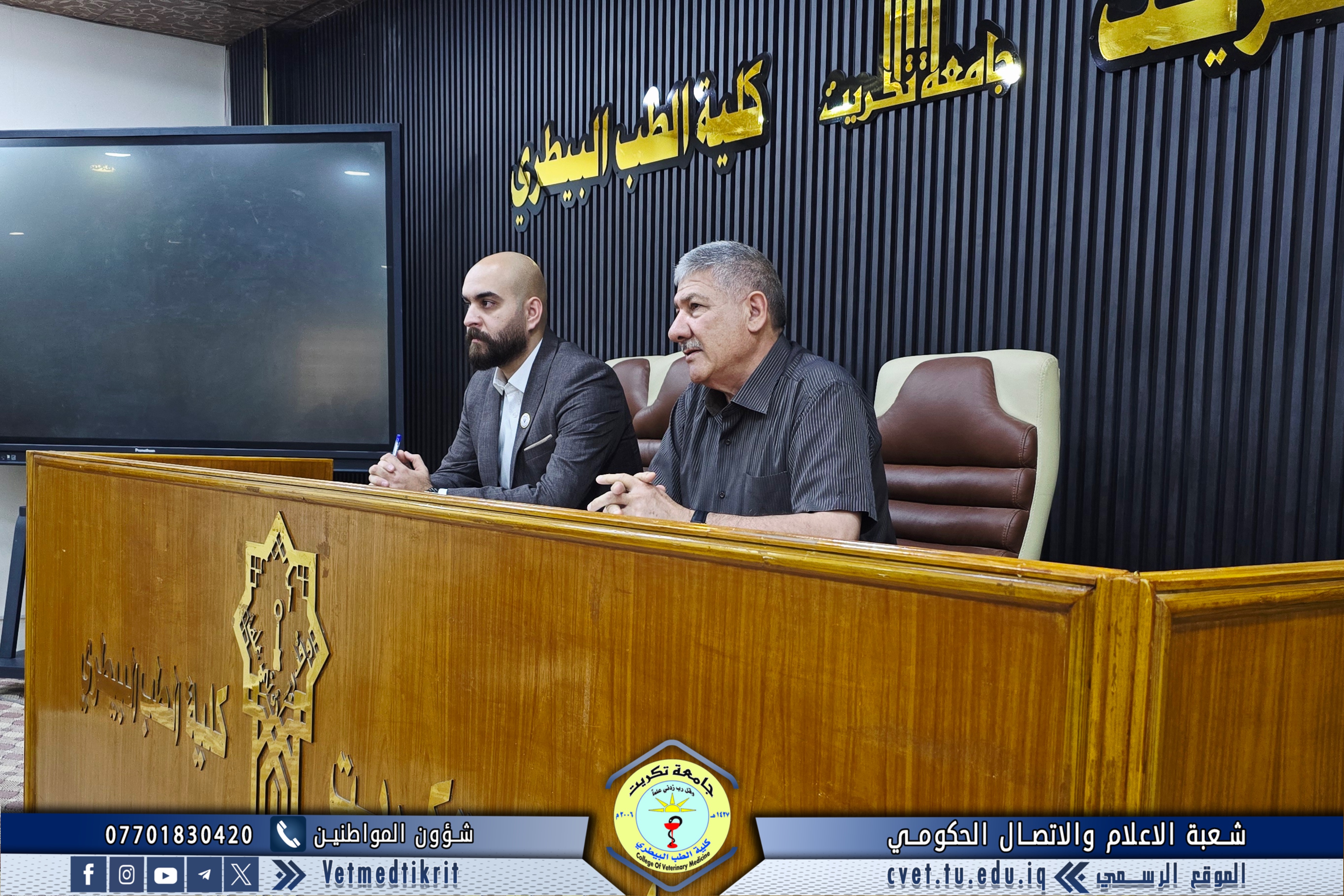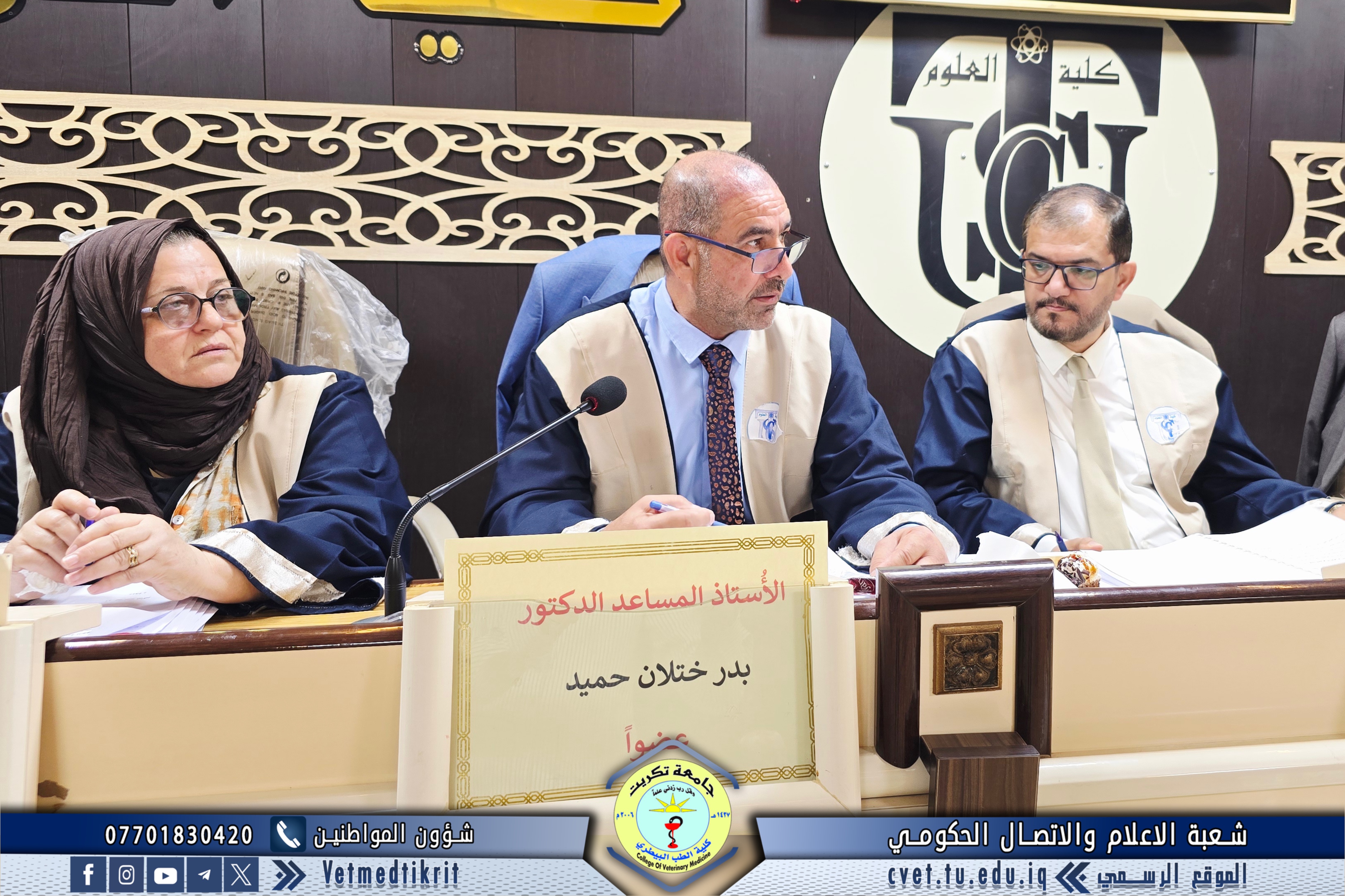 The College of Veterinary Medicine at the University of Tikrit welcomed the Ministerial Committee for Evaluating the Academic and Scientific Reality of the college. The committee was received by Prof. Dr. Bashar Sadiq Noami, Dean of the College; Asst. Prof. Dr. Montaser Mohammed Hilal, Associate Dean for Scientific Affairs; Asst. Prof. Dr. Osama Hamid Shihab, Associate Dean for Administrative Affairs; and Asst. Prof. Dr. Ahmed Abdullah Sultan, Director of the Quality Assurance and University Performance Division.