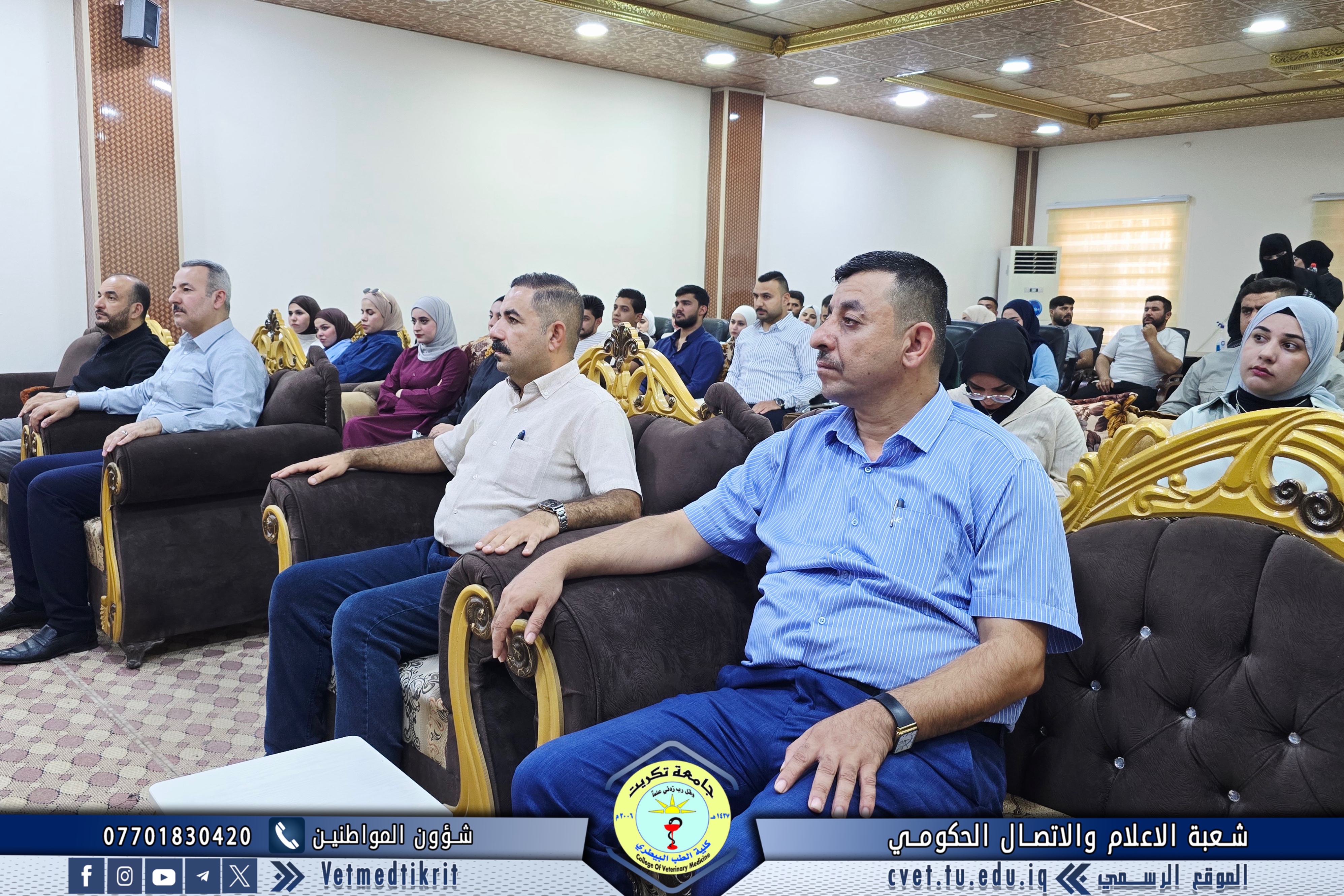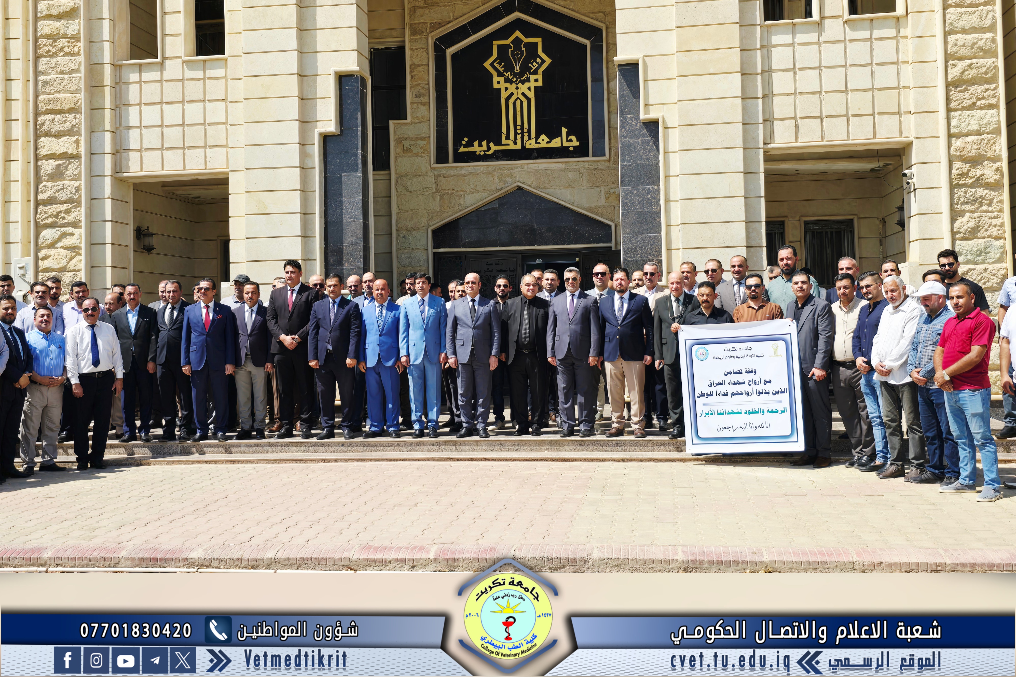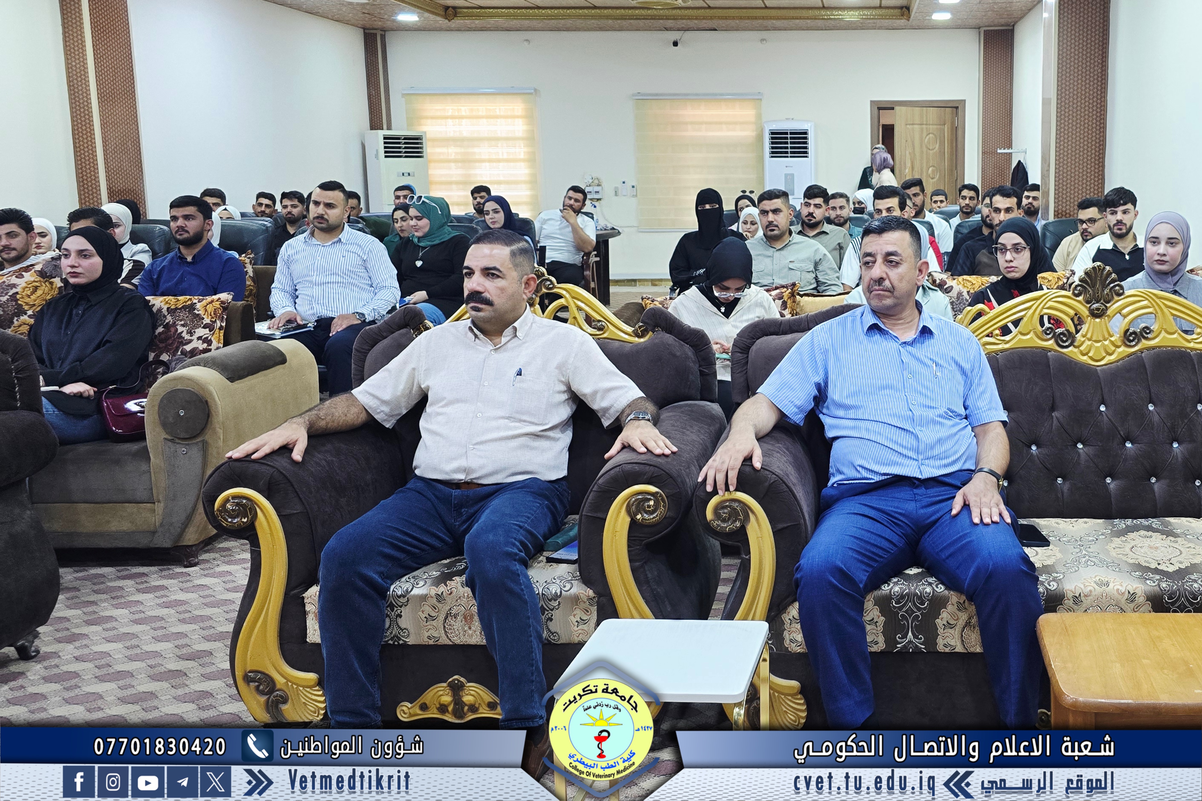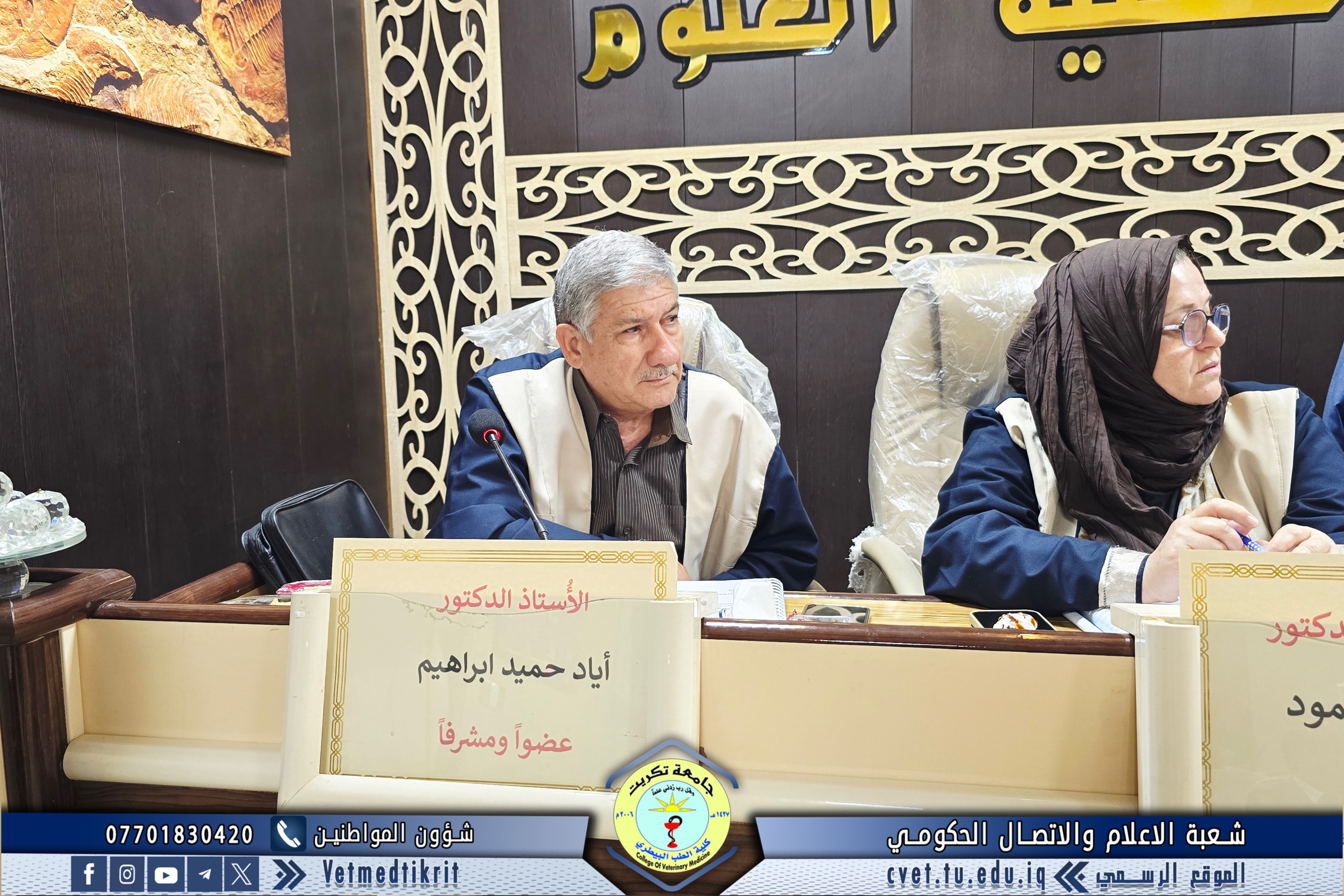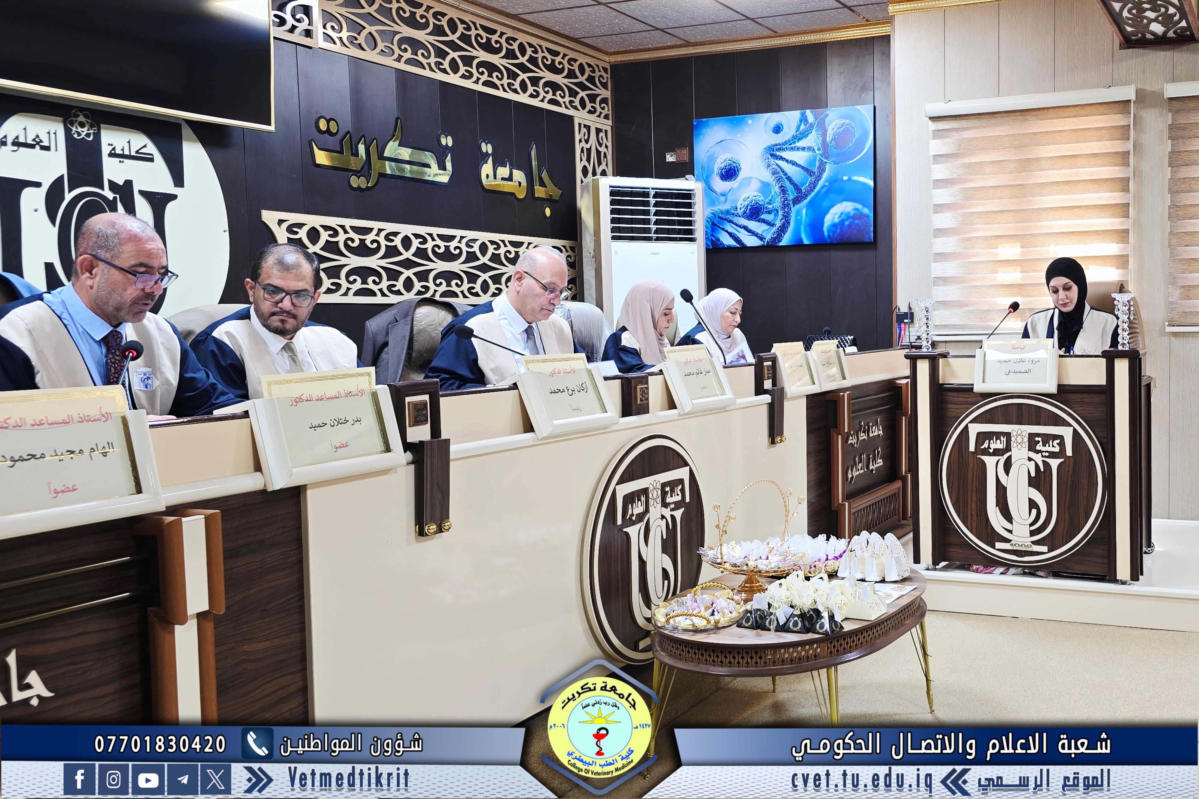 The College of Veterinary Medicine at the University of Tikrit welcomed the Ministerial Committee for Evaluating the Academic and Scientific Reality of the college. The committee was received by Prof. Dr. Bashar Sadiq Noami, Dean of the College; Asst. Prof. Dr. Montaser Mohammed Hilal, Associate Dean for Scientific Affairs; Asst. Prof. Dr. Osama Hamid Shihab, Associate Dean for Administrative Affairs; and Asst. Prof. Dr. Ahmed Abdullah Sultan, Director of the Quality Assurance and University Performance Division.