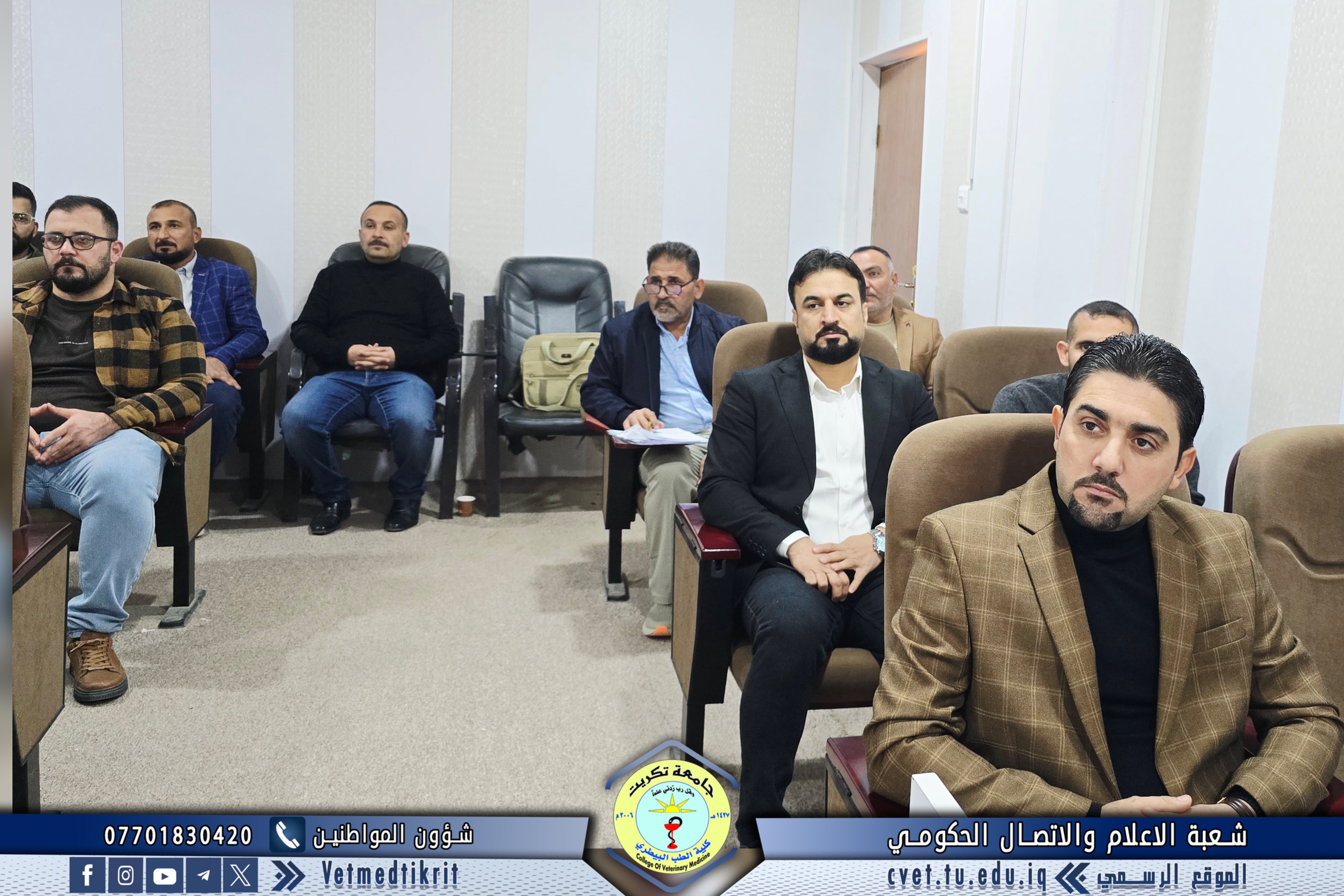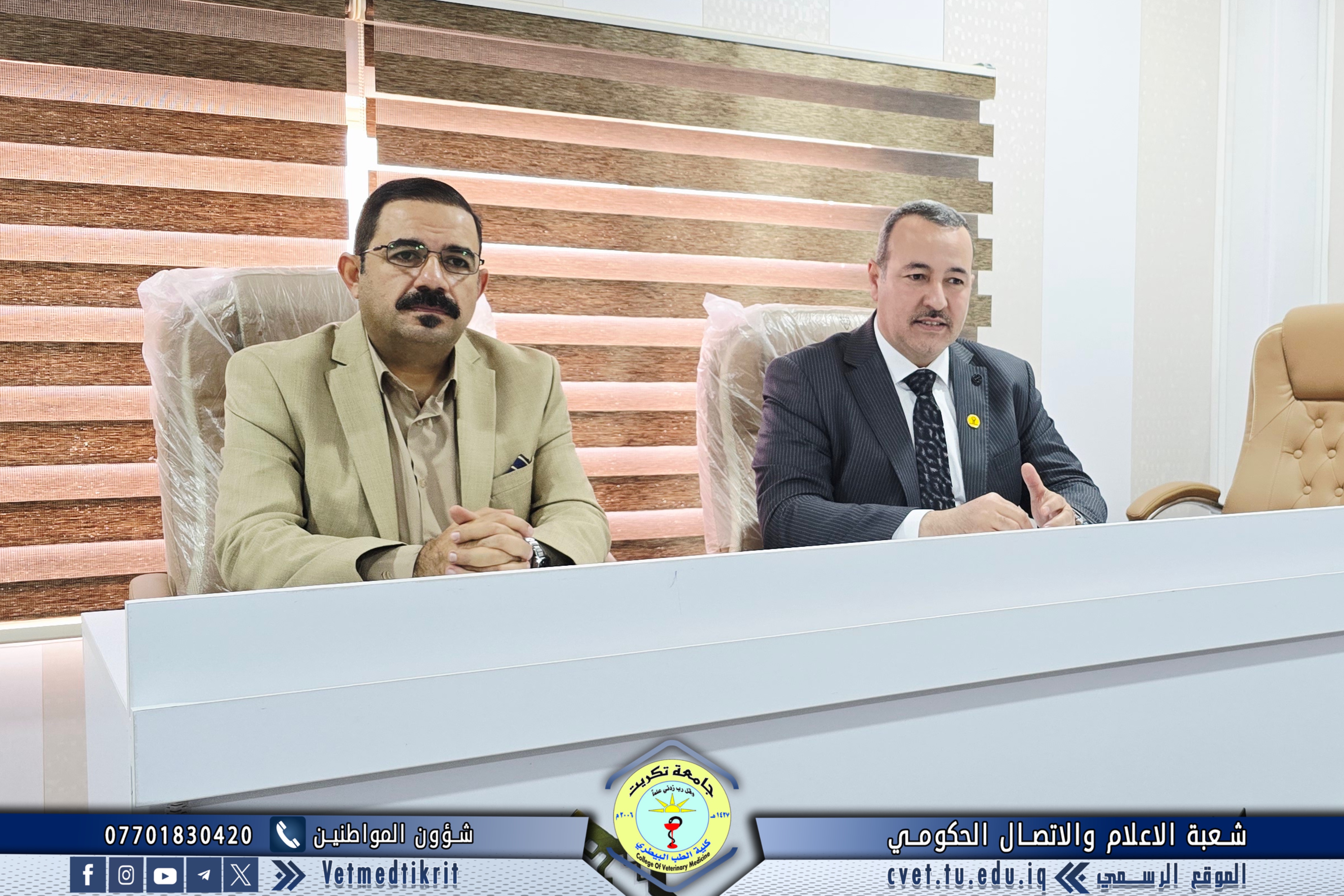 The Administration of the College of Veterinary Medicine at the University of Tikrit held an extensive meeting chaired by Prof. Dr. Bashar Sadiq Noami, Dean of the College, and attended by Asst. Prof. Dr. Montasir Mohammed Hilal, Associate Dean for Scientific Affairs, along with the heads and members of the committees responsible for completing the college’s institutional accreditation requirements.