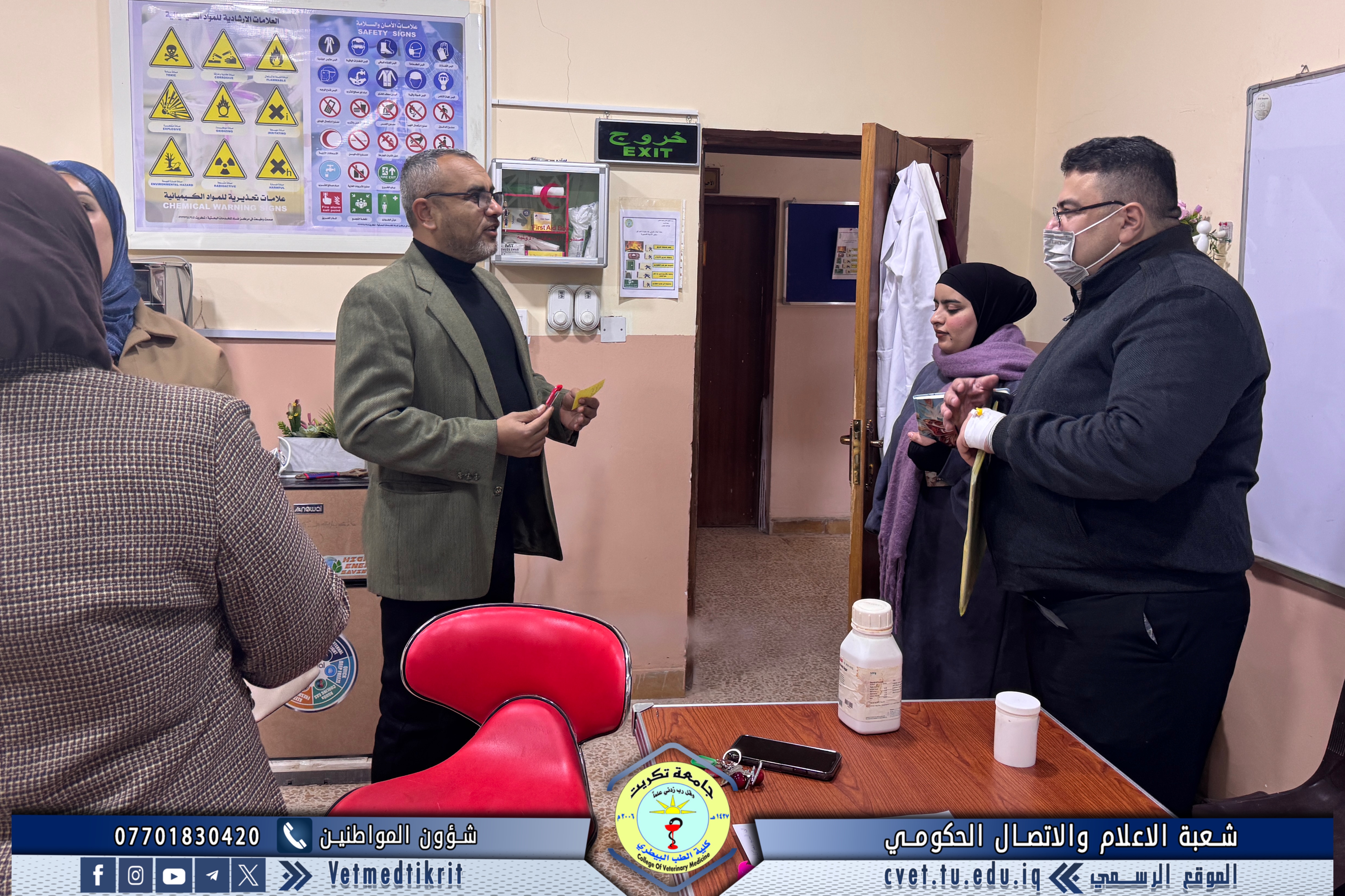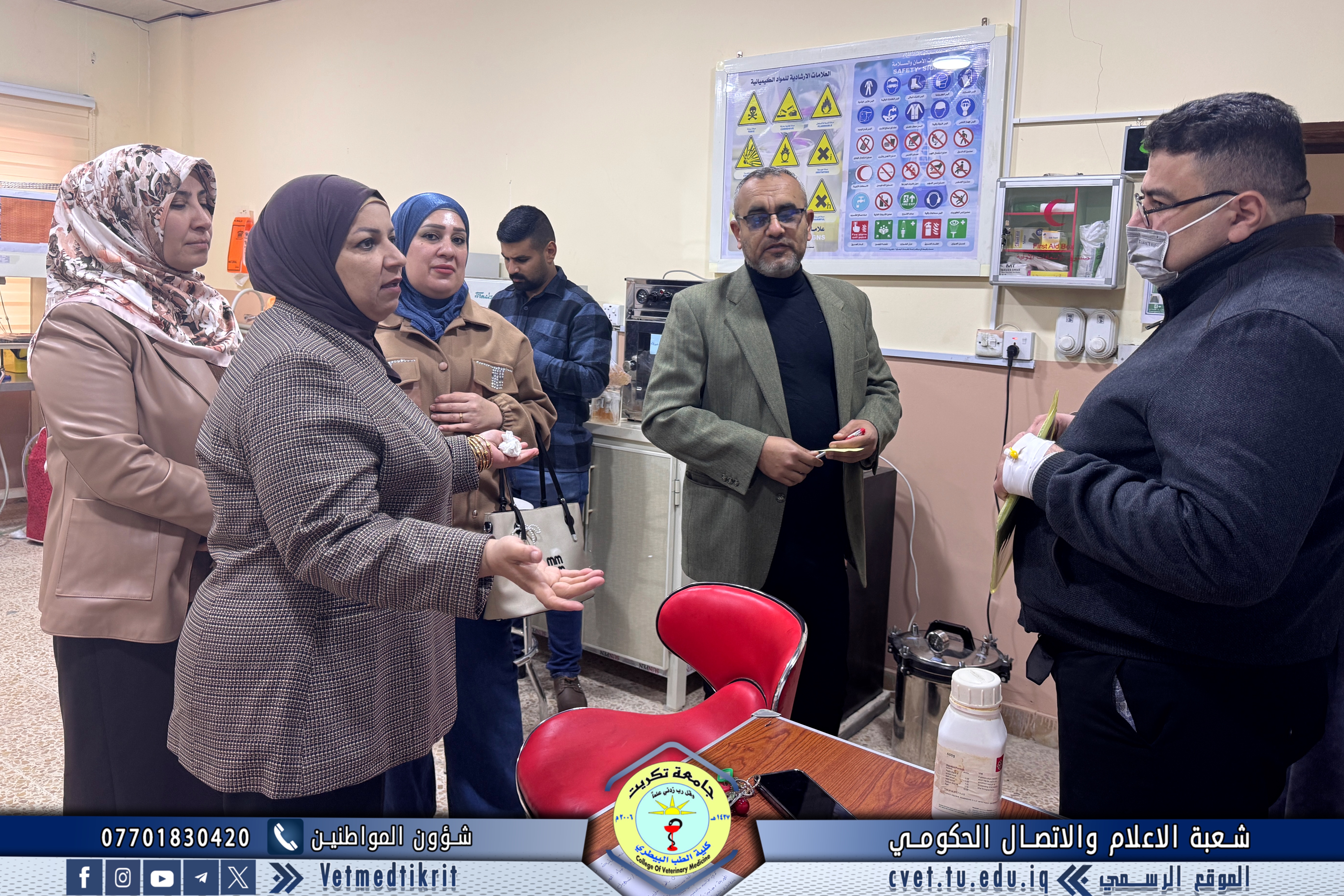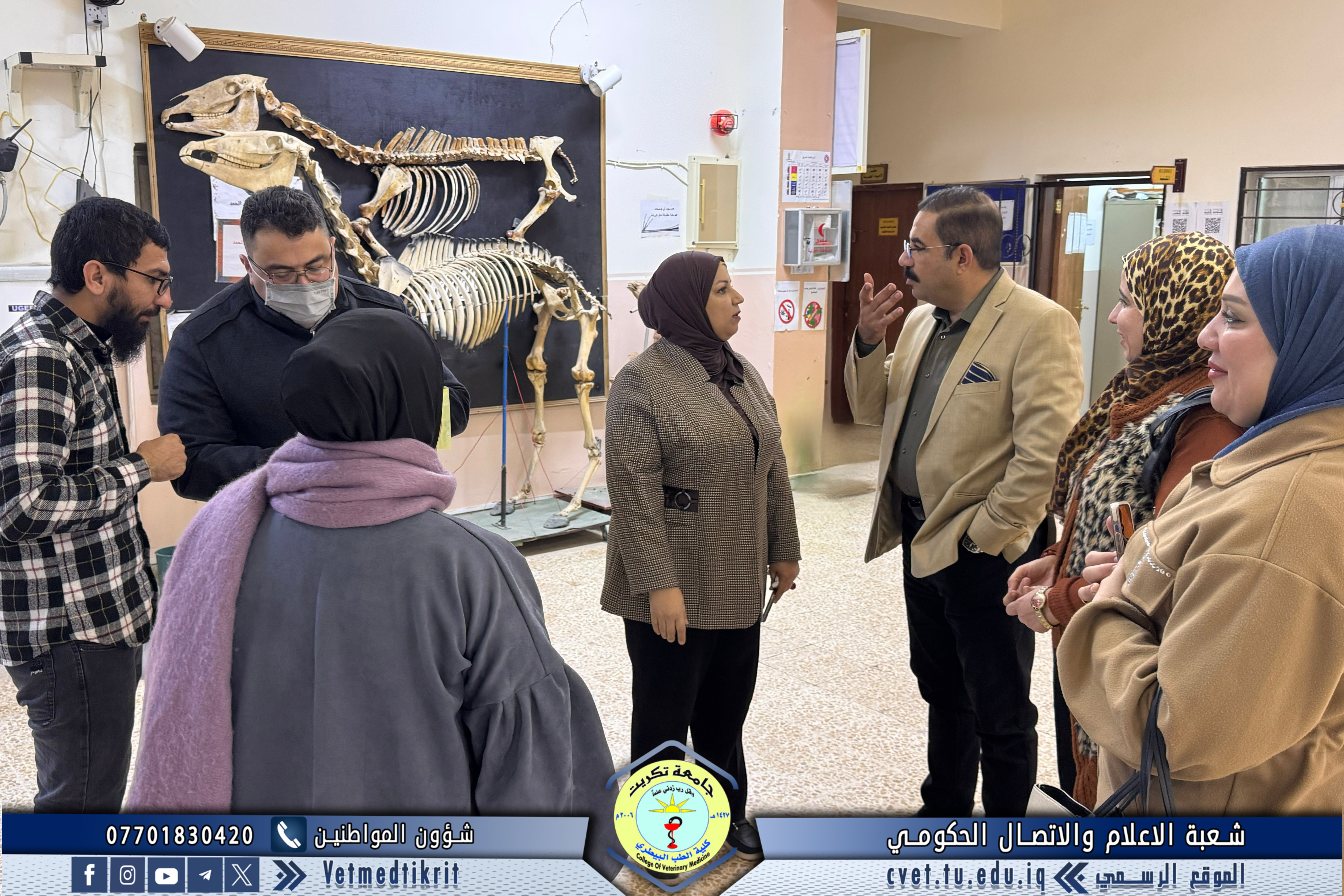 The College of Veterinary Medicine at the University of Tikrit welcomed a committee from the Internal Audit and Control Department at the University Presidency, where they were received by the College’s Assistant Dean for Scientific Affairs, Assistant Professor Dr. Muntaser Mohammed Hilal.