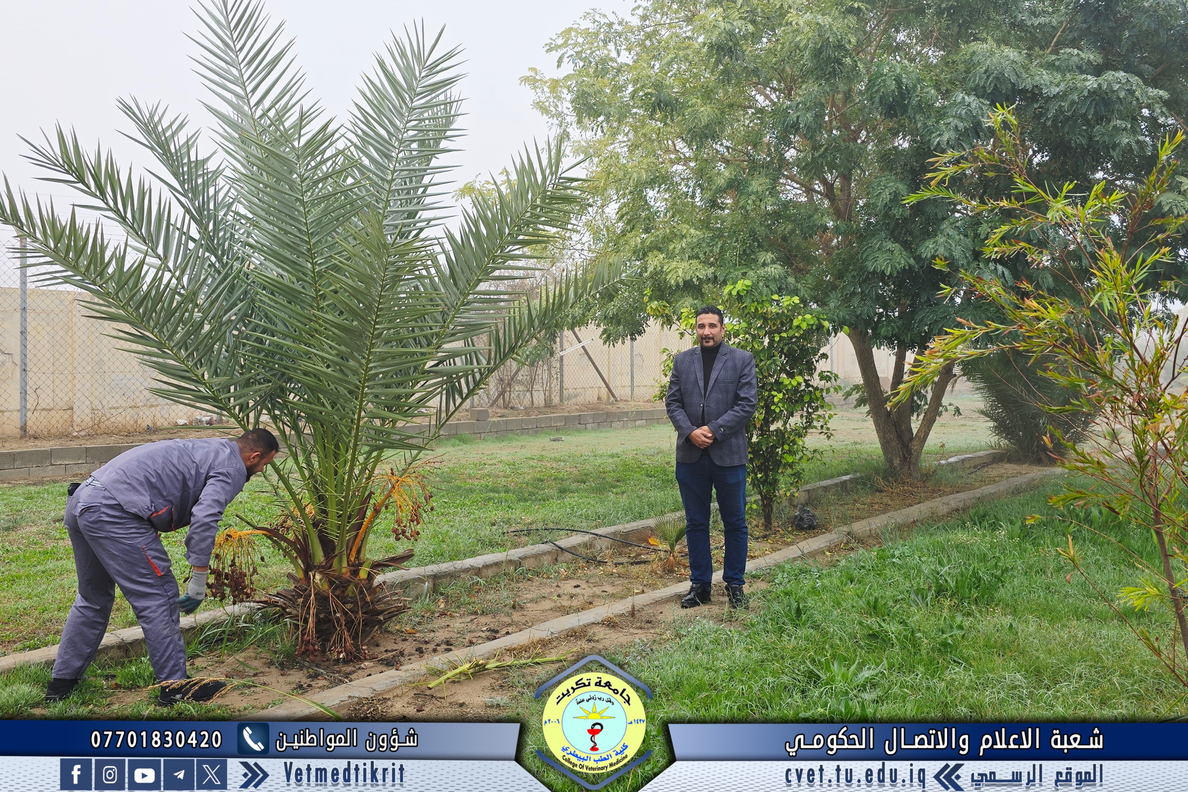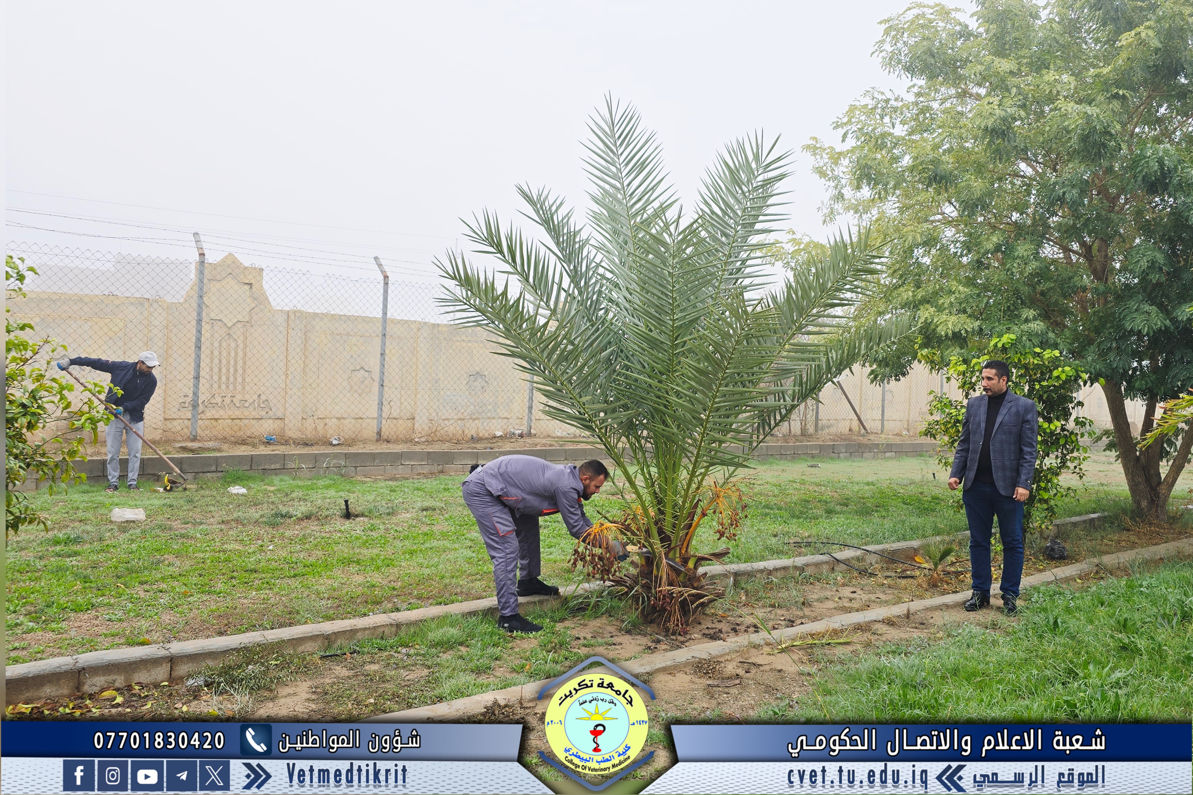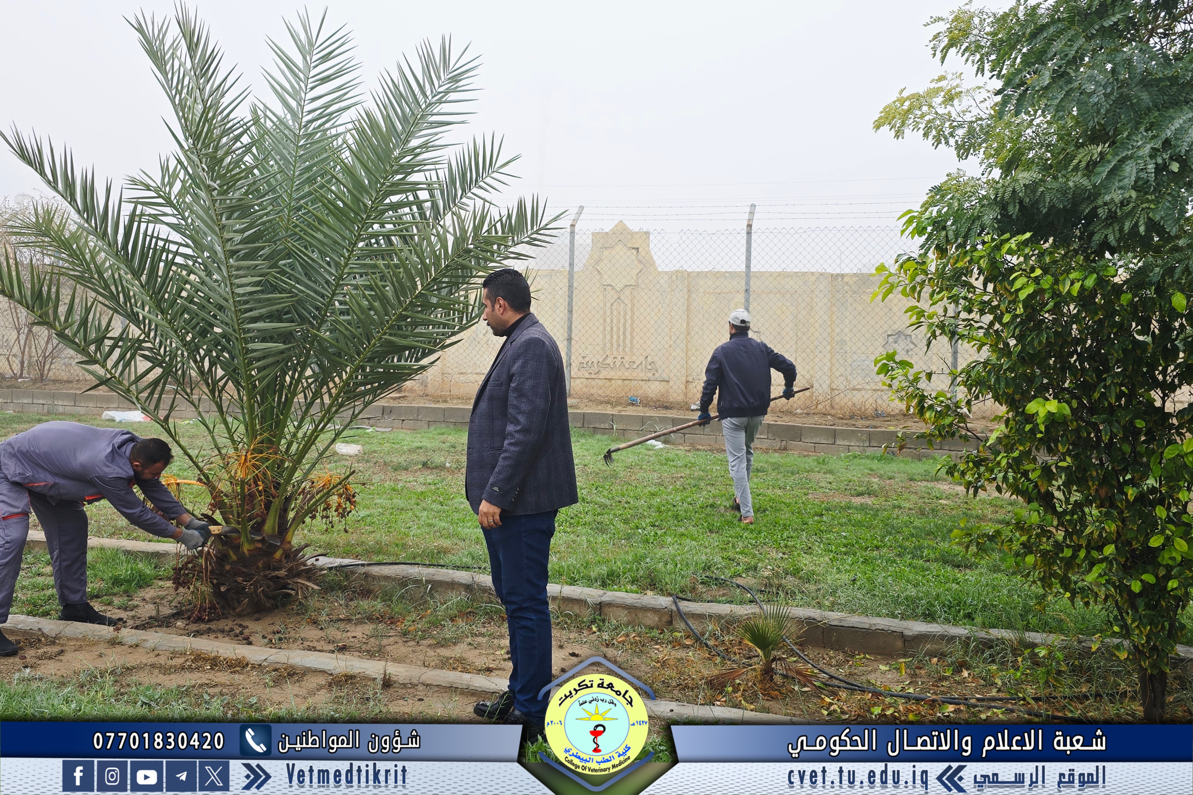 As part of the efforts of the College of Veterinary Medicine at the University of Tikrit to enhance the university environment and preserve the aesthetic appearance of the campus, the Gardens and Services Division implemented a comprehensive campaign to maintain and service the College’s outdoor gardens.