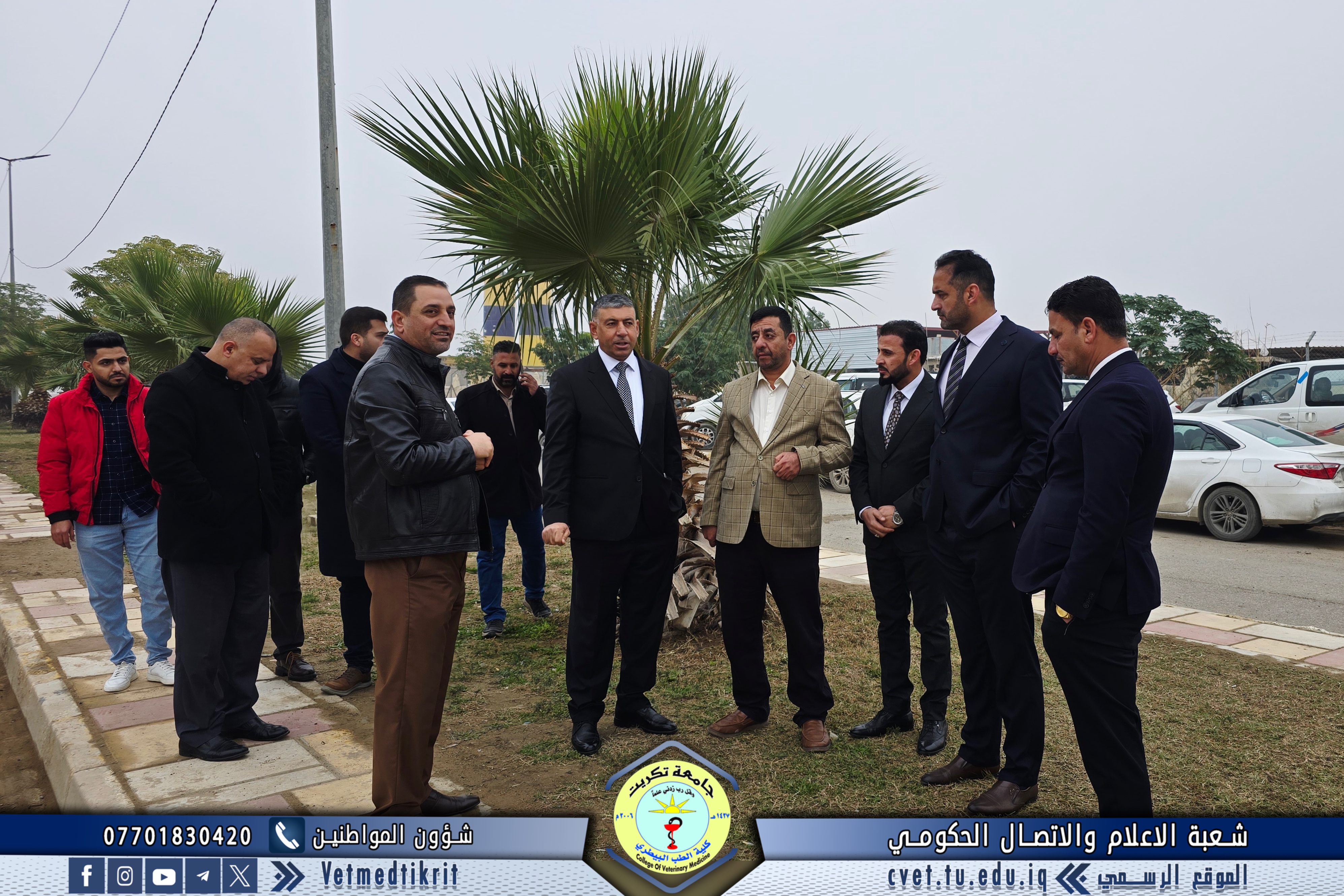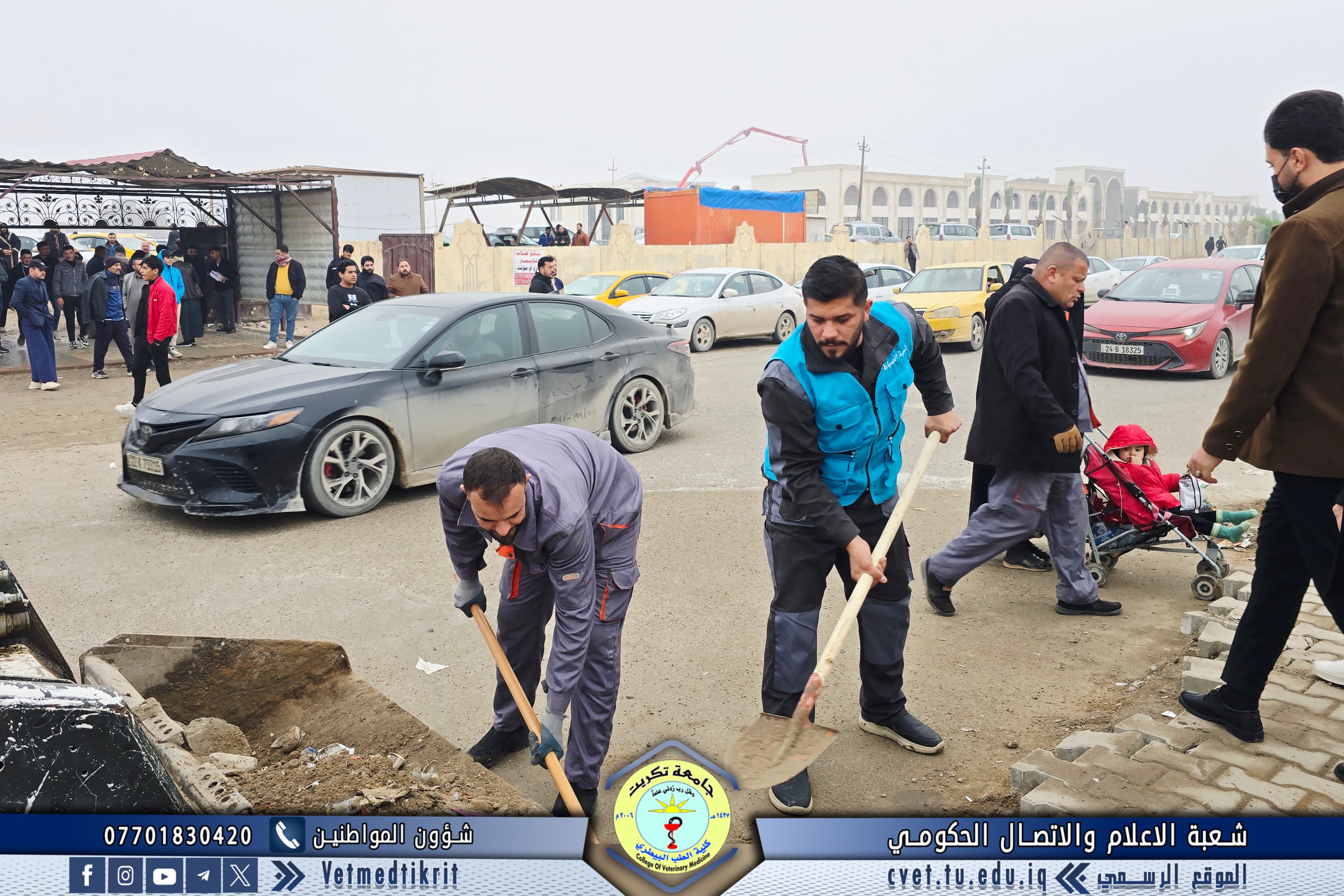 The Gardens and Services Division at the College of Veterinary Medicine, University of Tikrit, took part in a large-scale campaign to clean the main and secondary streets within the university campus. The campaign was carried out under the supervision of Professor Dr. Waed Mahmoud Raouf, President of the University of Tikrit, and Professor Dr. Hamed Mohammed Saleh, Assistant President of the University for Administrative Affairs.
