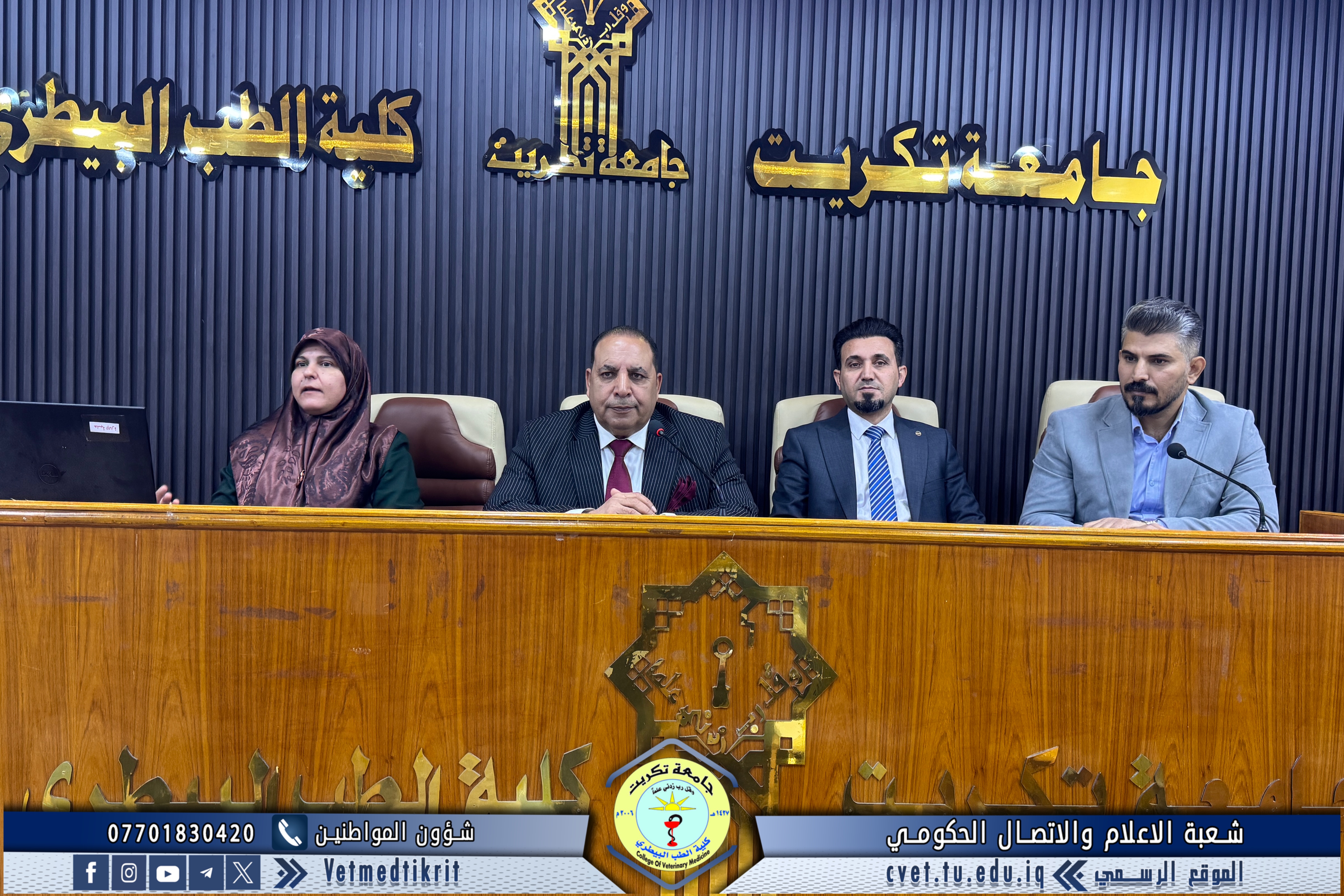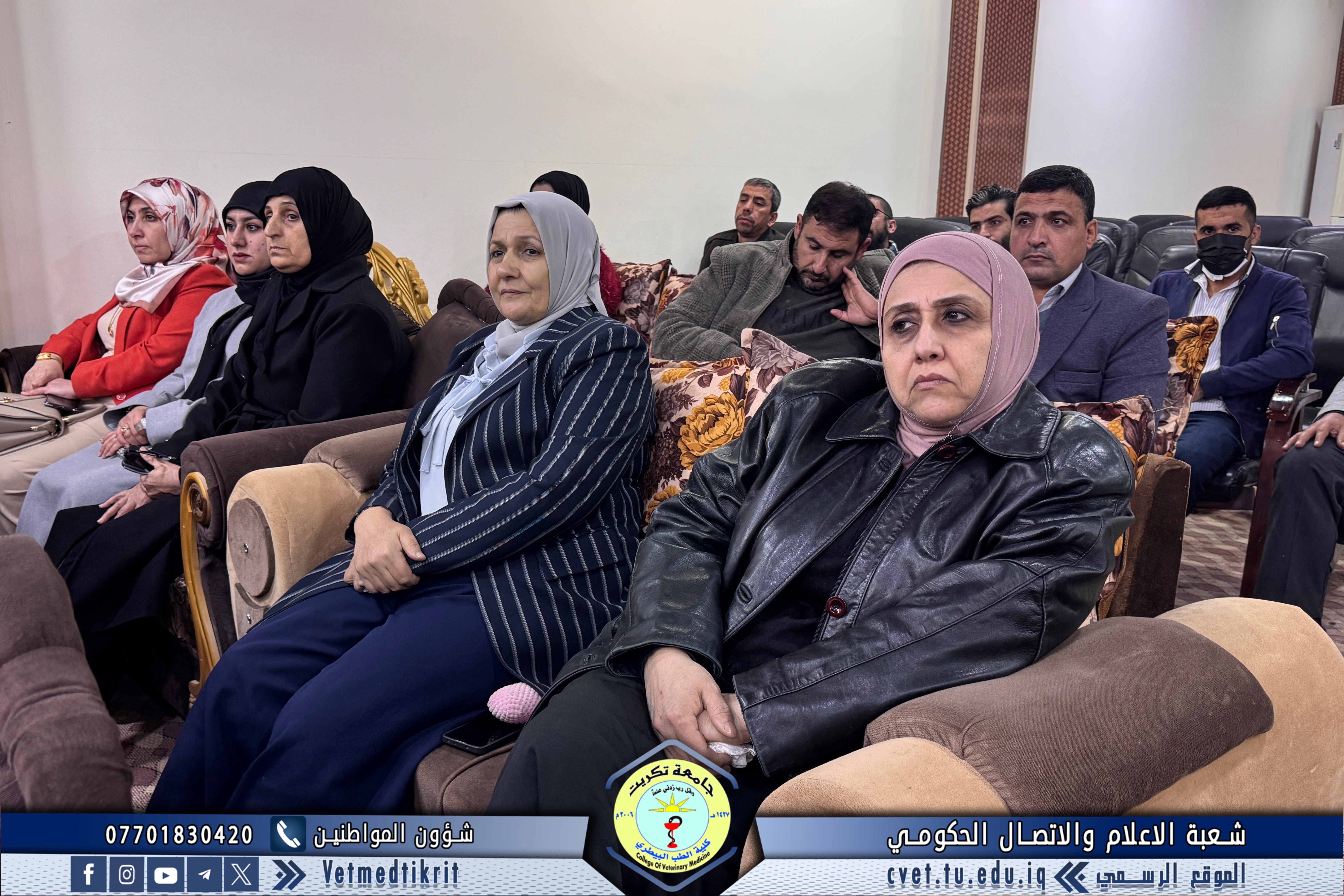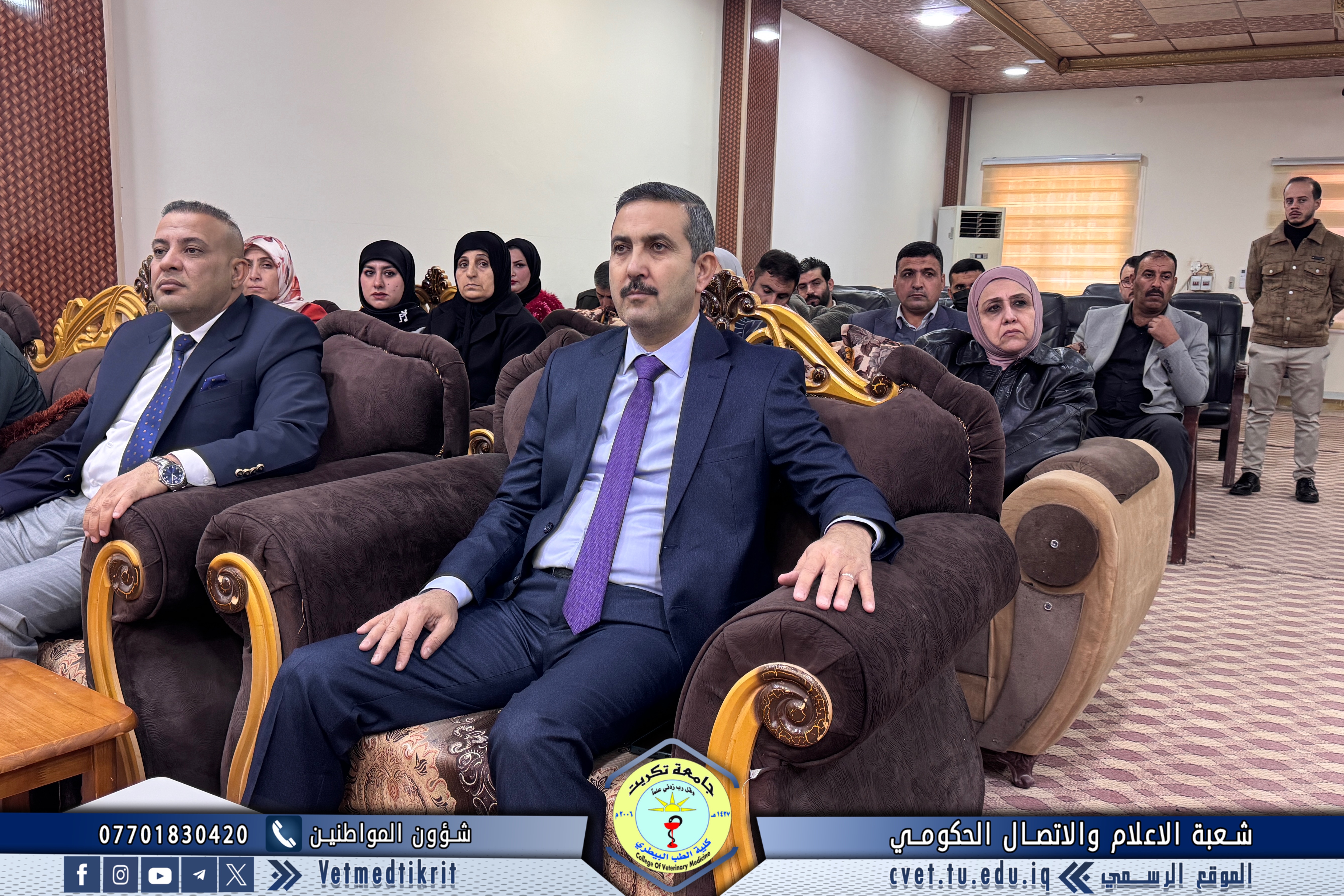 The College of Veterinary Medicine at the University of Tikrit hosted an academic awareness seminar entitled “The Academics’ Syndicate: A Pillar for Building the Academic Future”, in cooperation with the Iraqi Academics’ Syndicate – Salah Al-Din Branch. The seminar was held in Dr. Muhannad Maher Hall at the college and was attended by a number of faculty members.
