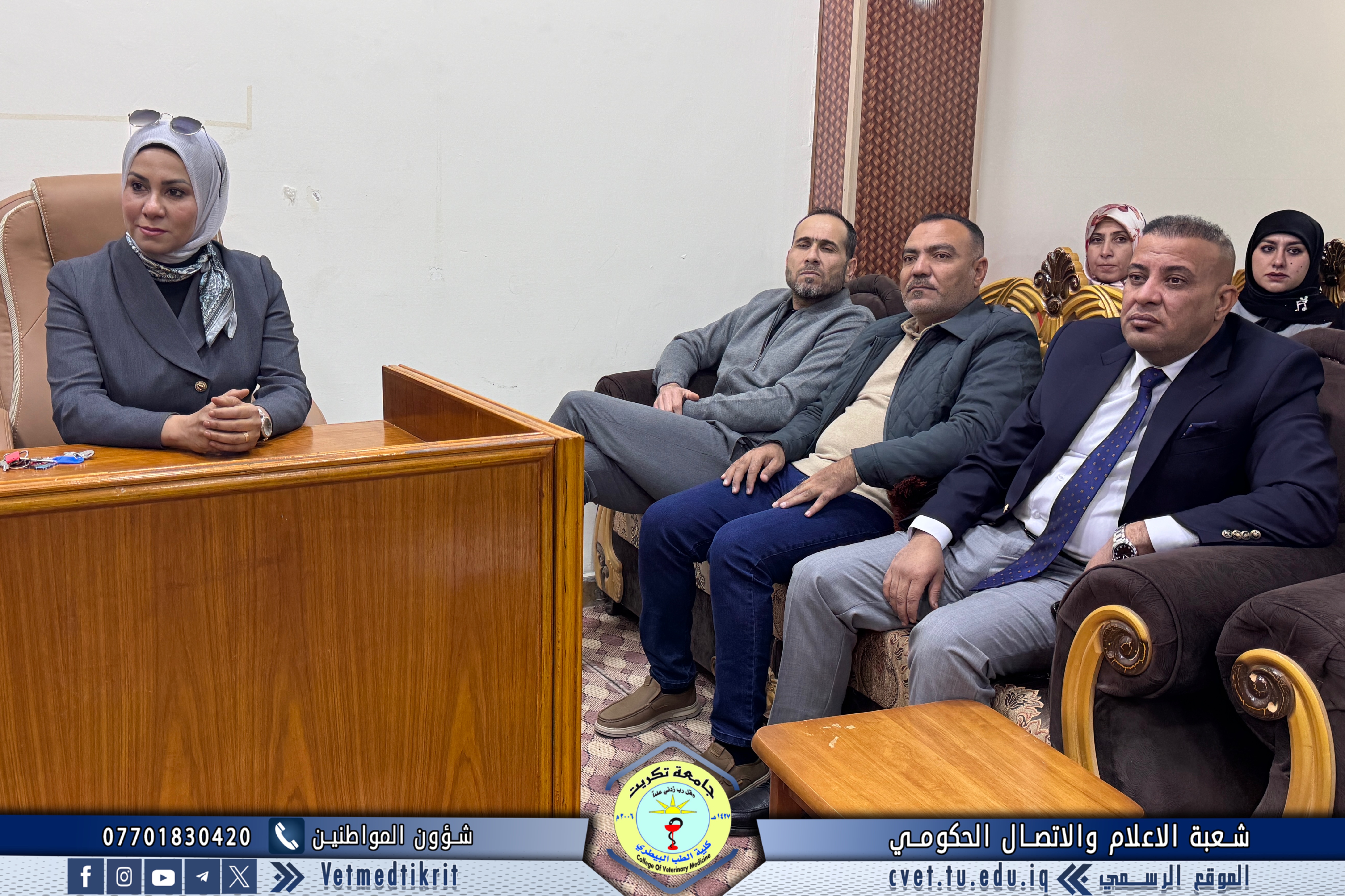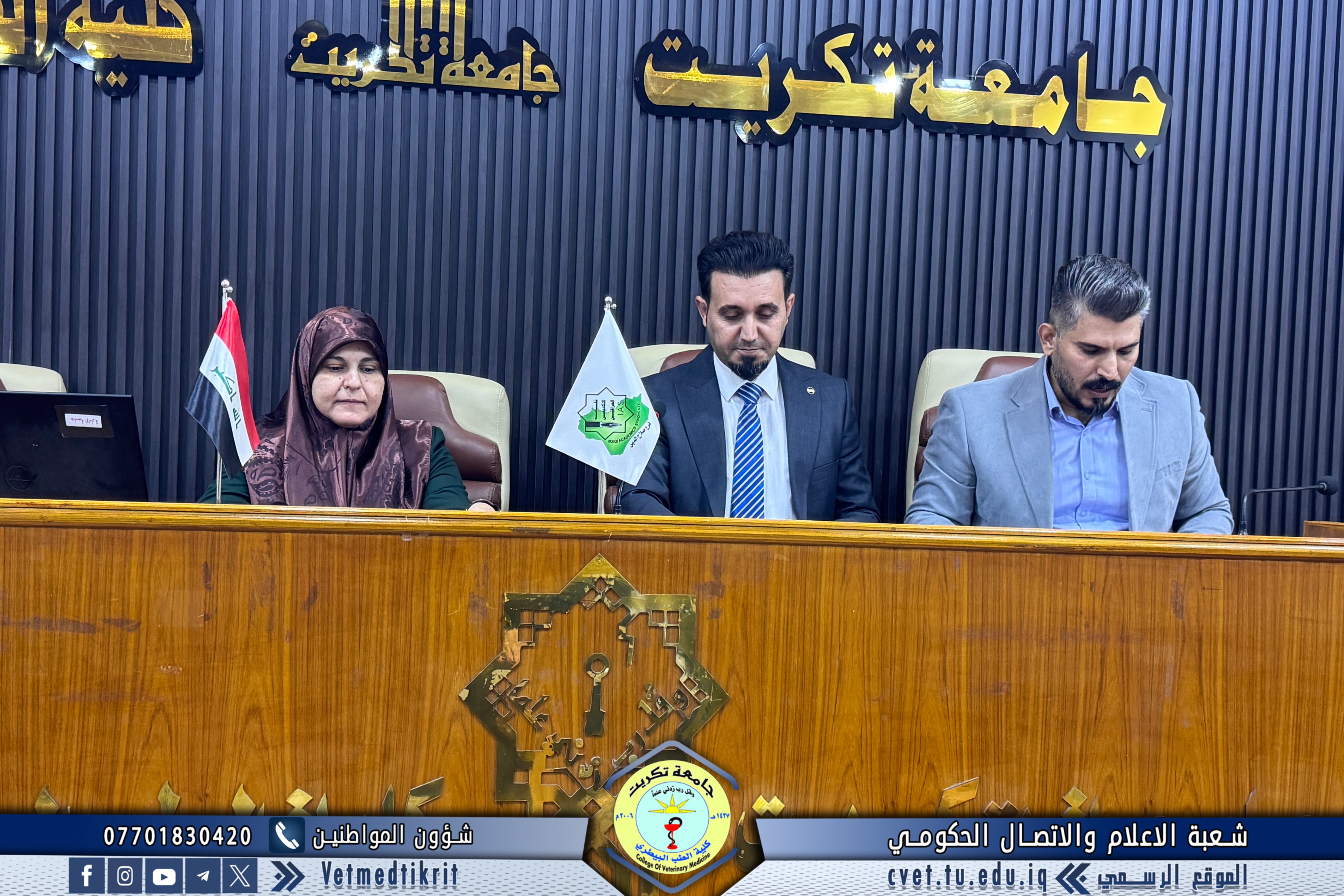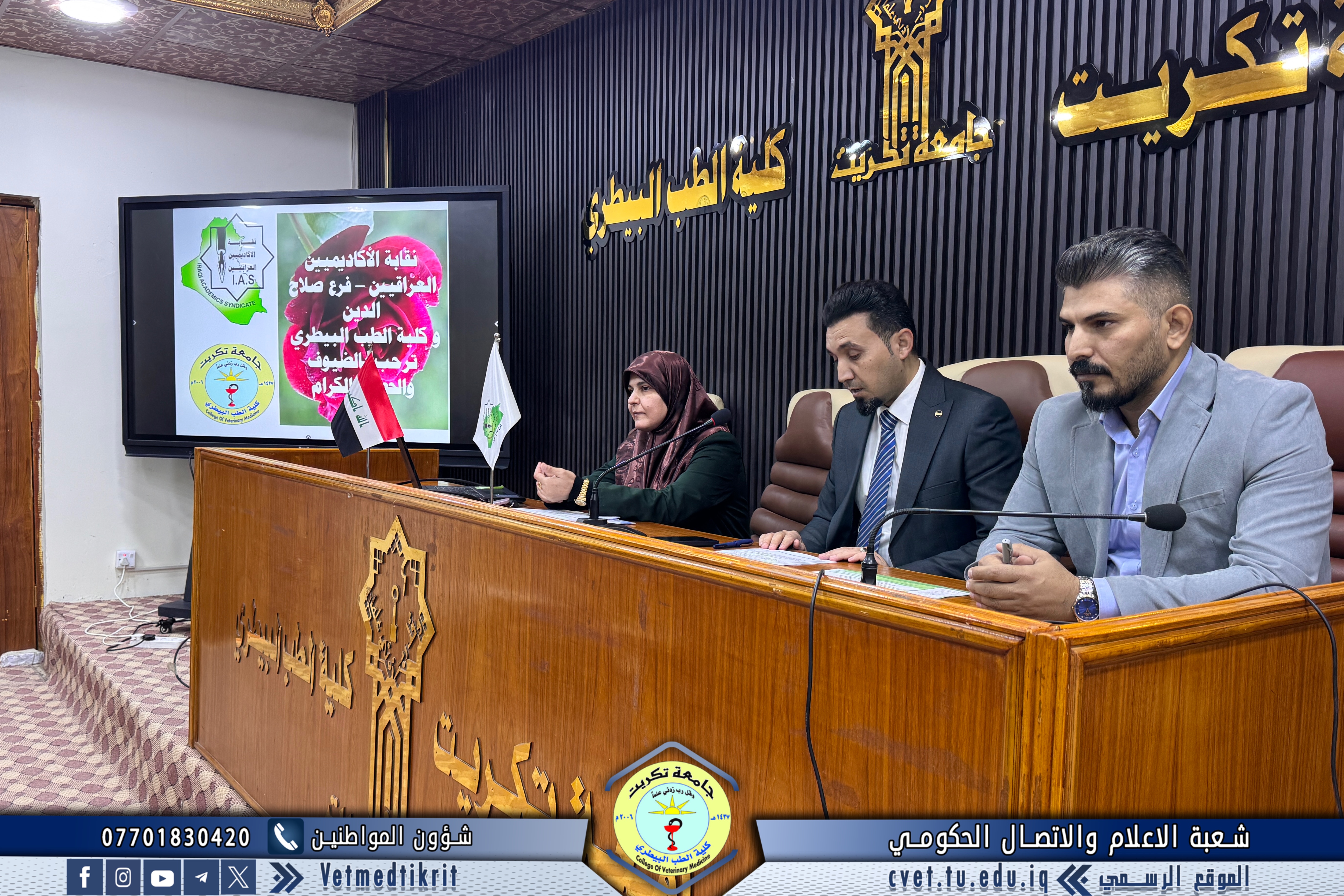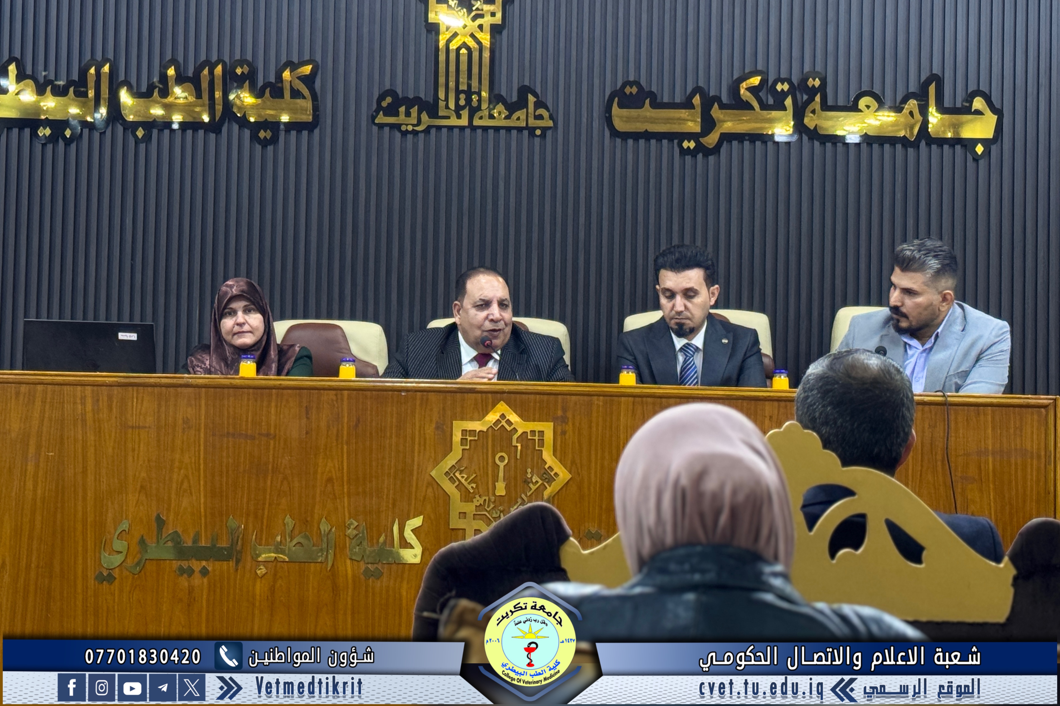 The College of Veterinary Medicine at the University of Tikrit hosted an academic awareness seminar entitled “The Academics’ Syndicate: A Pillar for Building the Academic Future”, in cooperation with the Iraqi Academics’ Syndicate – Salah Al-Din Branch. The seminar was held in Dr. Muhannad Maher Hall at the college and was attended by a number of faculty members.