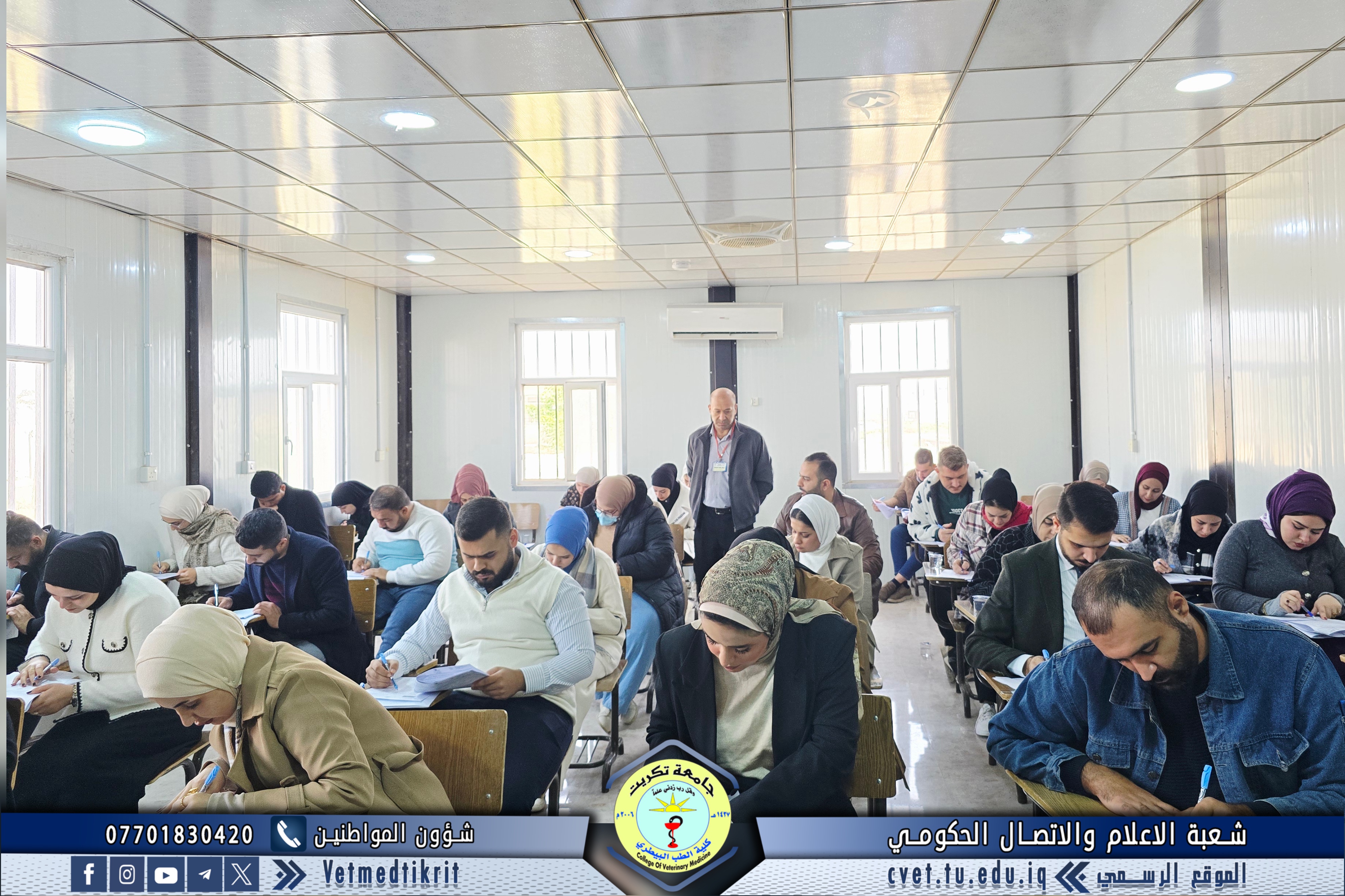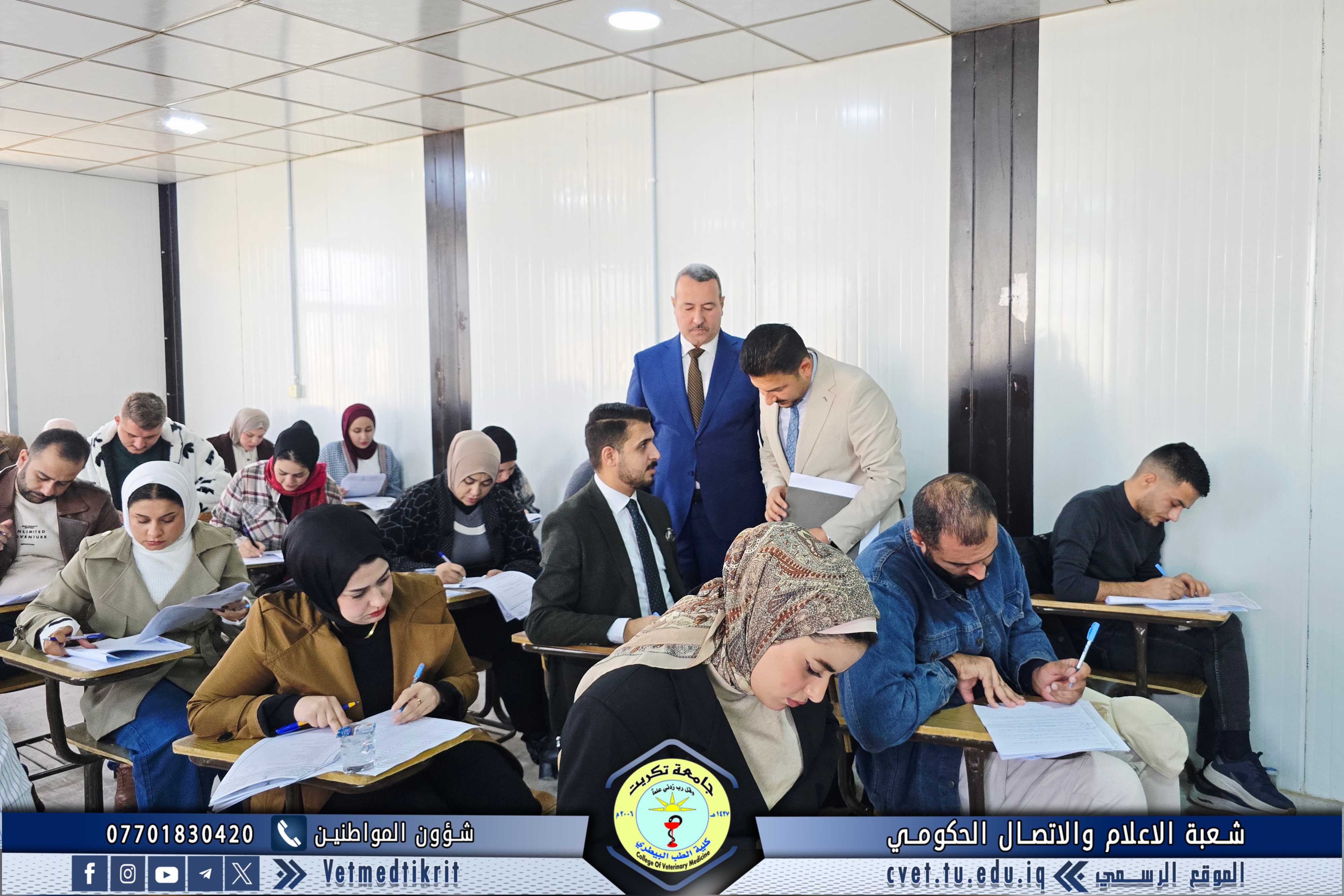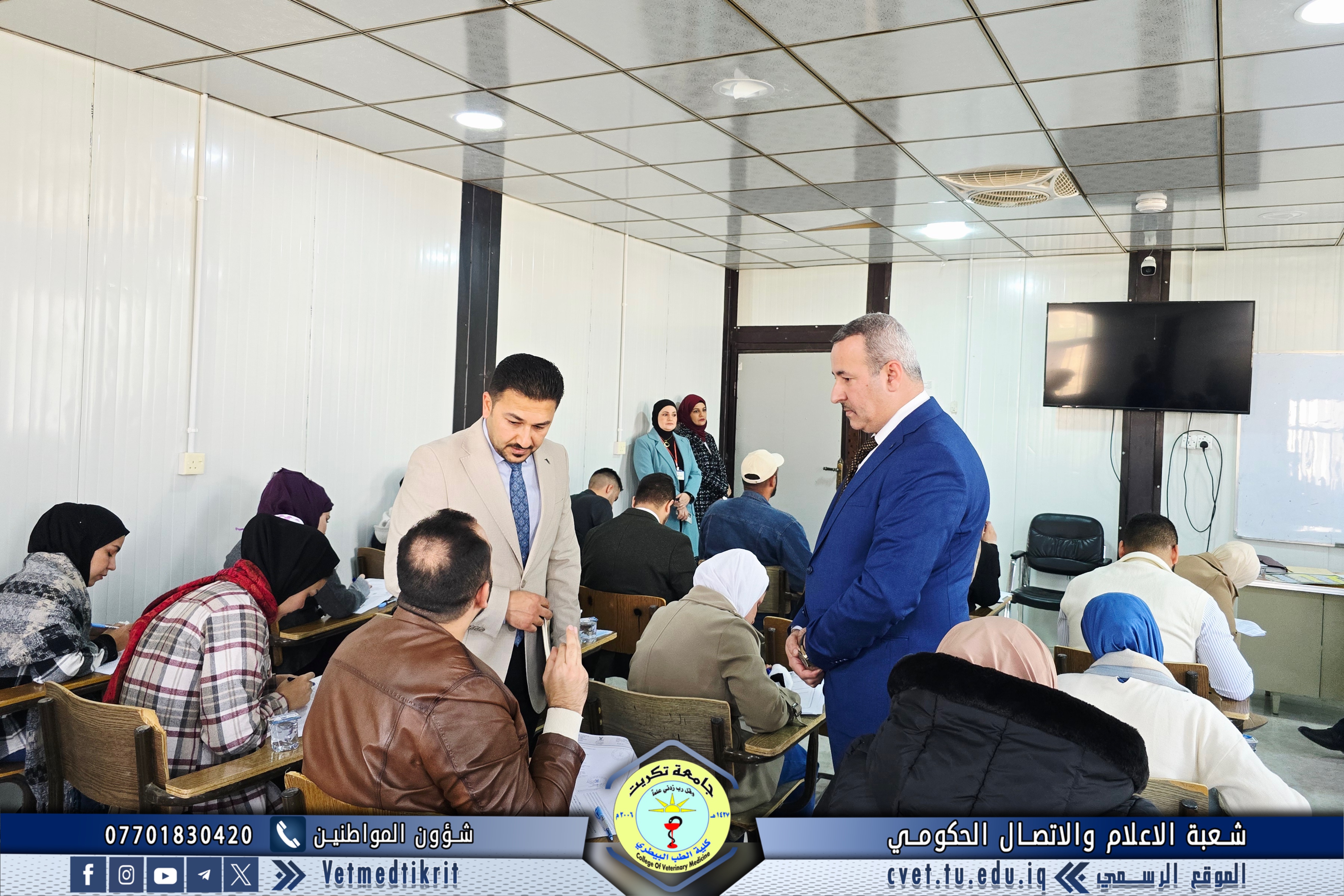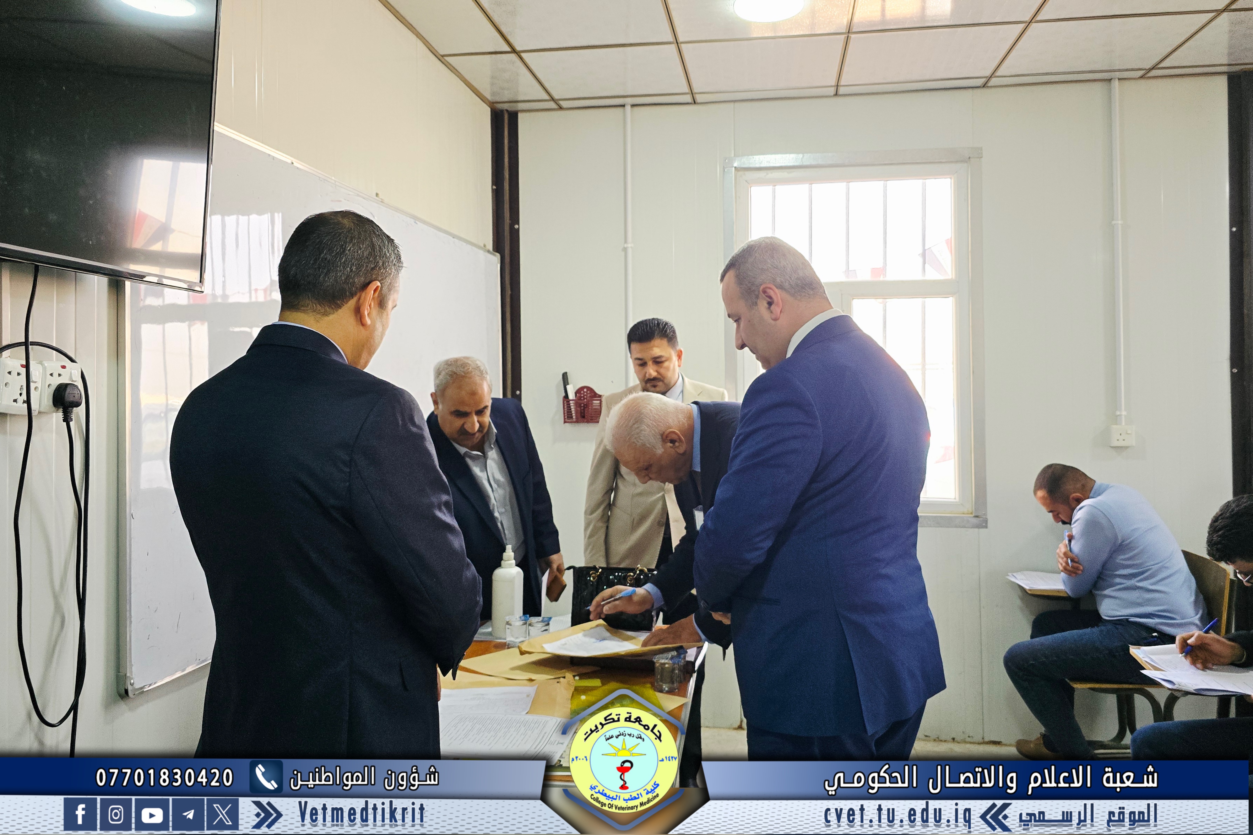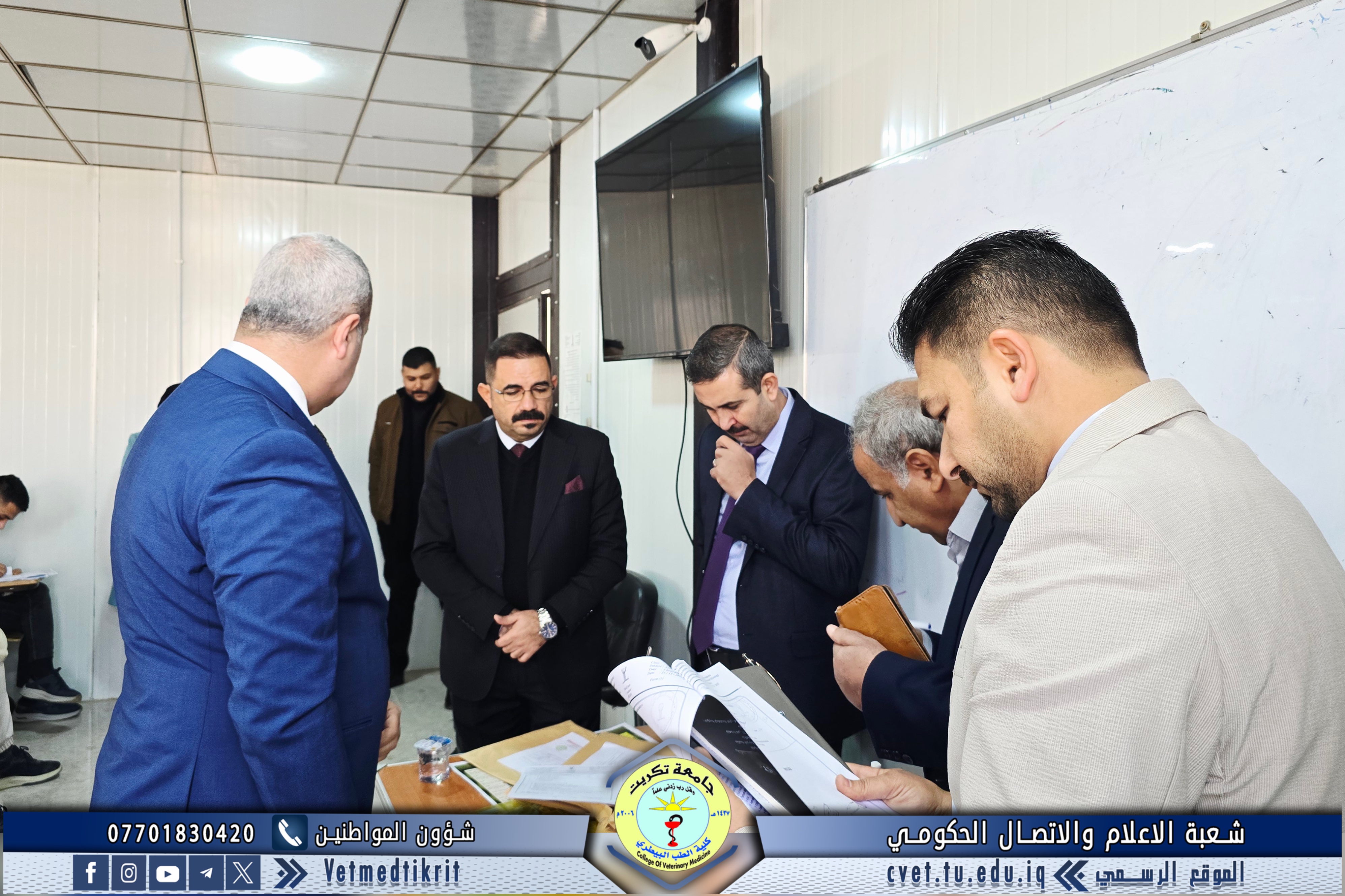 A university committee from the Presidency of the University of Tikrit visited the College of Veterinary Medicine to follow up on the progress of the final examinations for the first semester of the academic year 2025–2026. This visit comes as part of the university’s commitment to ensuring the smooth conduct of the examination process and adherence to approved regulations and instructions.