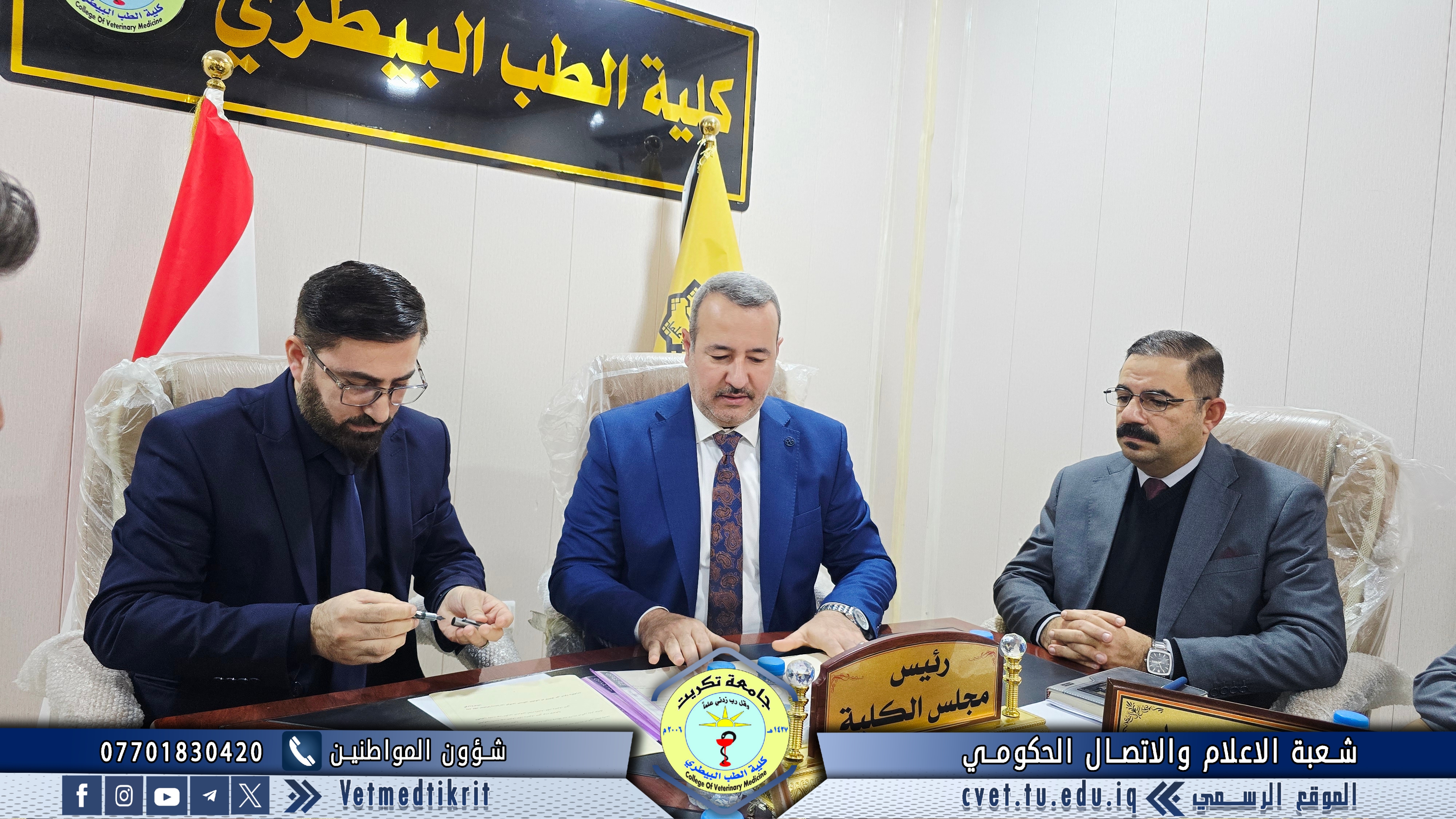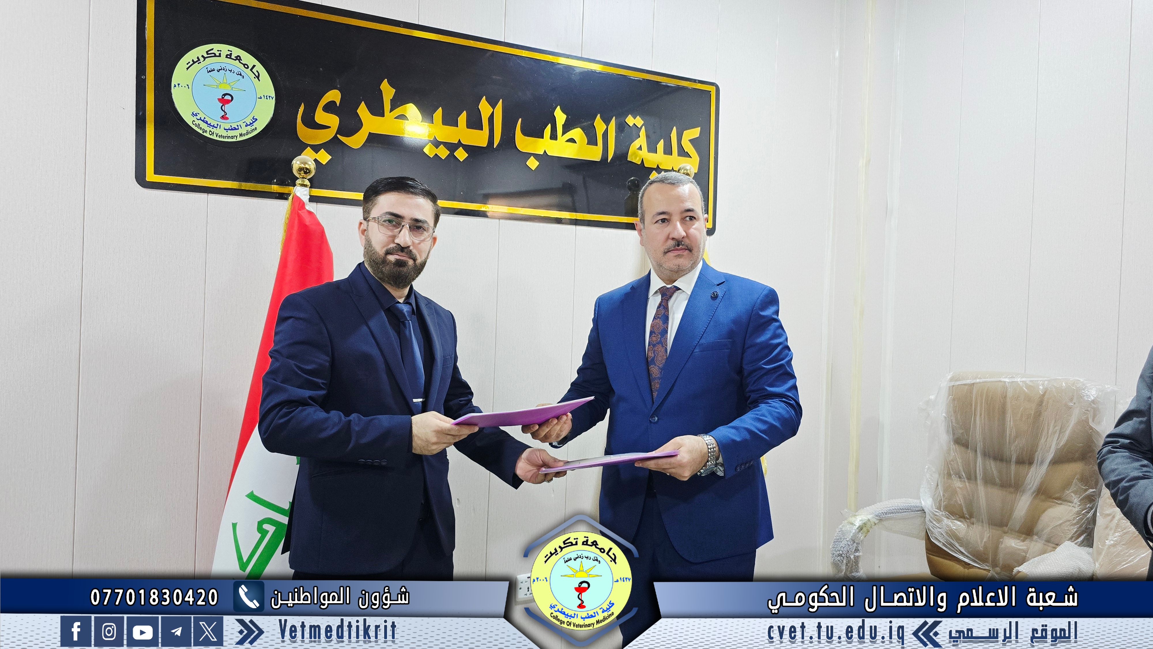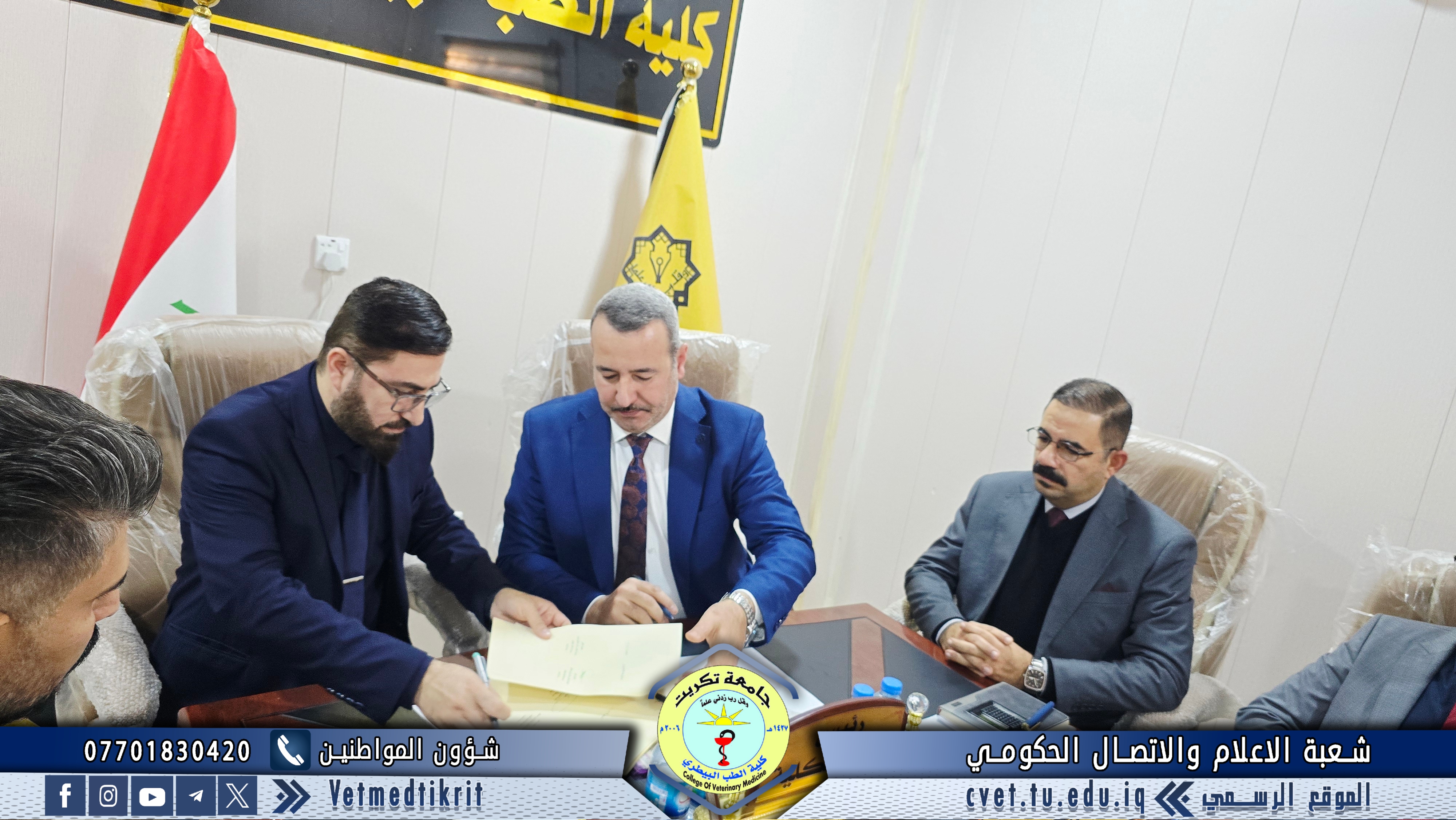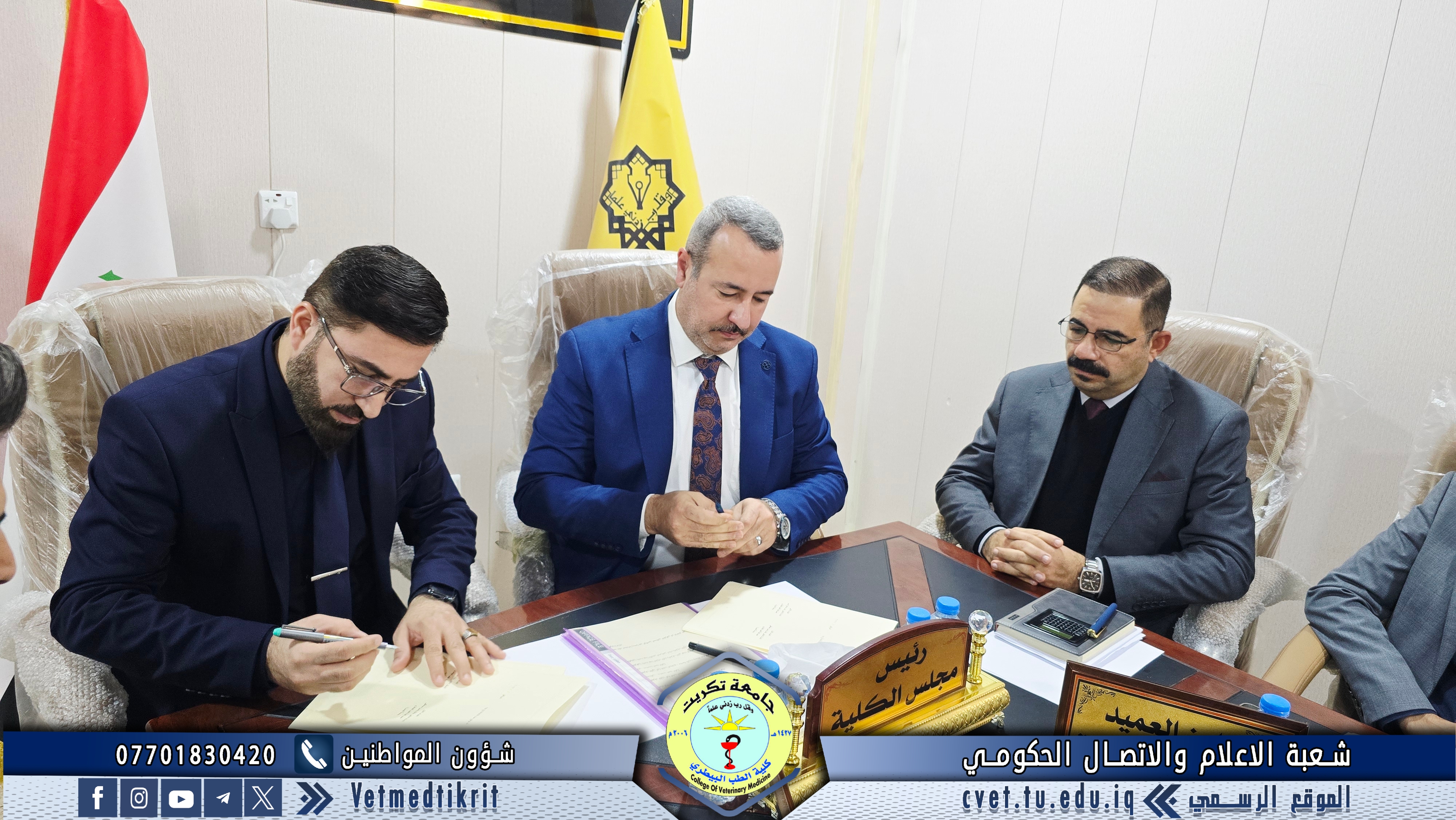 The College of Veterinary Medicine at the University of Tikrit has concluded a joint scientific cooperation agreement with the College of Veterinary Medicine at the University of Basrah, within the framework of strengthening academic and scientific collaboration among Iraqi universities and exchanging expertise in a manner that contributes to the development of the educational and research process.