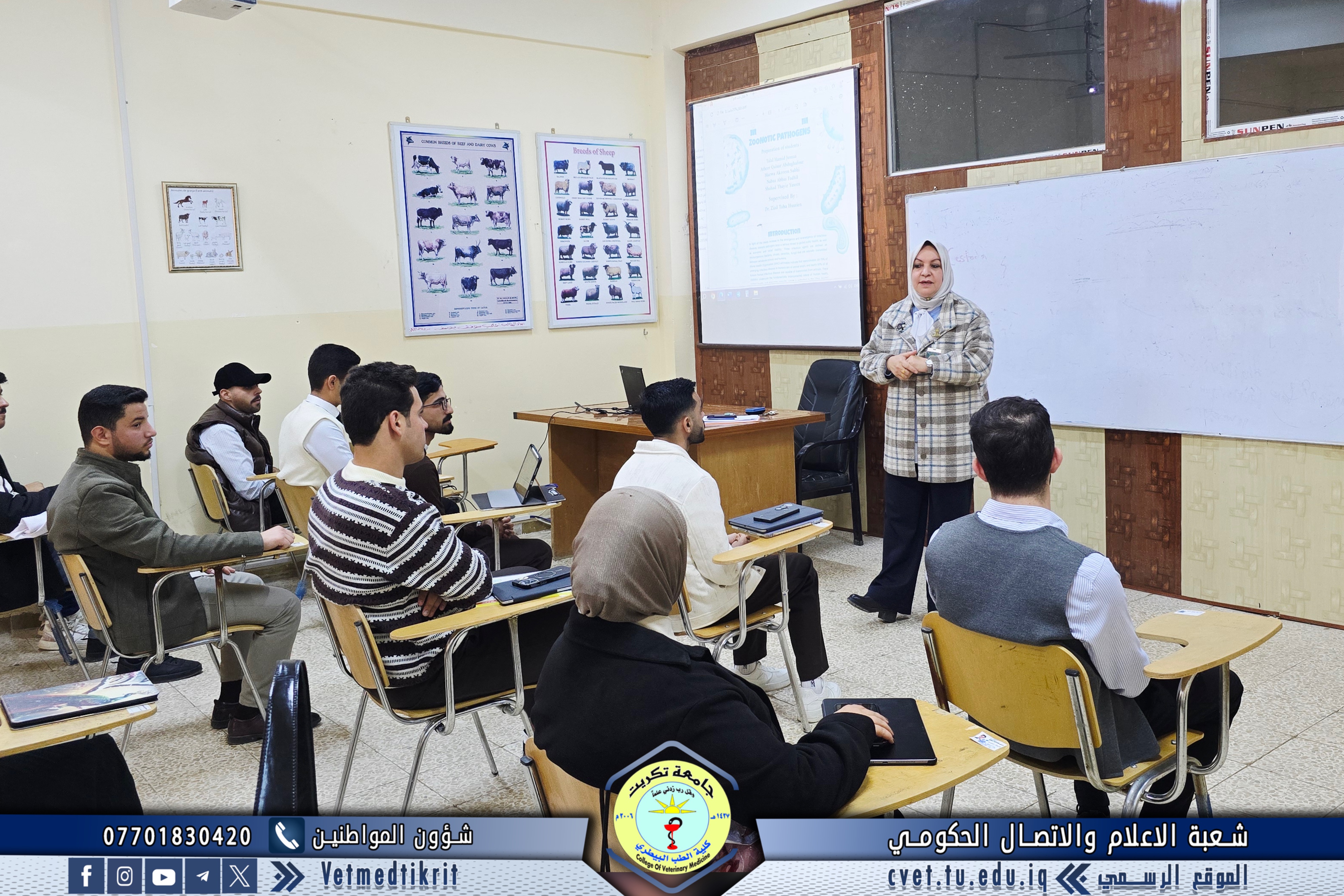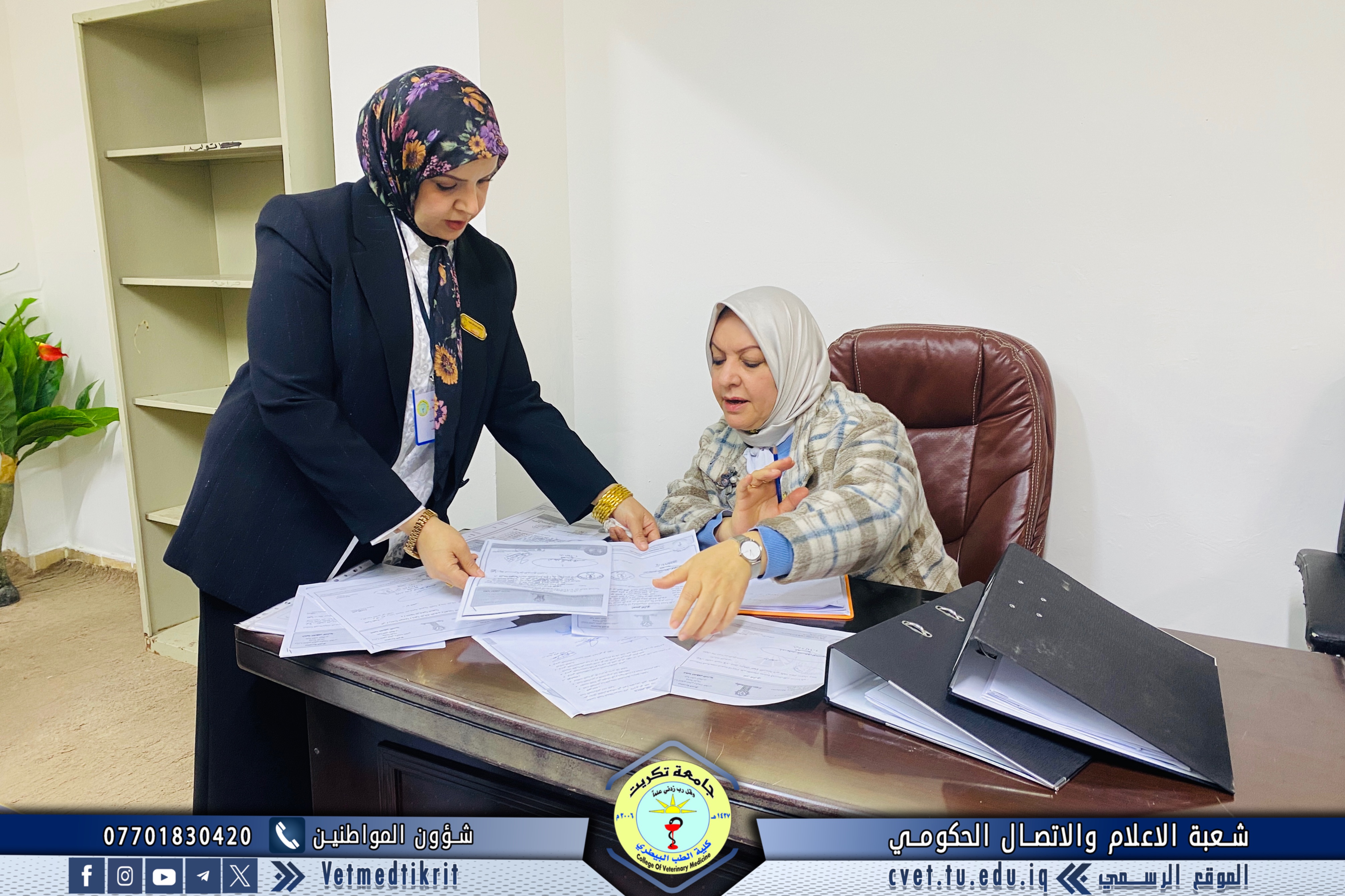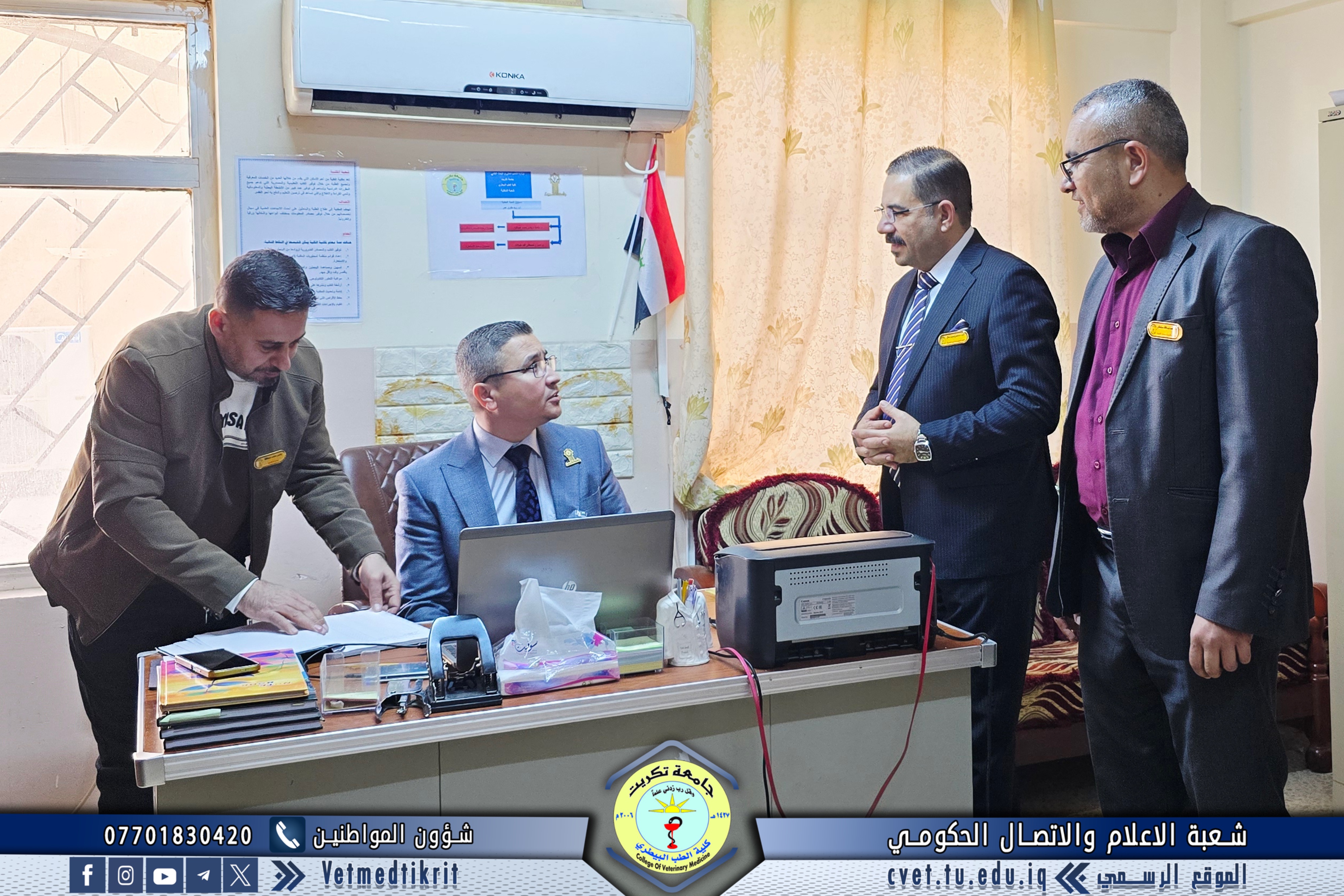 The College of Veterinary Medicine at Tikrit University received the ministerial evaluation team for institutional accreditation as part of the procedures to follow up on the university’s institutional accreditation requirements. The team was welcomed by Prof. Dr. Bashar Sadiq Nomi, Dean of the College, along with the Vice Deans and Heads of the academic departments.
