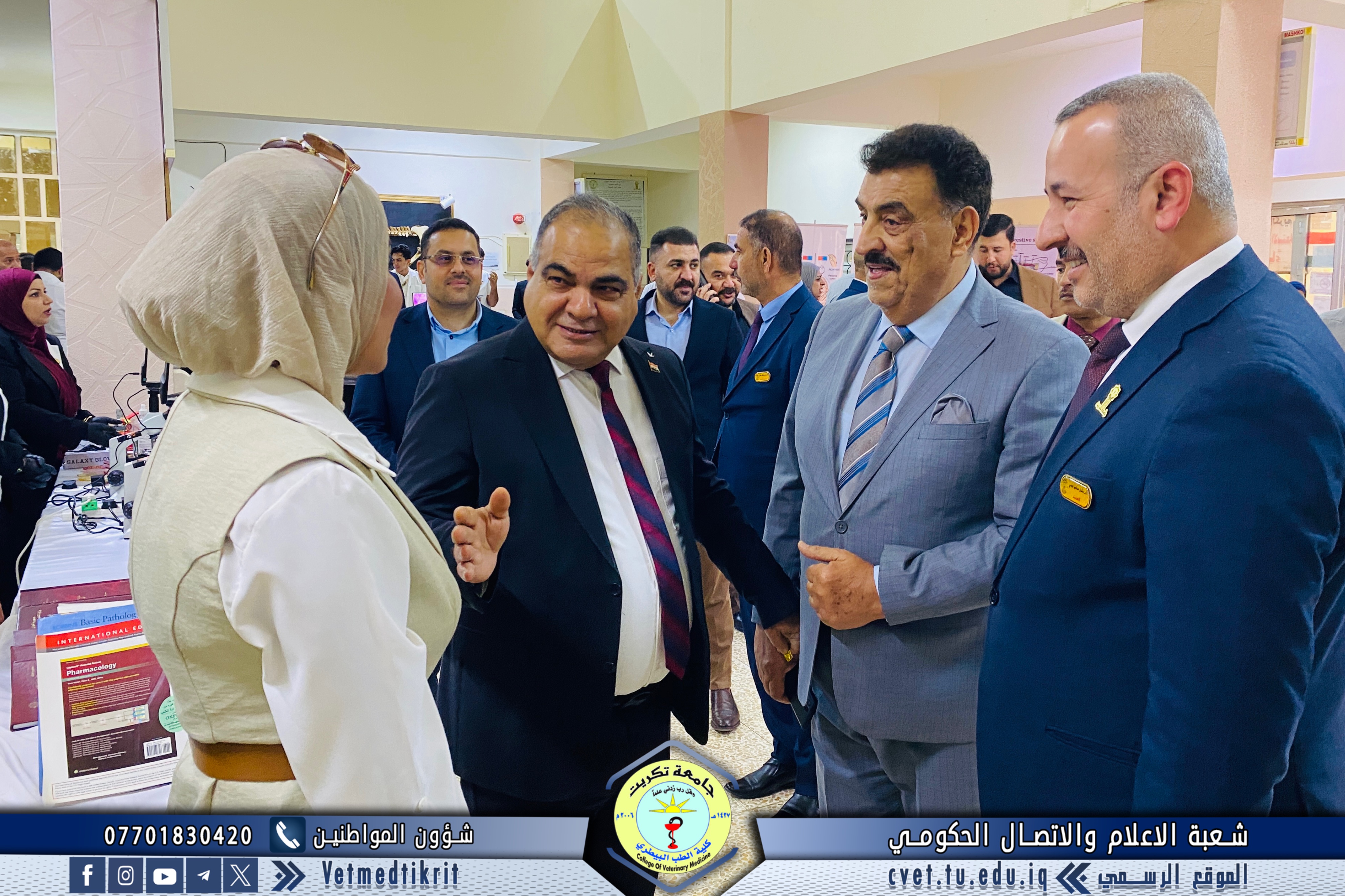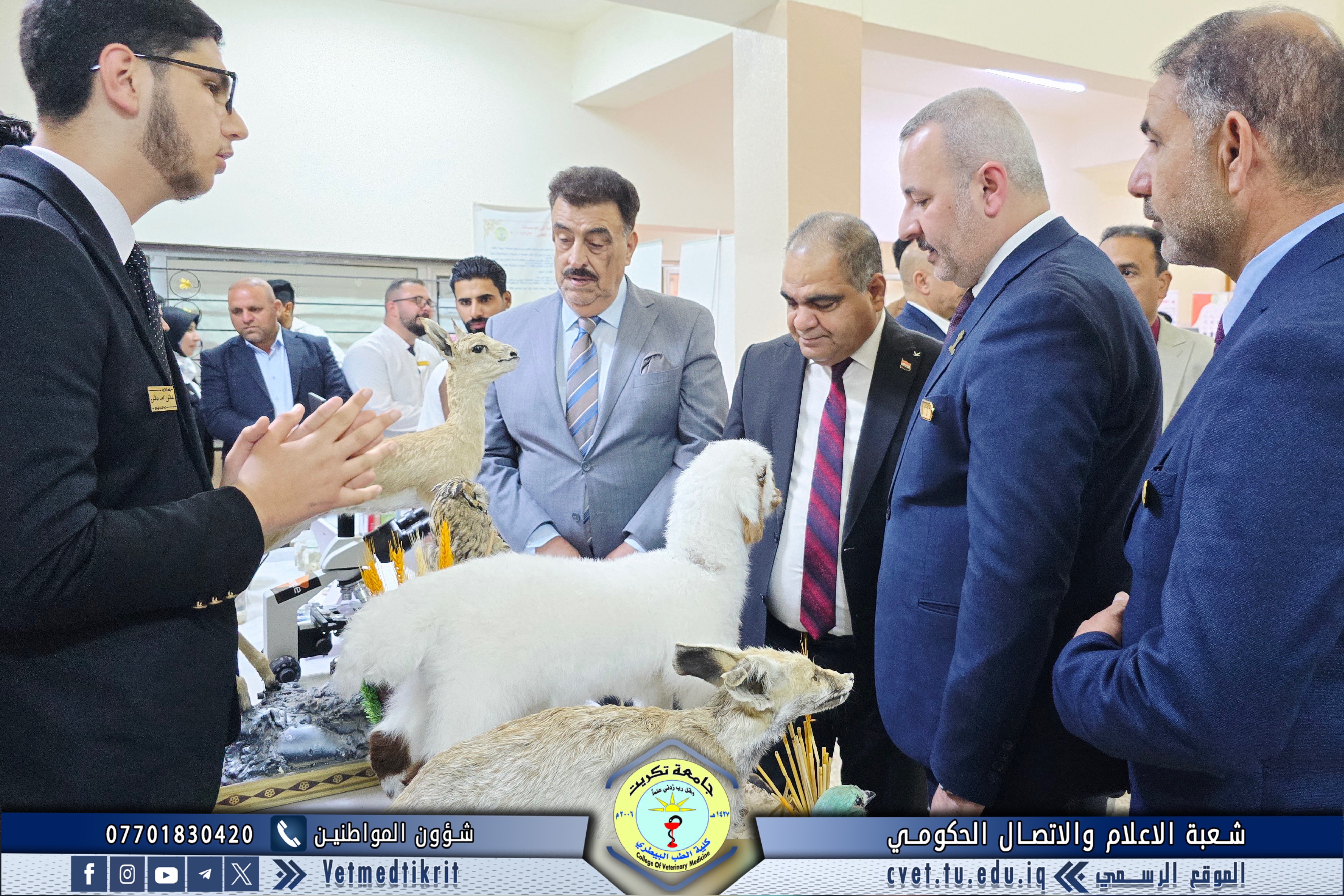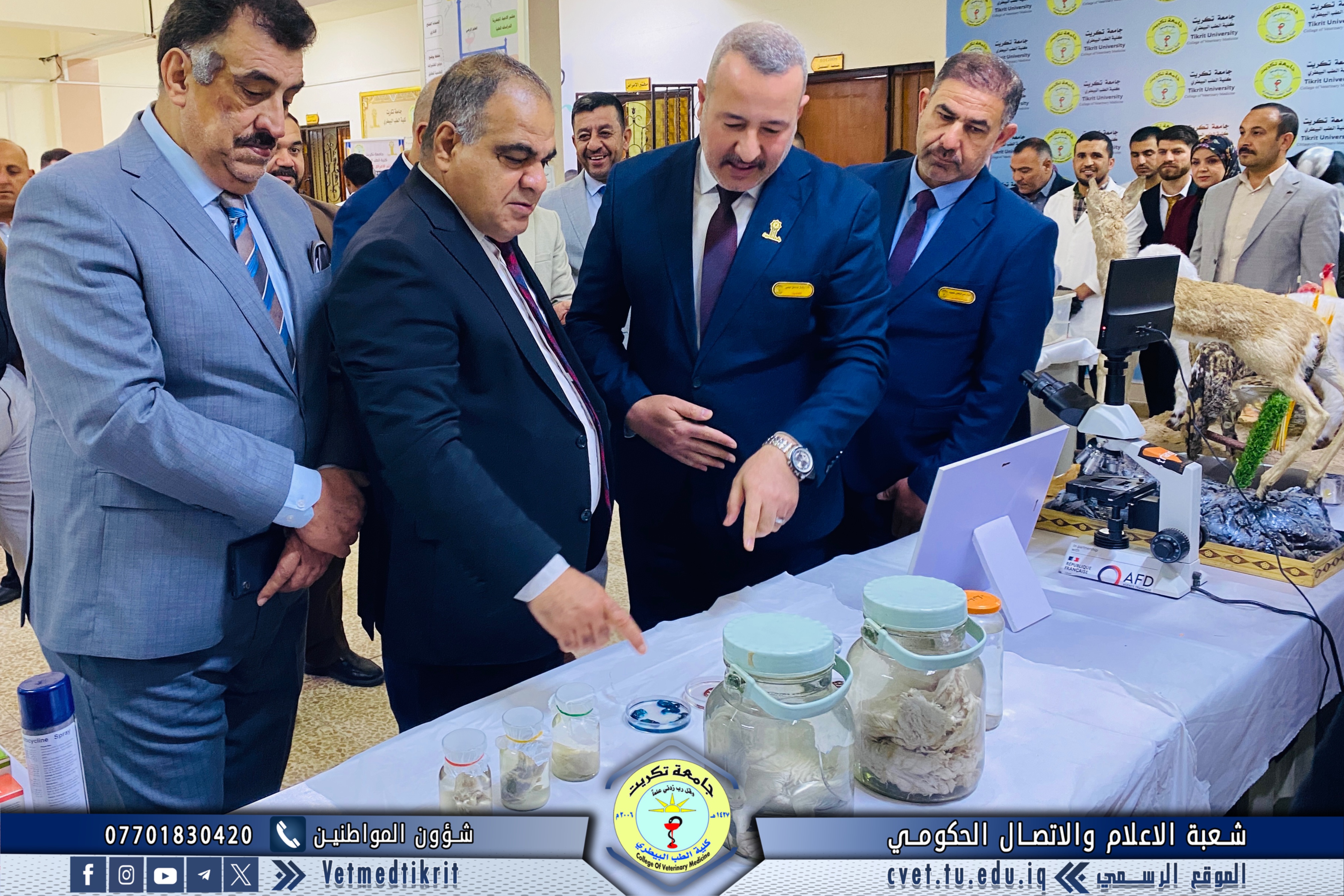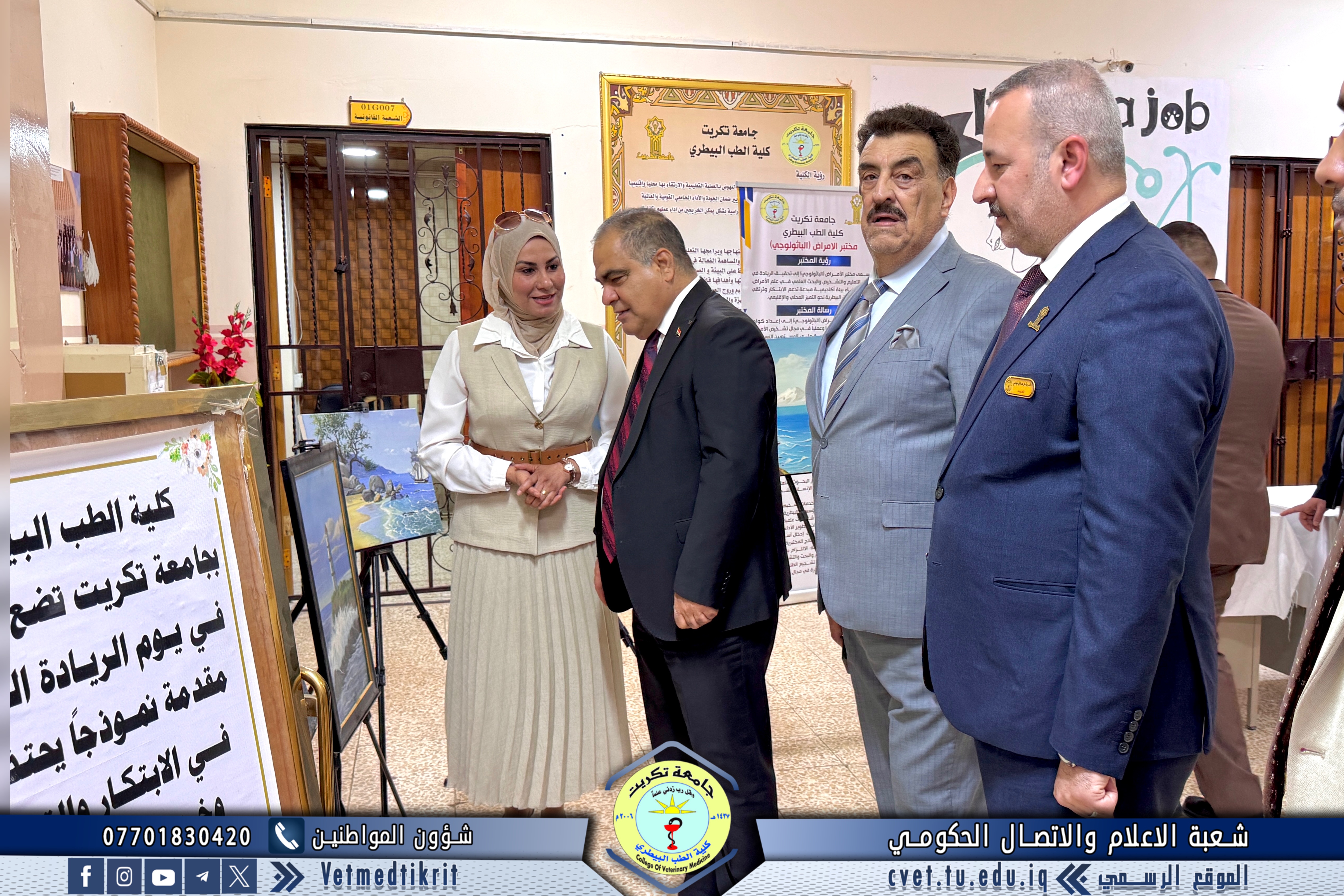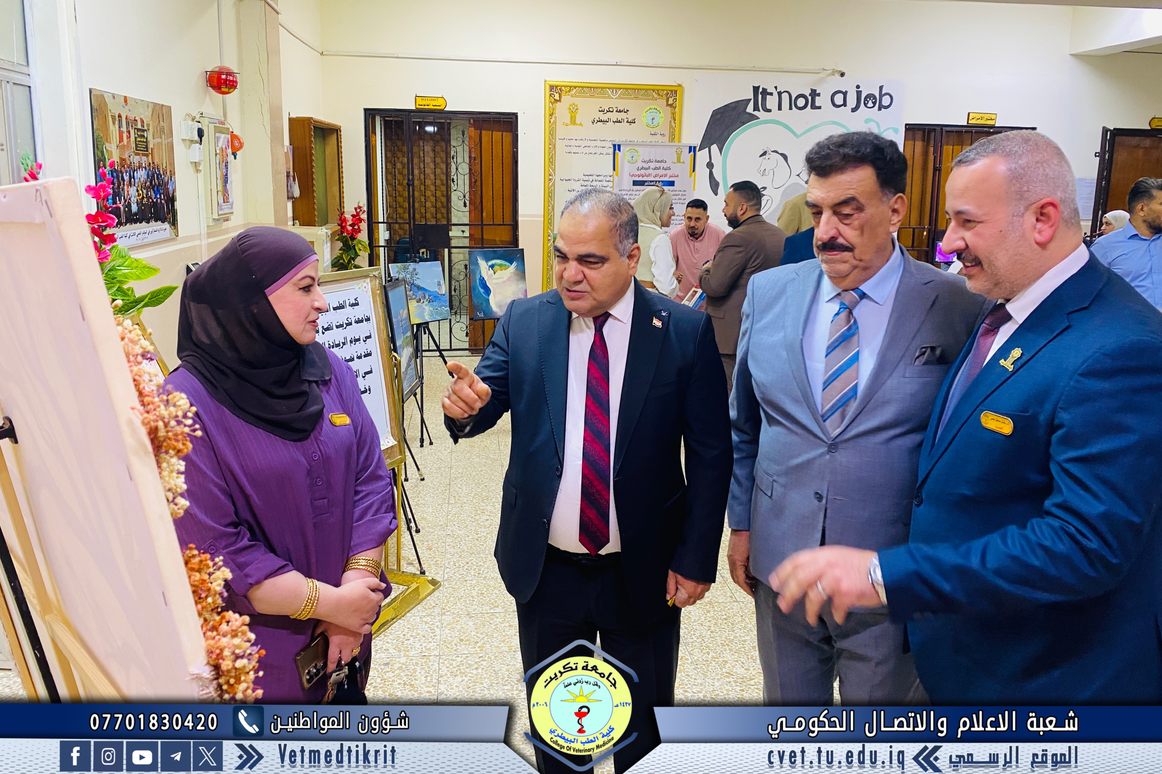 The College of Veterinary Medicine at Tikrit University celebrated the University’s achievements and anniversary by organizing an exhibition of scientific and artistic activities in the College courtyard, in the presence of Professor Dr. Hassan Hussein Ibrahim, Assistant President of the University for Scientific Affairs.