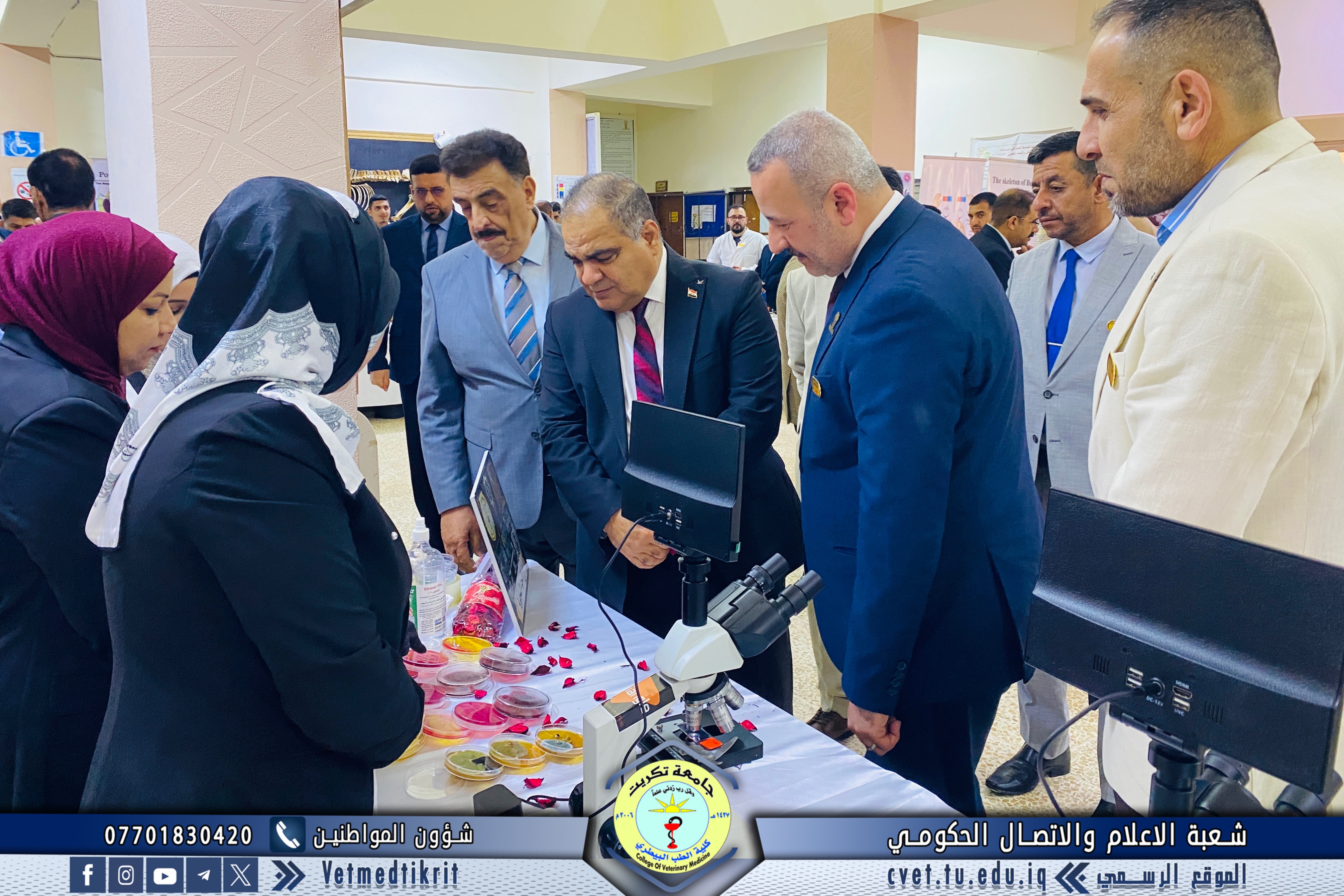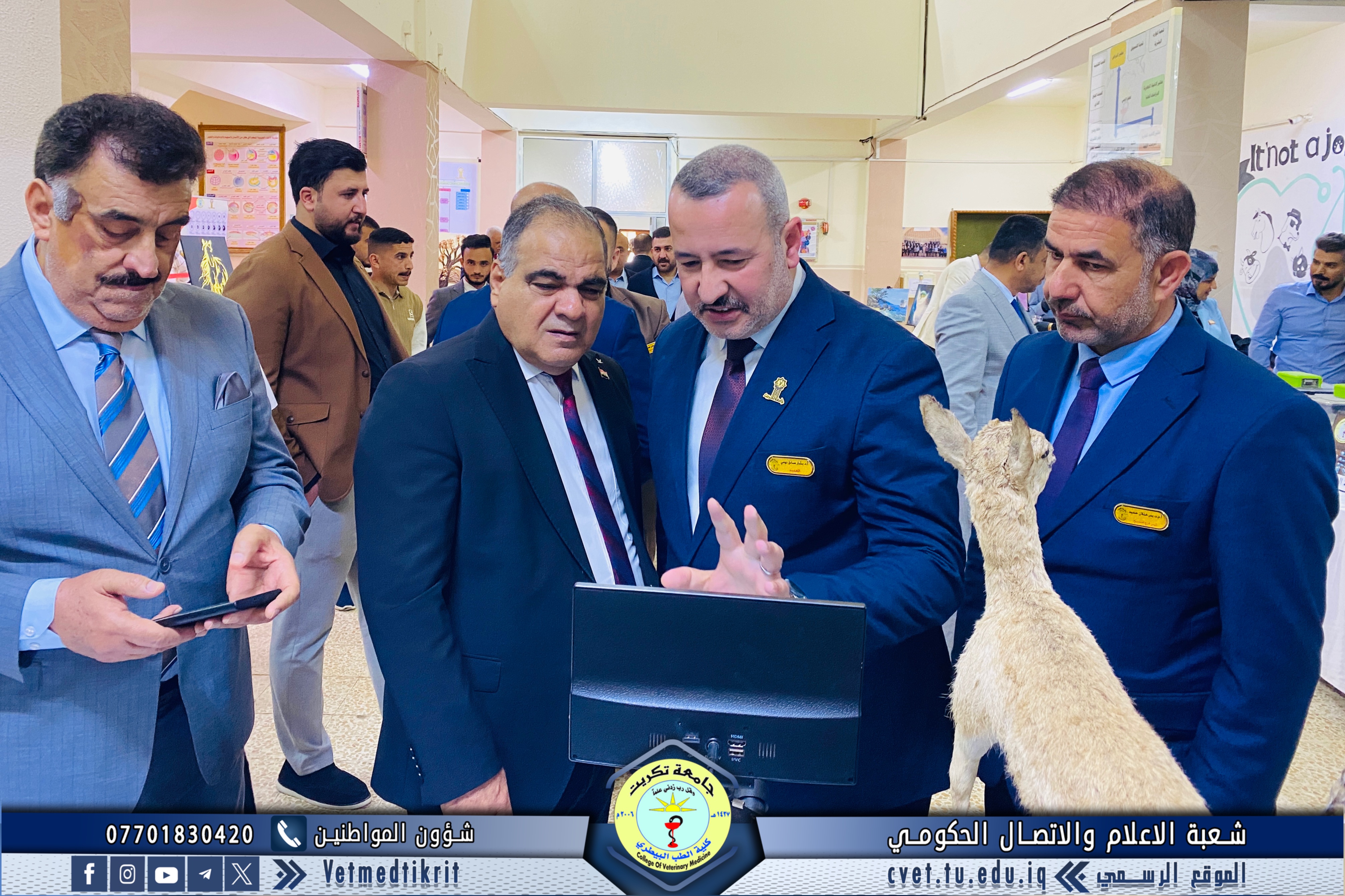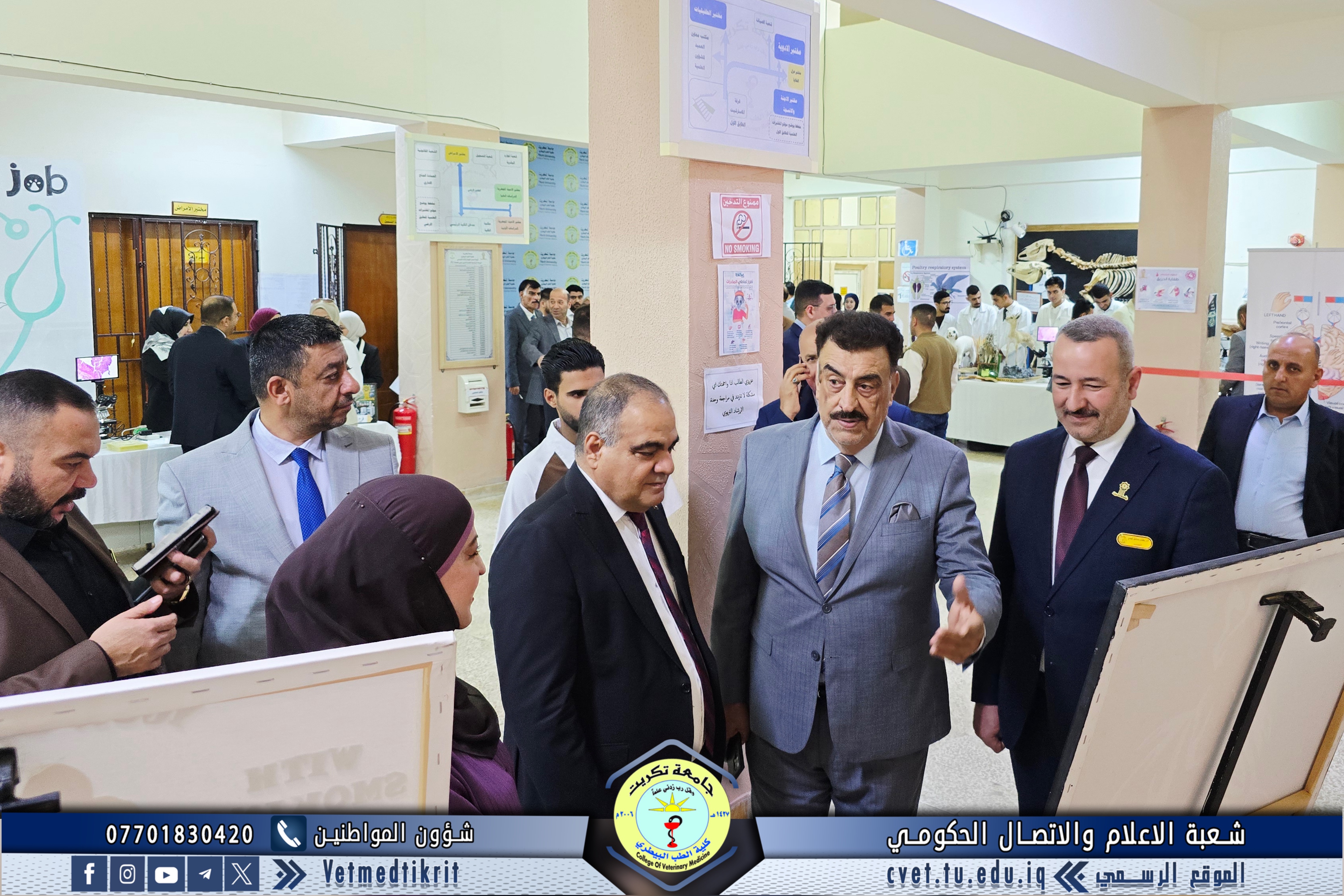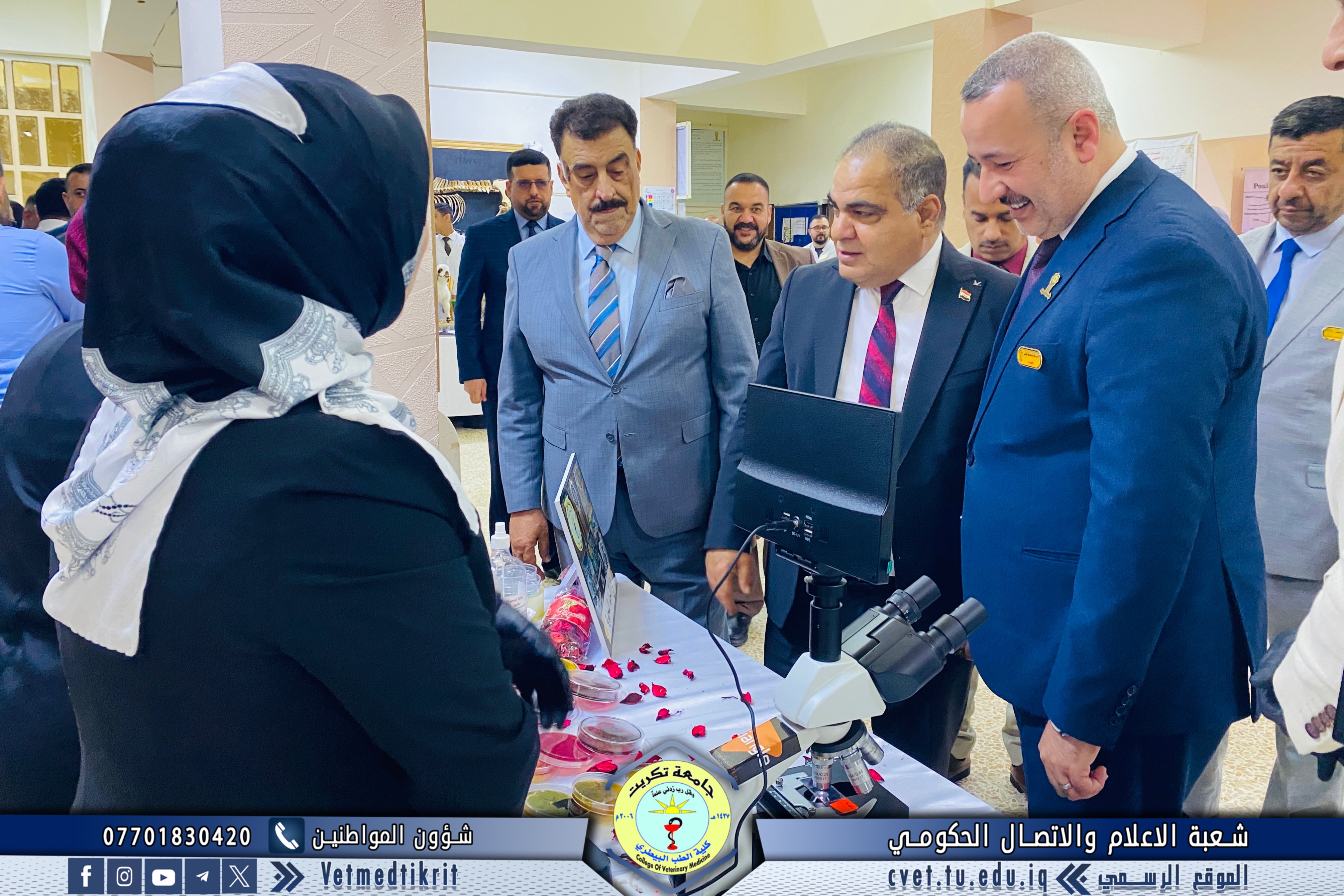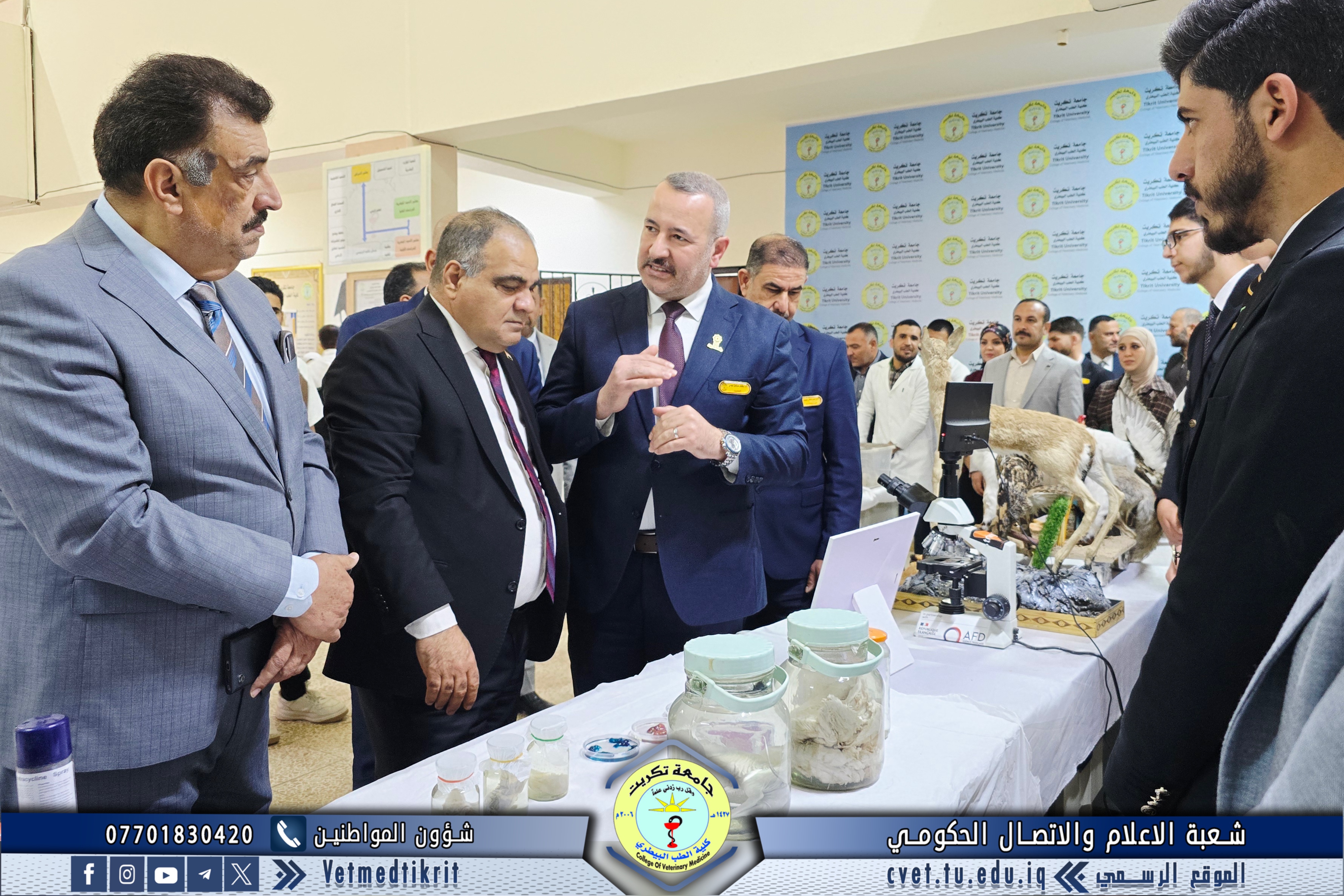 The College of Veterinary Medicine at Tikrit University celebrated the University’s achievements and anniversary by organizing an exhibition of scientific and artistic activities in the College courtyard, in the presence of Professor Dr. Hassan Hussein Ibrahim, Assistant President of the University for Scientific Affairs.