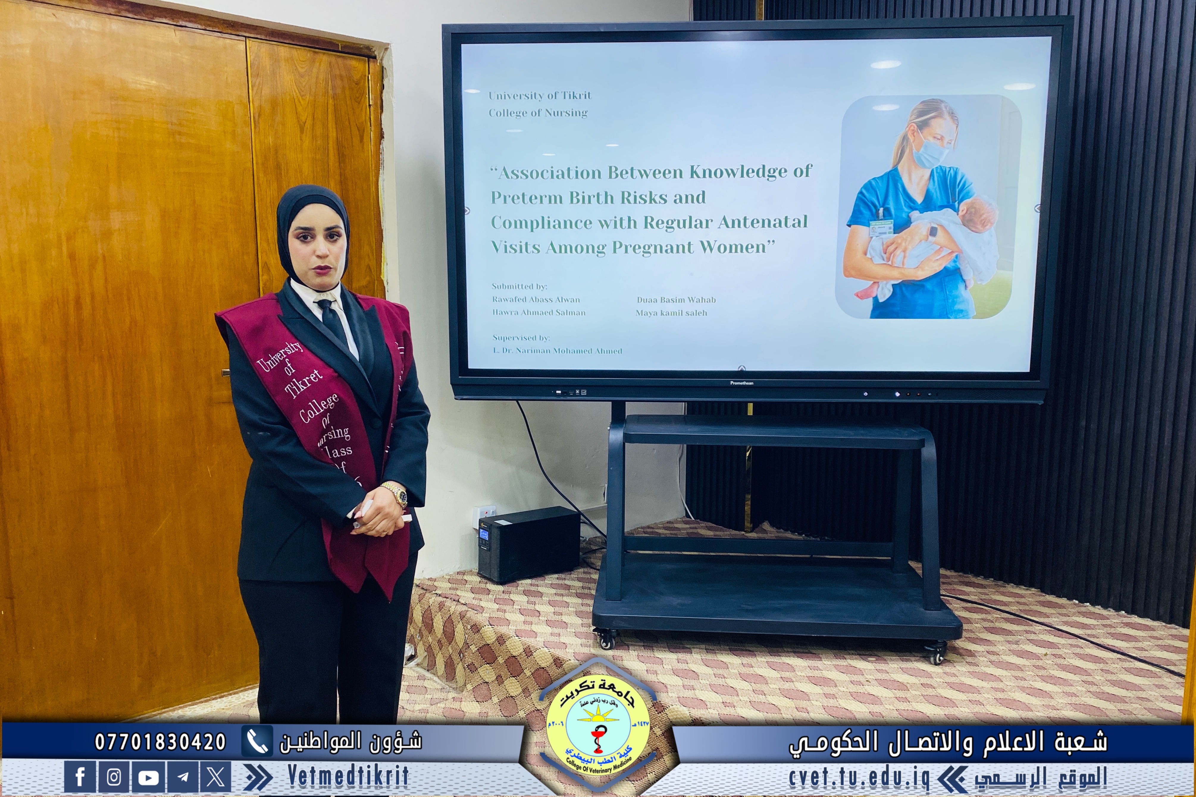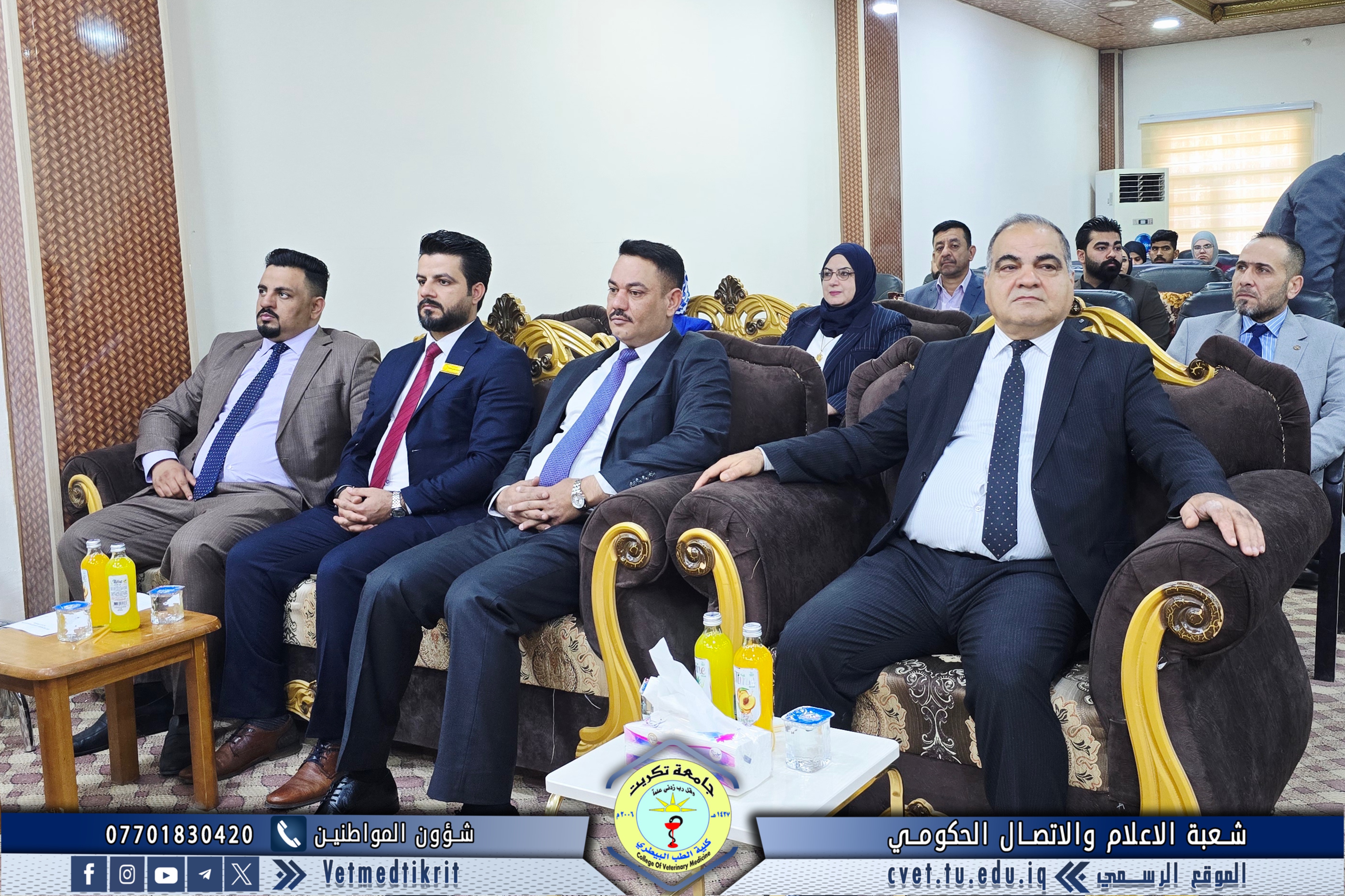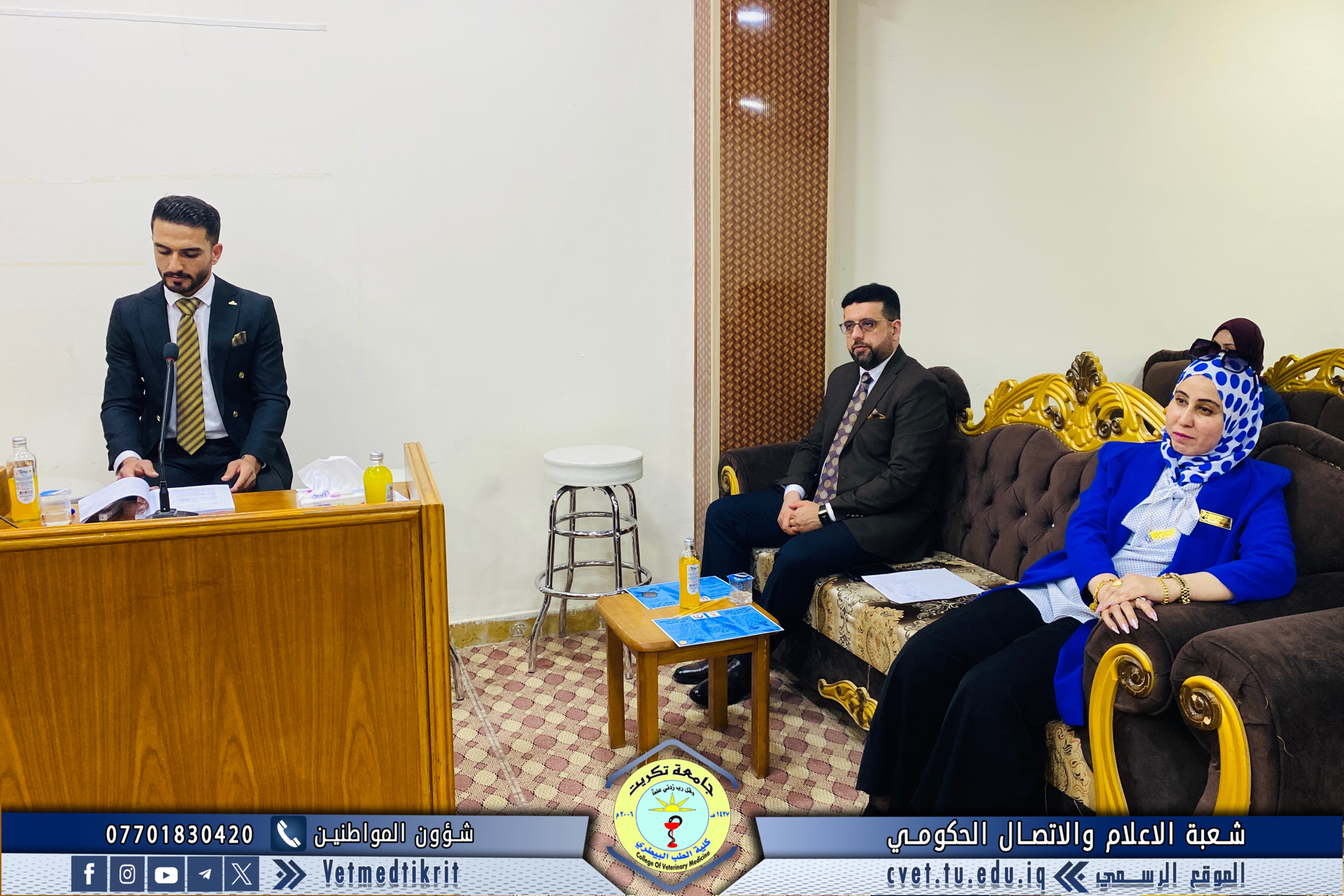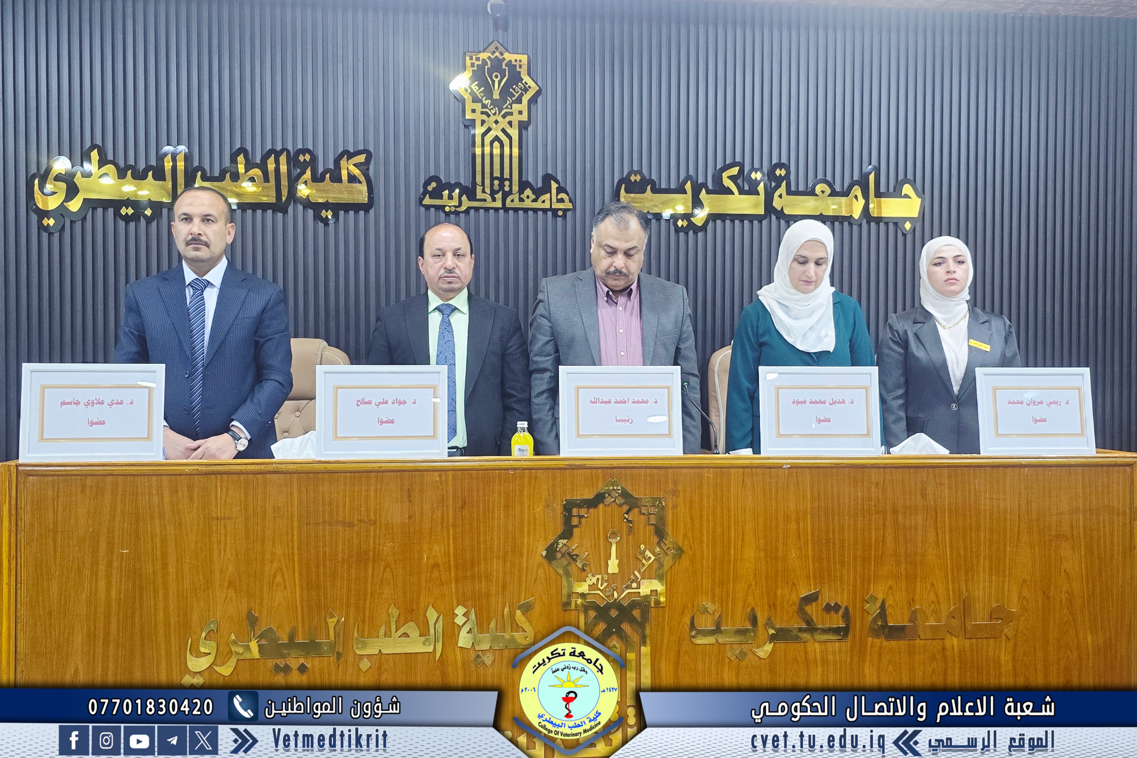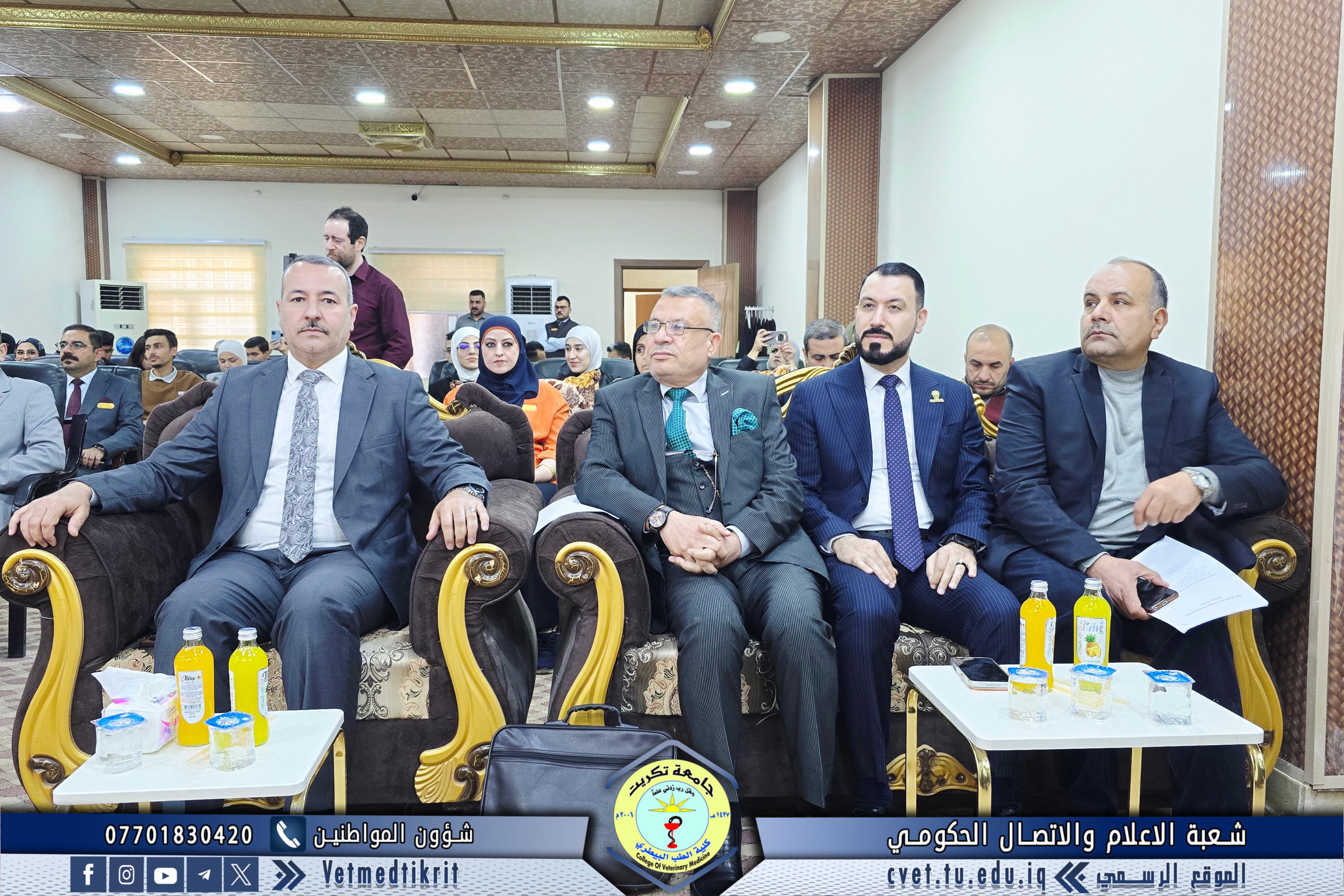 The College of Veterinary Medicine at Tikrit University hosted the activities of the 17th Scientific Conference for discussing graduation research of the medical group, in the presence of Professor Dr. Hassan Hussein Ibrahim, Assistant President of the University for Scientific Affairs, and Professor Dr. Bashar Sadiq Noumi, Dean of the College, under the supervision of Assistant Professor Dr. Montaser Mohammed Hilal, Assistant Dean for Scientific Affairs.