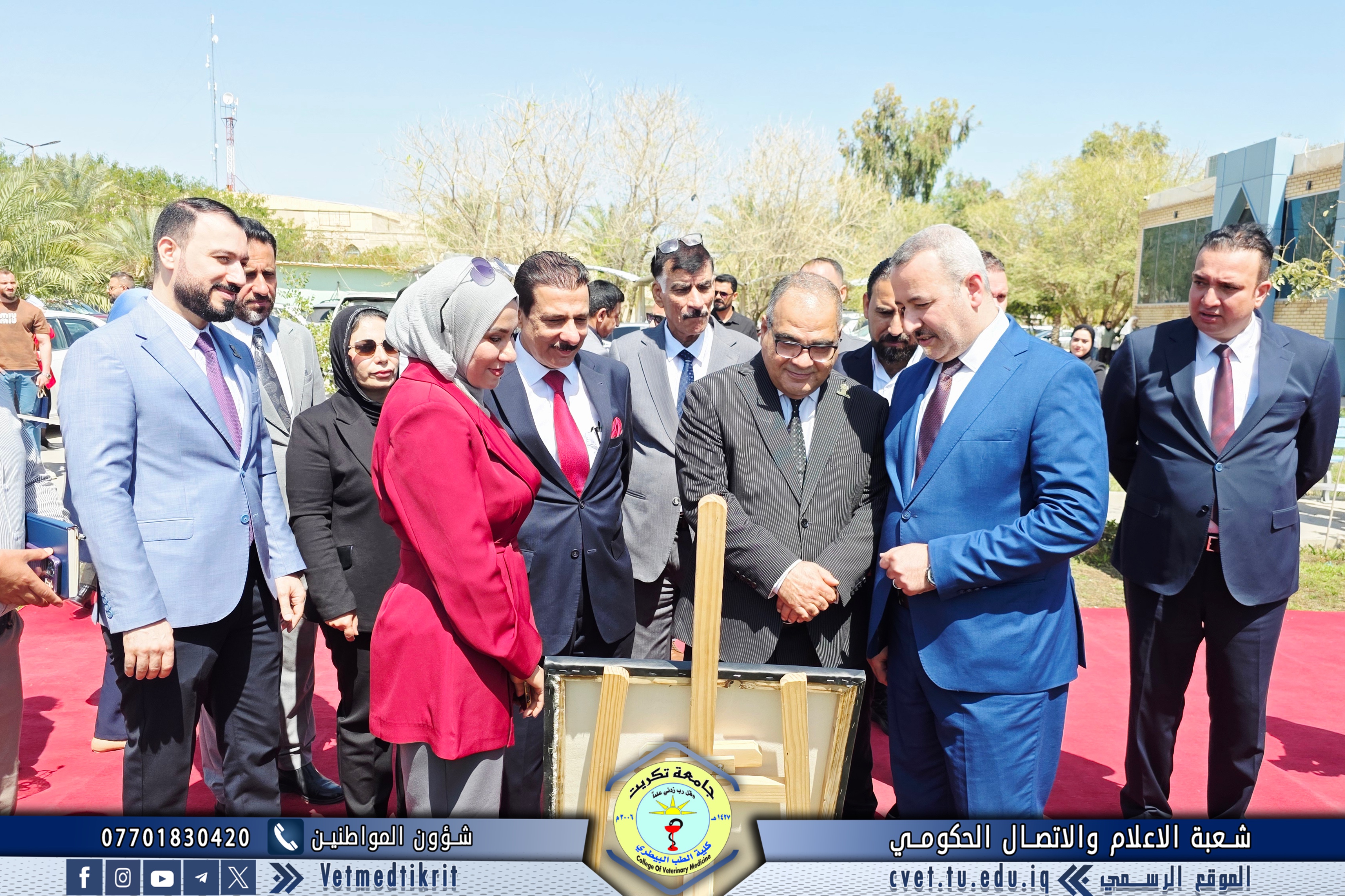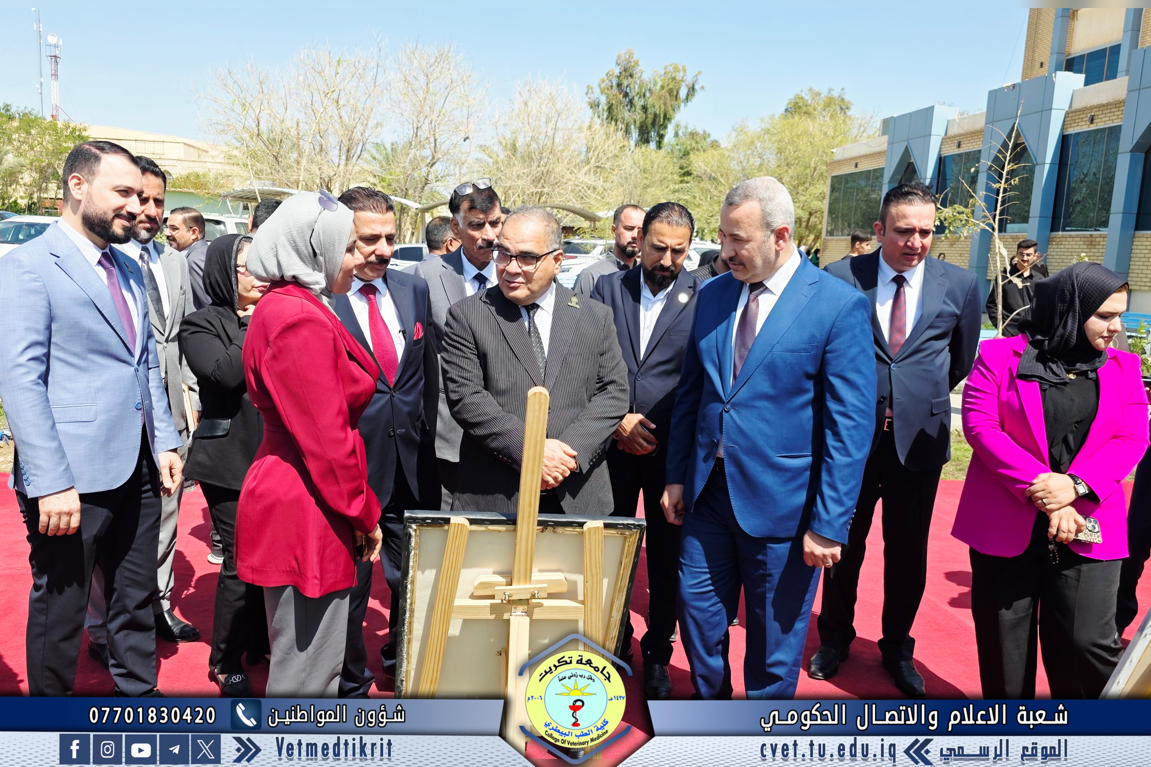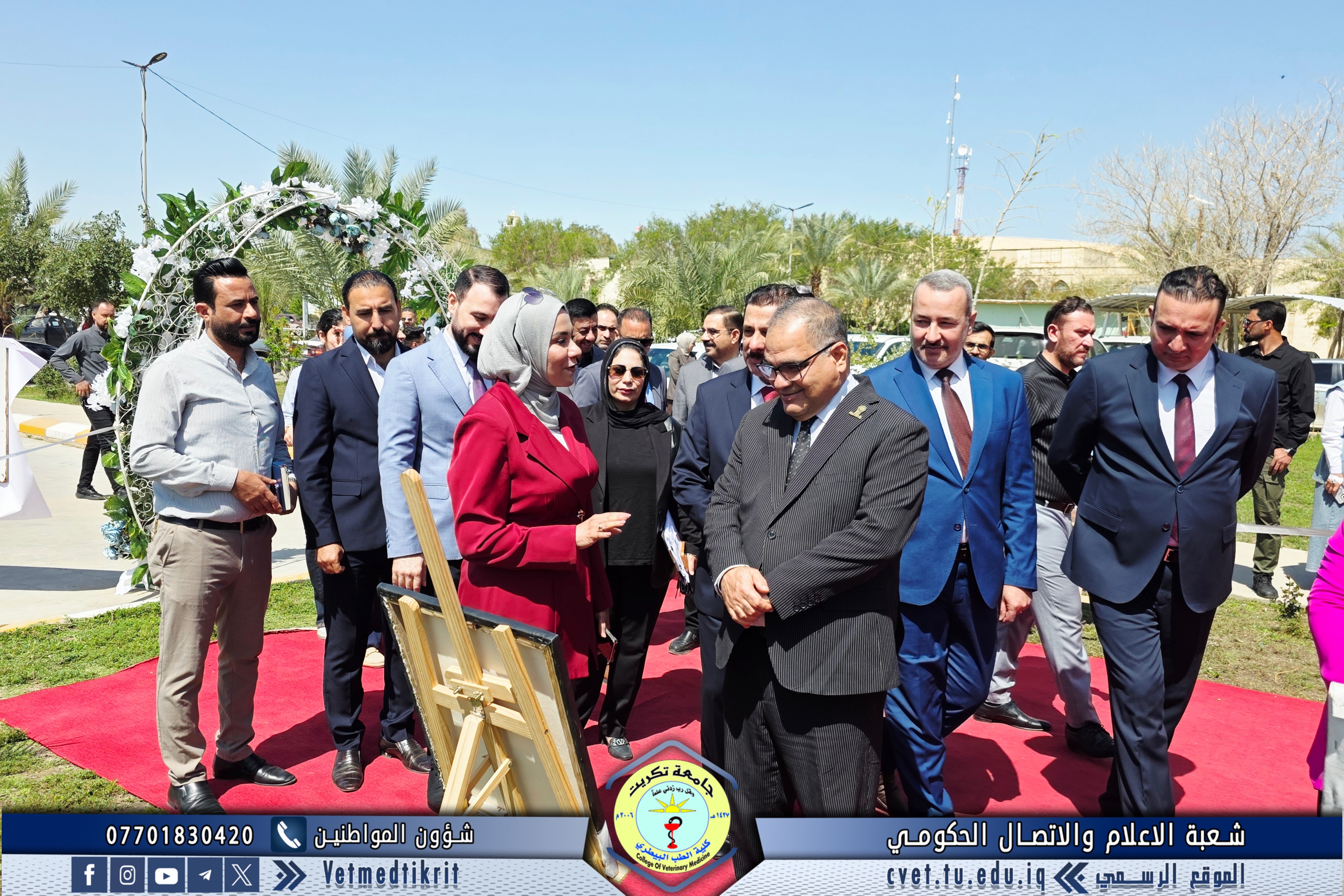 Professor Dr. Omaima Ibrahim Mahmoud, a faculty member at the College of Veterinary Medicine at Tikrit University, participated in an art exhibition organized by the College of Arts. The exhibition was inaugurated by Professor Dr. Hassan Hussein Ibrahim, Assistant President of the University for Scientific Affairs, and attended by Professor Dr. Bashar Sadiq Noumi, Dean of the College of Veterinary Medicine.